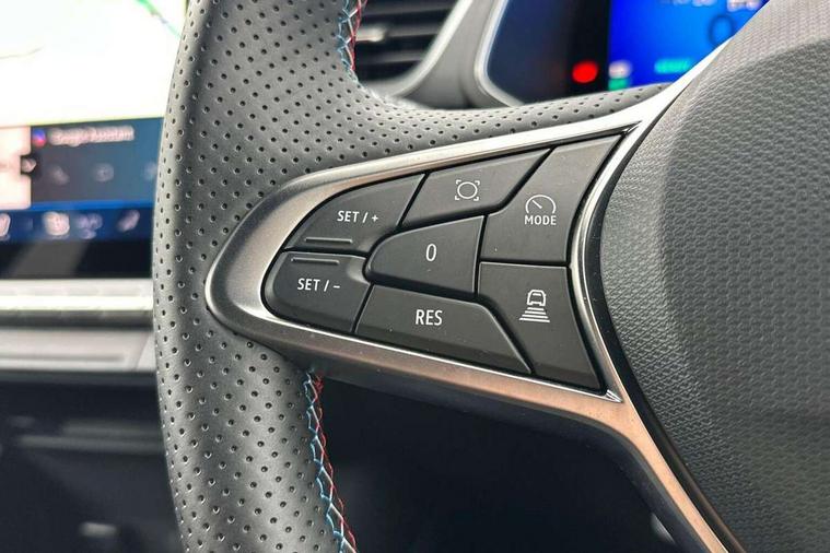 10.25" digital driver display, 10.4" OpenR link touchscreen with with built in Google Automotive Services and navigation, Adaptive cruise control with speed limiter, Blind spot warning and rear detection, Driver attention alert system, Eco mode driving function, Front, rear and side parking sensors, Front/rear detection with emergency lane keep assist incl. solid line, oncoming traffic and road edge detection, Gear change indicator, Lane centering assist, Multi Sense - 3 driving modes and up to 48 ambient lighting colours, My safety switch - ability to personalise ADAS features at press of a button, PAS, Power hands-free tailgate opening, Rear cross traffic/pedestrian alert with rear braking assitance, Rear view camera, Renault automatic emergency assist, Traffic sign recognition with overspeed prevention, Trip computer, Wifi smartphone integration compatible with Apple CarPlay and Android Auto, Wireless phone charger, 2 front and 2 rear USB-C ports, Arkamys speakers - x6 inc. 2 boomer, 2 tweeter and 2 bicone, DAB radio with Bluetooth, Automatic headlights, Automatic high / low beam, Automatic windscreen wipers with rain sensor, Dark tinted rear windows and tailgate, Electric adjustable/heated/auto folding door mirrors, Esprit alpine exterior styling, Frameless auto dimming rear view mirror, Front and rear electric windows with driver window one touch facility and anti pitch function, Front matte grey and rear skid plates, Full LED front and rear lights, Gloss black window surround, Heated rear window, LED daytime running lights, LED rear fog lights, LED third brake light, Radiator grille with 3D graphics in black upper part with grey graphics and body tone lower part, Rear side wing doors, Rear wiper, Shark fin antenna, 2 front roof LED lights and central rear rooflight with 3 reading LED lights, 3 seat bench in 2nd row, Aluminium sports pedals, Automatic air conditioning with one touch quick demist function and air quality regulator, Driver and front passenger seat with electric height adjustment, Esprit alpine interior styling, Flying console with central storage, sliding armrest and 2 rear air vents, Front and rear head restraints, Heated front seats, Heated synthetic leather steering wheel, Height and depth adjustable steering wheel, ISOFIX child seat fixing points on rear outermost seats, Modular boot floor, Rear seats - 1/3:2/3 foldable sliding bench, Recycled fabric upholstery, Single front passenger seat, Sunvisor with mirror and light, 3x3 point rear seatbelts, Abs with emergency brake assist, Active emergency braking system - Urban and pedestrian/cyclist, Distance warning alert, Driver and front passenger and 3 rear passengers seatbelt reminder, Driver and front passenger, side, head and curtain airbags, Driver height adjustable seat belt, Electronic parking brake with auto hold function, Front passenger airbag deactivation, Hill start assist, Occupant safe exit, Rear window and door child locking function, Tyre pressure warning light, Central door locking, Hands free keycard with Keyless access and start, Brushed blue decorative upper strip, Lower textile strip on dashboard with red, white and blue flag, 19" Esprit alpine elixir alloys wheels,