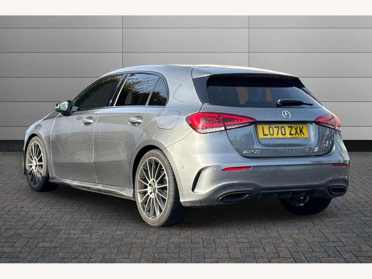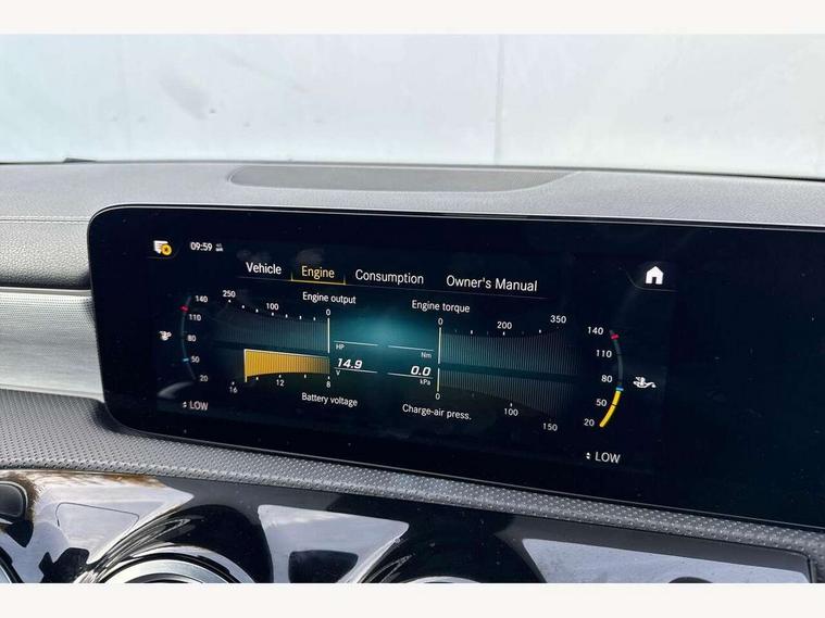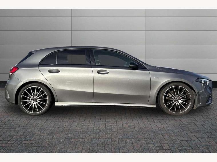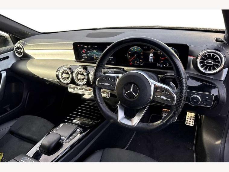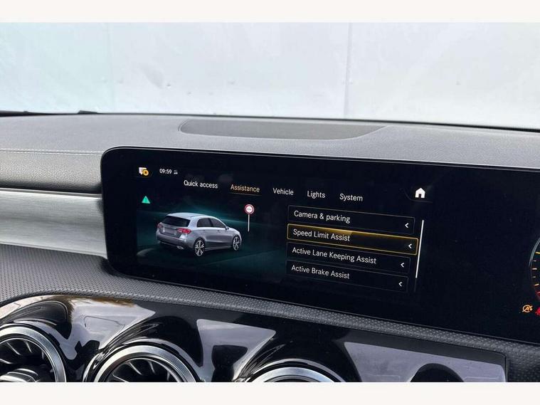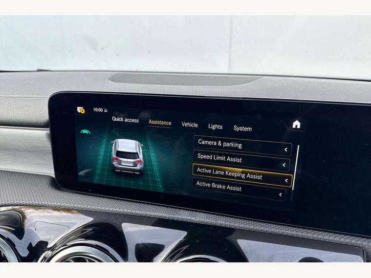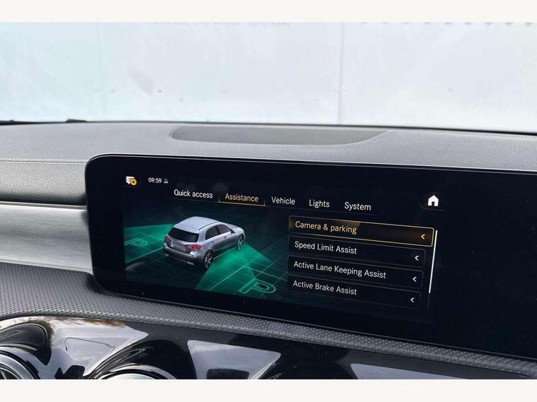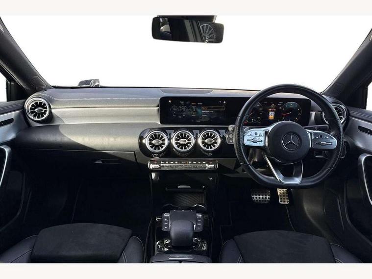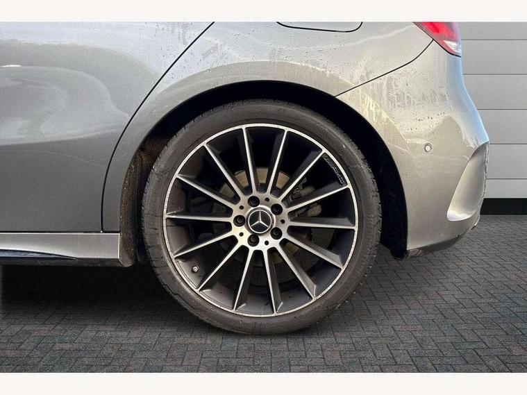 10.25" Digital instrument cluster display screen, 10.25" media display, 180 degree rear view camera with parking guidelines, Active parking assist with visual and audible warning of detected obstacles, Attention assist, Brake pad wear indicator warning light, Car wash mode, Cruise control + speed limiter, Direct steering, Dual bluetooth interfaces, DYNAMIC SELECT with a choice of driving modes (ECO, Comfort, Sport and Individual), ECO start/stop function, Fluid level warning indicator for fuel, oil, coolant and washer fluid, Hard-disk navigation, Hey Mercedes Voice activation, Lamp failure indicator, Mercedes me connect including emergency call system, accident recovery, breakdown and maintenance management, Mercedes me remote services, Outside temperature gauge, Owners manual in English, Pre-installation for private car sharing, Preinstallation for Mercedes Benz link, Service indicator (ASSYST), Smartphone integration with Apple CarPlay and Android auto, Speed limit assist, Speed sensitive power steering, Trip computer, Ultrasonic sensors positioned in the front and rear bumpers, Wireless charging, Lowered comfort suspension, Rear axle torsion beam, 2 USB ports (type C) in rear stowage compartment and one in front of center console, 6 speakers, MBUX multimedia system with DAB digital radio and touchpad including satellite navigation, Mercedes-Benz sound system - 100W, 4 Electric Front and Rear windows, Adaptive brake lights, Black chrome plated tailpipe trim, Body colour bumpers, Body colour door handles, Body colour side skirt, Diamond radiator grille with pins in black and black louvre, Edition badging on the front wings, Electric adjustable and heated door mirrors with integrated LED side indicators, Headlamp assist automatic headlamp activation, Heated glass rear windscreen + timer control, LED high performance headlamps with integrated LED daytime running lights, LED tail lamp, LED third brake light, Panoramic sliding sunroof, Privacy glass, Radio aerial, Rain sensing windscreen wipers with two sensitivity settings, Rear fog lights, Rear wiper, 3 Spoke flat bottom leather multi function steering wheel with perforated leather in grip area, 40:20:40 split folding rear seats, Artico man-made leather/ Dinamica microfiber upholstery, Auto Mercedes-Benz child seat recognition sensor, Black air vents with surround in silver chrome, Black roof lining, Brushed stainless steel sports pedals with rubber studs, Floor mats with black top stitching and embroidered edition logo and piping in light grey, Floor mats with stitched edging and AMG lettering, Front centre armrest with storage compartment, Front door sills with Mercedes Benz lettering, Front seat backs luggage nets, Front seat cushion length adjustment, Galvanished gear shift paddles on steering wheel, Heated front seats, Height/reach adjustable steering column, Interior lighting - 64 colour Ambient lighting, Interior mirror with reading lamps in black and frameless, Rear head restraints, Seat occupancy sensor for front passenger seat, Sports seats with integrated headrests, Stowage compartment in centre console with retractable cover, Sunvisors with illuminated vanity mirrors, Touchpad on center console, Twin front cupholders, Two zone thermotronic luxury automatic climate control, Light and sight pack - A Class, Mirror package - A Class, Night pack - A Class Exclusive Edition, Seat comfort pack - A Class, 3 rear 3 point seatbelts, ABS with Brake Assist, Active bonnet, Active brake assist includes forward collision warning system with autonomous braking, Adaptive brake assist with hold function and hill start assist, Black seatbelts, Bonnet with power domes, Childproof locks manually operated for rear doors and electrically operated for rear power windows, Crash responsive emergency lighting, Driver and passenger head and side airbags, Drivers knee airbag, Dual stage driver/passenger airbags, Electronic parking brake, ESP curve dynamic assist, ESP with ASR, Front and rear seatbelt reminder, ISOFIX and top tether child seat fixing points in two outer rear seats, Tyre pressure monitoring system, Warning triangle and first aid kit, Window airbags, Alarm system/interior protection/immobiliser, Keyless Go, Remote central locking and crash sensor with emergency opening function, Urban guard vehicle protection system with immobiliser and interior protection, Light longitudinal grain aluminium trim painted, 19" AMG multi spoke light alloy wheels painted in titanium grey with high sheen finish, Summer tyres, Tirefit sealant kit,