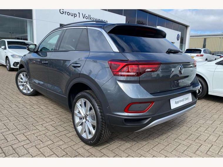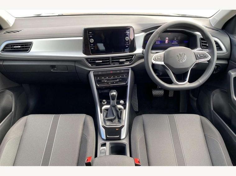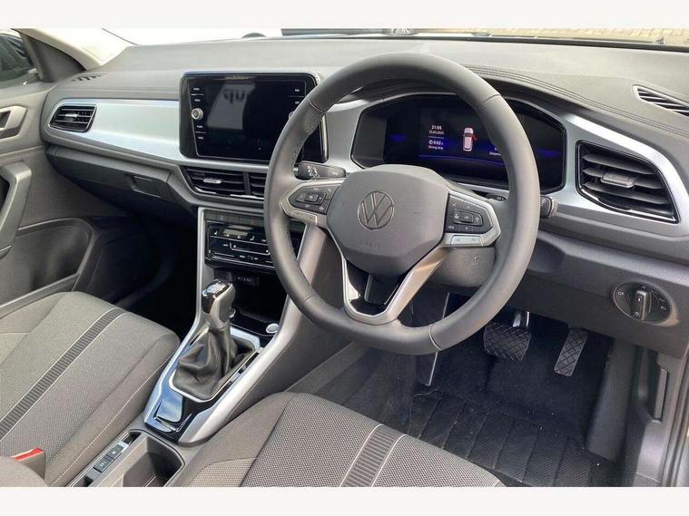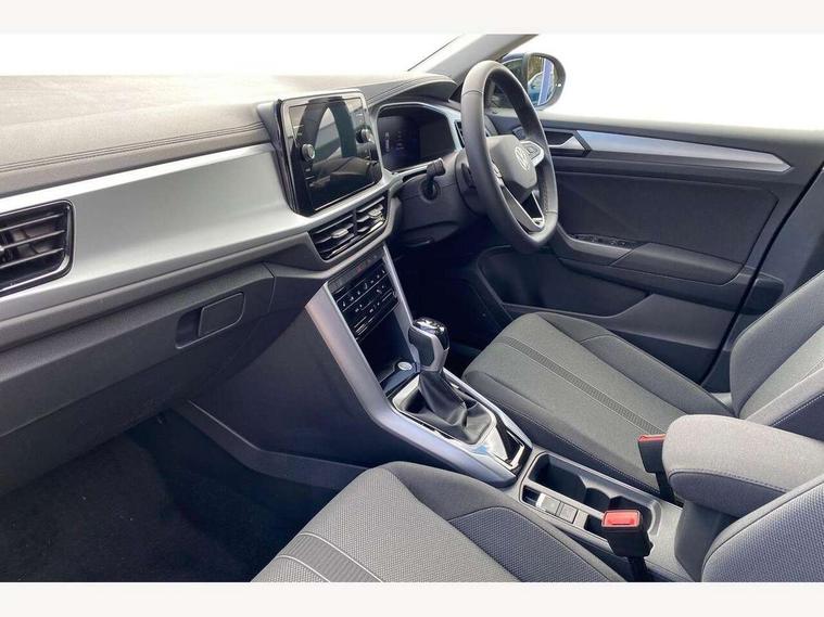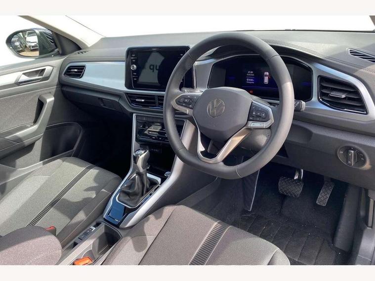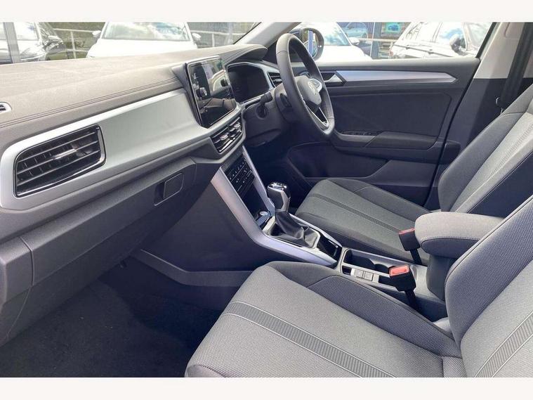 Advanced driver attention and drowsiness monitor, Dynamic road sign display, Emergency call service, Lane keeping system Lane Assist, Mobile phone interface, Modified key software - reduce switch off time for key status change to Long no motion, Online services, Park assist including front and rear parking sensors, Power assisted speed sensitive steering, Rear view camera, Service interval indicator, Tailgate/trunk lid release from outside, Think blue trainer driver tips and journey analysis, Warning sound and light for front seatbelts unfastened, Wireless app connect, Battery regeneration during braking, Front shock absorption, Rear shock absorption chassis with increased ride height, Start/stop function with battery regeneration, DAB Digital radio, Diversity antenna for FM reception, Front and rear 6 speakers, Music playback - MP3, WMA and AAC files, Premium USB cable in choice of either Apple or Android smartphone compatibility, SD card slot, Simultaneous pairing of 2 compatible mobile devices, Title and cover art display, We Connect and We Connect Plus functionality, Auto dimming interior rear view mirror, Automatic hazard lights activation under emergency braking, Automatic headlight control with LED separate daytime running lights with coming/leaving home function, Black roof rails, Body coloured bumpers and radiator grille with chrome trim and front fog lamps with chrome bezel, Body coloured exterior mirror housings and door handles, Electrically adjustable and heated door mirrors, Extended roof spoiler, Exterior mirrors aspherical on driver side, convex on front passenger side, External USB type C socket and charging sockets, Front windscreen wiper with intermittent wipe and 4 position delay, Heated rear window, LED 3rd brake light, LED rear combination lamps, LED rear number plate lights, Power windows with comfort operation and circuit breaker, Privacy glass for rear side windows and rear window, Rain sensor, Rear exhaust tailpipe, Rear fog light on one side and reversing lights on both sides, Rear side wing doors, Rear wash/wipe with intermittent wipe setting, Remote electrically foldable door mirrors, puddle lights and reverse activated passenger's door mirror, 12V power socket in centre console, 3 rear head restraints, 3 seat bench in 2nd row, 4 load lashing points in luggage compartment, Air care climatronic air conditoning system with active combination filter and 2-zone temperature control, Black stitching for floor mats, Ceramique roof liner, Cloth upholstery, Door and side trim panel in cloth, Drawer under drivers seat, Driver/front passenger seat height adjustment, Front centre armrest, Front comfort sports seats, Front cupholders x 2, Front reading light, Front seat back storage pockets, Glove compartment door with light, Instrument lighting, white adjustable panel illumination, Interior ambient lighting and surround lighting, Interior light delay, Isofix child seat preparation, Leather gearshift handle, Load-through provision with cup holder when folded down ('Unsplit rear seat bench, split folding backrest, with centre armrest), Luggage compartment lighting, Lumbar support for driver's and front passengers seat, Non-folding front passenger seat backrest, Single front passenger seat, Storage compartment in left and right luggage area, Storage compartment in rear doors, Storage compartments in driver and front passenger doors, Sunvisors with illuminated vanity mirrors, Variable boot floor, height adjustable and removable, Driver assistance pack without proactive passenger protection - T-Roc Life/Match, 3 point height adj front seatbelts + pretensioners, 3 point seatbelts in outer rear with ECE label, ABS, Child locks on rear doors, City emergency braking and pedestrian monitoring, Driver and front passenger airbag with front passenger airbag deactivation, Driver and front passenger safety-optimised head restraints, Drivers seatbelt reminder, Electronic parking brake, Electronic Stability Control (ESC) inc EDL (Electronic Differential Lock) and ASR (Traction Control), Front and rear passengers curtain airbag system including front side airbags, Front disc brakes, Hill start assist, Predictive pedestrian protection, Rear disc brakes, Two tone horn, Tyre pressure loss indicator, Volkswagen roadside assistance, Alarm with interior protection, Keyless locking and starting system keyless access with safelock, Pewter matt decorative inserts for intrument panel, centre console and door panels at the front, Trims for alloy wheels,