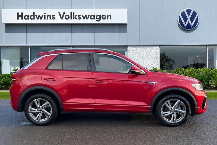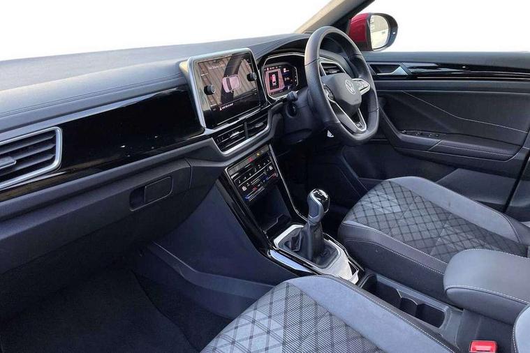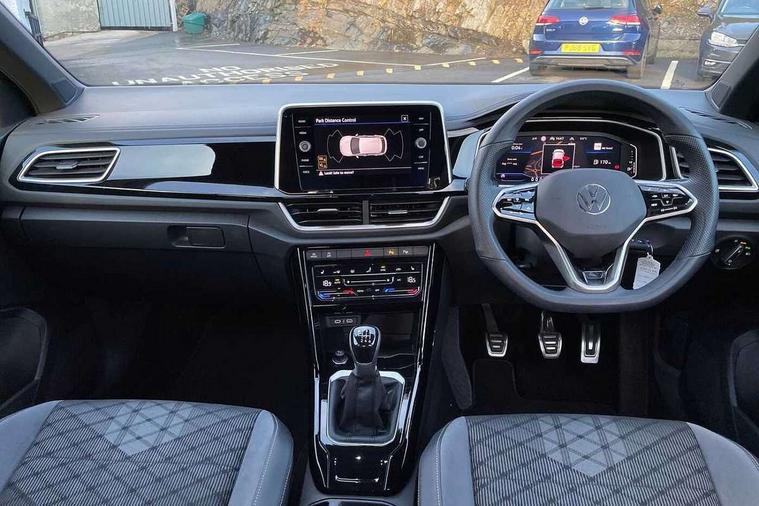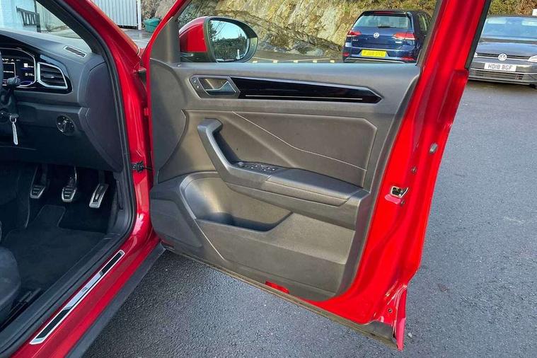 10.25" Digital cockpit pro, Bluetooth mobile phone interface, Driver alert system with fatigue detection, Driver tips and journey analysis, Emergency call service, Lane keeping system Lane Assist, Modified key software - reduce switch off time for key status change to Long no motion, Online services, Park assist including front and rear parking sensors, Service interval indicator, Tailgate/trunk lid release from outside, Think blue trainer driver tips and journey analysis, Warning sound and light for front seatbelts unfastened, Wireless app connect, Battery regeneration during braking, Start/stop function with battery regeneration, Diversity antenna for FM reception, Front and rear 6 speakers, Music playback - MP3, WMA and AAC files, Premium USB cable in choice of either Apple or Android smartphone compatibility, SD card slot, Simultaneous pairing of 2 compatible mobile devices, Title and cover art display, We Connect and We Connect Plus functionality, 3rd brake light, Auto dimming interior rear view mirror, Automatic hazard lights activation under emergency braking, Automatic headlight control with LED separate daytime running lights with coming/leaving home function, Extended roof spoiler, Exterior mirrors aspherical on driver side, convex on front passenger side, External USB type C socket and charging sockets, Front windscreen wiper with intermittent wipe and 4 position delay, Heated rear window, LED Plus headlamps, LED rear combination lamps, LED rear number plate lights, LED tail lamp rear comination lamps, Power windows with comfort operation and circuit breaker, R-Line design body coloured bumpers, Rain sensor, Rear exhaust tailpipe, Rear fog light on one side and reversing lights on both sides, Rear side wing doors, Rear wash/wipe with intermittent wipe setting, Remote electrically foldable door mirrors, puddle lights and reverse activated passenger's door mirror, 12V power socket in centre console, 3 rear head restraints, 3 seat bench in 2nd row, 4 load lashing points in luggage compartment, Air care climatronic air conditoning system with active combination filter and 2-zone temperature control, Black roof lining, Chrome plated radiator grille inserts, air vent surrounds and light switch surrounds, Door and side trim panel with leatherette insert, Drawer under drivers seat, Front + rear carpet mats, Front centre armrest, Front cupholders x 2, Front footwell illumination, Front reading light, Front scuff plates with R logo, Instrument lighting, white adjustable panel illumination, Interior ambient lighting and surround lighting, Interior light delay, Isofix child seat preparation, Leather gearshift handle, Load-through provision with cup holder when folded down ('Unsplit rear seat bench, split folding backrest, with centre armrest), Luggage compartment lighting, Single front passenger seat, Stainless steel pedals, Storage compartment in left and right luggage area, Storage compartment in rear doors, Storage compartments in driver and front passenger doors, Sunvisors with illuminated vanity mirrors, Variable boot floor, height adjustable and removable, Driver assistance pack without proactive passenger protection - T-Roc, 3 point height adj front seatbelts + pretensioners, 3 point seatbelts in outer rear with ECE label, ABS, Child locks on rear doors, Driver and front passenger airbag with front passenger airbag deactivation, Driver and front passenger safety-optimised head restraints, Drivers seatbelt reminder, Electronic parking brake, Electronic Stability Control (ESC) inc EDL (Electronic Differential Lock) and ASR (Traction Control), Front and rear passengers curtain airbag system including front side airbags, Front assist with city emergency braking and pedestrian monitoring, Front seat side impact airbags, Hill start assist, Predictive pedestrian protection, Rear disc brakes, Single tone horn, Tyre pressure loss indicator, Volkswagen roadside assistance, Alarm with interior protection, Anti-theft alarm system with interior monitoring, backup horn, and towing protection, Remote central locking with SAFELOCK, radio remote control with 2 remote control folding keys, Trims for alloy wheels,