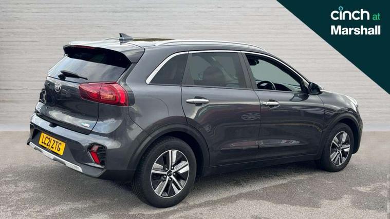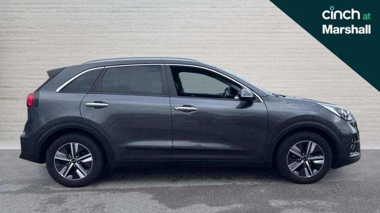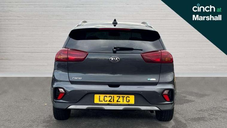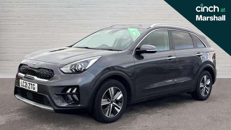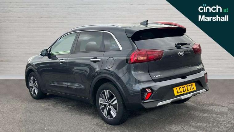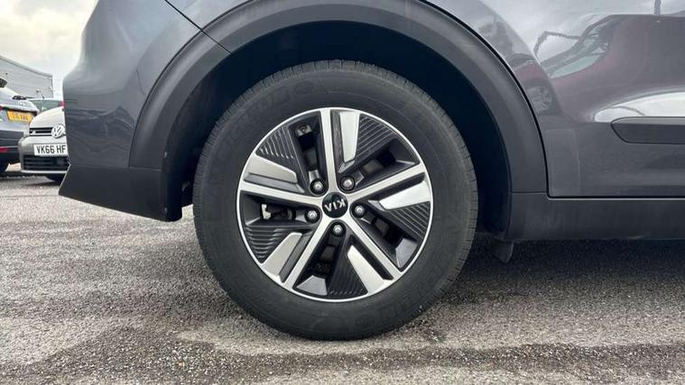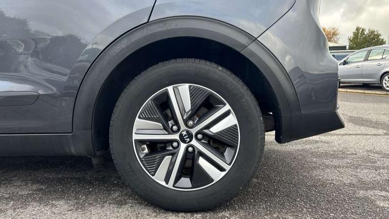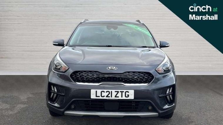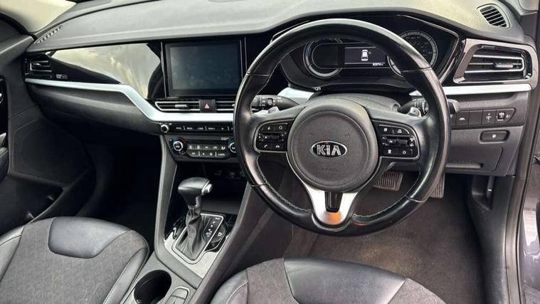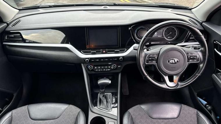 8" touch screen, Adaptive smart cruise control function (SCC) with stop and go, Apple car play/Android Auto with voice control, Digital clock, Drive mode selector, Driver attention warning, Emergency stop signalling system, Forward collision avoidance assist, Lane Following Assist (LFA), Lane keep assist, Motor driven power steering, Rear parking sensors, Reversing camera, Speed limiter, Trip computer with distance/fuel consumption/average speed, 'Shark fin' mobile antenna, 4.2" supervision cluster with TFT colour display, 6 speakers, Bluetooth with music streaming, DAB Radio with MP3, Steering wheel mounted controls, USB connection located in centre console, USB port, All round electric windows with drivers auto up/down function, Auto dimming rear view mirror, Automatic defog system, Automatic headlight control system, Black beltline mouldings, Black side sills, Body colour bumpers, Body coloured/high gloss door mirrors, Chrome door handles, Driver's side wide angle mirror, Electrically folding/adjustable/heated door mirrors with LED indicators, Front fog lights, LED daytime running lights, LED rear combination lights, Manual headlight levelling, Matt black radiator grille, Privacy glass - Rear windows and tailgate, Projector headlamps, Rain sensing front wipers, Rear spoiler, Rear wiper, Roof rails, Solar glass, Welcome and follow-me home light functionality, Wheel arch mouldings, 3 x passenger assist grips, 60/40 split/folding 2nd row of seats, All-round height adjustable headrests, Centre console storage box, Centre room lamp, Cloth/leather upholstery, Cupholders in rear armrest, Door armrest in leather, Driver's seat height adjuster, Driver/passenger sunvisors with illuminated vanity mirrors, Dual zone automatic air conditioning, Front and rear door storage, Front/rear centre armrests, Headlining in Light grey, High gloss black lower console trim, High gloss black steering wheel trim, Illuminated ignition key hole, Interior door lock/unlock function, ISOFIX Child seat top tethers and anchor fixings, Leather trimmed gearshift, Leather trimmed steering wheel, Luggage area lamp, Luggage compartment cover, Luggage net hooks, Overhead console lamp with sunglasses case, Passenger seat height adjuster, Satin finish inner door handles, Seatback pocket - front passenger, Steering wheel mounted paddle shift, Tilt/telescopic adjustable steering wheel, Under floor storage box, Ventiliation ducts to rear compartment, Towing pack - Niro, 3 point seatbelts on all seats, ABS, Automatic unlocking of doors in case of impact, Drivers knee airbag, Electric parking brake with auto hold function, Electronic stability control, Front passenger airbag cut-off switch, Height adjustable front seatbelts, Hill start assist control (HAC), Traction control, Twin curtain airbags with roll over sensor, Twin front and side airbags, Tyre pressure monitoring system, Alarm system and engine immobiliser, Deadlocks, Locking wheel nuts, Remote central door locking with fold away key, Speed sensitive auto door locking, Visible vehicle identification number, High gloss black centre fascia, High gloss black door inserts, 16" alloy wheels, Tyre mobility kit,