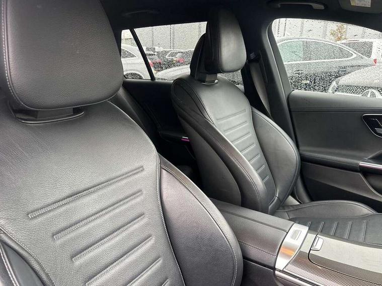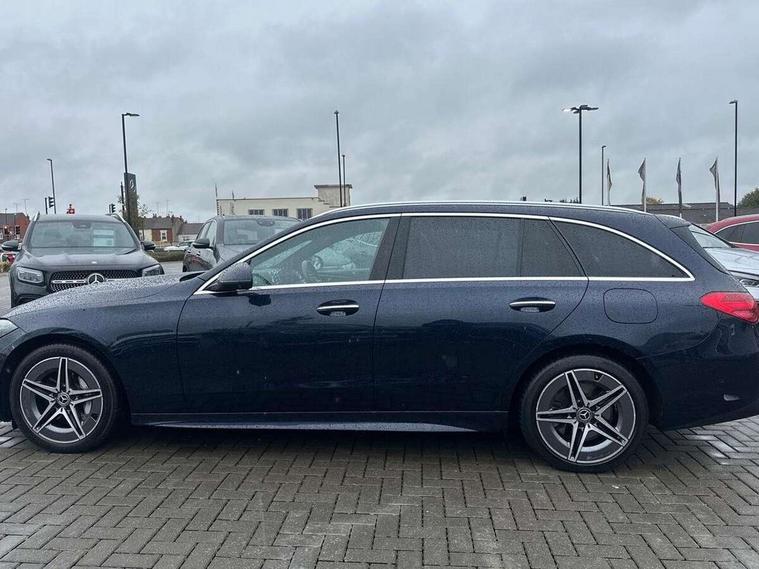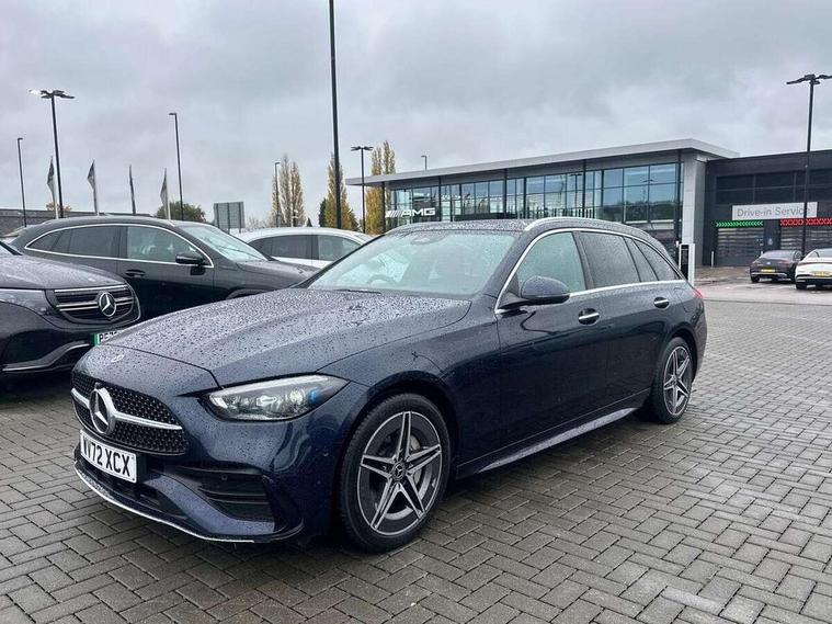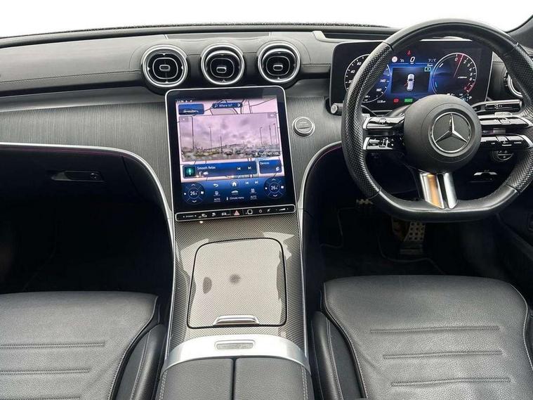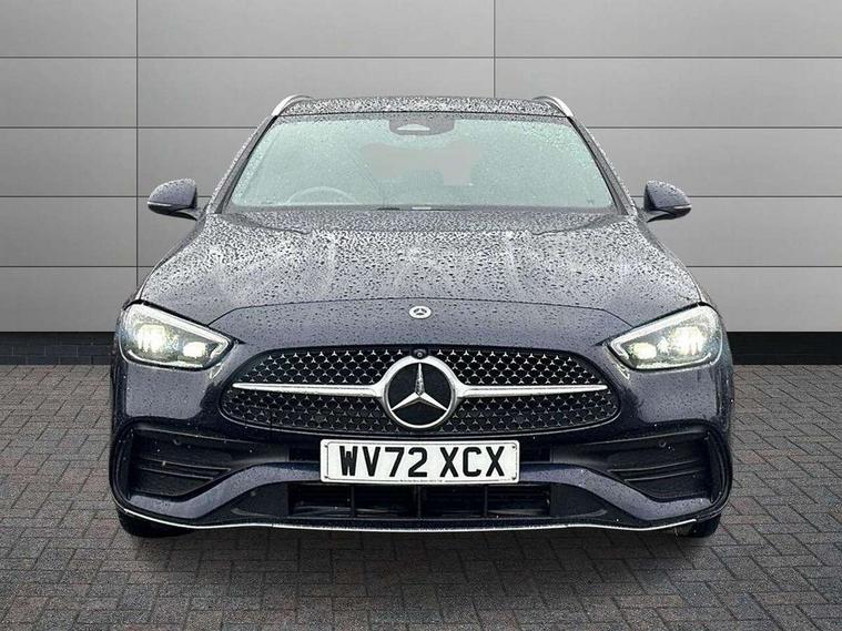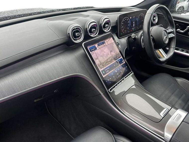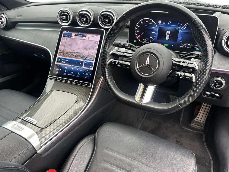 11.9" high resolution multimedia colour display, 12.3" digital instrument cluster display, AMG DYNAMIC SELECT with a choice of driving modes (Slippery, Comfort, Sport, Sport+, Individual), Attention assist, E-call, Easy pack automatic powered tailgate, Extended MBUX functions, Finger print sensor, Fluorescent jacket for driver, Head up Display, MBUX augmented reality for navigation, MBUX navigation premium, MBUX voice control activated by keywords "Hey Mercedes", Mercedes connect me, Mercedes me remote services, Outside temperature gauge, Pre-installation for digital key transfer, Remote boot release, Service indicator (ASSYST), Smartphone integration, Sports direct steer speed sensitive steering, Status display for rear seat belts in instrument cluster, 11 kW AC onboard charger, 5m charging cable for wall box/public charging stations(mode 3), 66l fuel tank with increased capacity, 9G TRONIC 9 speed automatic transmission, Agility control sports suspension and lowered by 15 mm, Petrol Particulate Filter, Sporty engine sound system, DAB Digital radio, MBUX multimedia system, Adaptive brake lights, Adaptive high beam assist plus, AMG body styling front apron, rear apron and side skirts, AMG front bumper with sporty air intakes and chrome elements, AMG rear bumper with high gloss chrome elements, AMG side skirts in vehicle colour, B-pillar trim in glossy black, Body coloured bumpers, Body coloured door mirrors, Chrome beltline trim, Chrome roof rails, Daytime running lights, Digital light LED headlamps, Electric panoramic sliding sunroof, Electric windows with one touch opening/closing and obstruction sensors, Electrically adjustable and heated door mirrors, Green tinted glass, LED Indicators, LED tail lights, LED third brake light, Powerdomes on bonnet, Privacy glass, Radiator diamond grille with integrated Mercedes Benz star and louvre silver with chrome pins, Radio aerial integrated into rear window, Rain sensor with automatic windscreen wiper activation, Rear side wing doors, Rear wiper, Two visible exhaust pipes integrated into rear bumper, 3 spoke flattened bottom AMG multifunction steering wheel in black nappa leather with chrome inserts and perforated leather in grip area, 40:20:40 split folding rear bench seat, AMG Leather upholstery, AMG sports seats, Audio and onboard settings control on multifunction steering wheel, Auto Mercedes-Benz child seat recognition sensor, Black air vents with silver chrome elements, Black floor mats with AMG lettering, Black roof liner, Door trim elements high gloss black with silver chrome surroundings and switches, Double cupholder in centre console, Electrically height/reach adjustable steering column, Folding rear seat backrest, Front and rear head restraints, Front centre armrest with storage compartment, Gearshift paddles on steering wheel, Heated front seats, Illuminated door sills with Mercedes Benz lettering, Illuminated glove compartment stowage, Interior lighting - 64 colour Ambient lighting, Load compartment cover, Overhead control unit in high gloss black, Rear top tether child seat ISOFIX attachment, Single front passenger seat, Sports pedals with stainless steel surfaces and rubber studs, Sunvisors with illuminated vanity mirrors, Thermotronic automatic 4 zone climate control, Interior lighting package - C Class, Memory package - C Class, Mirror pack - C Class, Parking package with 360 degree camera - C Class, Seat comfort pack - C Class, Stowage space pack - C Class, USB package - C Class, 3 rear 3 point seatbelts, Active bonnet pedestrian safety measure which detects an impact and raises bonnet, Adaptive brake system with HOLD function and brake drying in the wet, Anti-lock braking system (ABS), Black seat belts, Brake calipers with Mercedes-Benz lettering + perforated front brake discs, Child proof door locks, Drivers knee airbag, Drivers pelvis airbag, Dual stage driver/passenger airbags, Electric parking brake, Electronic Stability Programme (ESP), Front centre airbag between driver and front passenger seats, Front side airbags, Larger brake discs on front axle, Rear passenger airbag, Rear seatbelt warning indicator, Sports braking system with perforated front disc brakes, Tyre pressure monitoring system, Warning triangle and first aid kit, Window airbags, Central locking with interior switch, automatic locking and crash sensor with emergency opening function, Chrome surround in electric key, Keyless Go, URBAN GUARD vehicle protection (Thatcham Category 1) consisting of break-in, anti-theft alarm system (ATA), interior monitoring and tow-away protection, Artico man-made leather dashboard with contrast stitching, Centre console trim in anthracite line structure lime wood, 19" AMG 5 double spoke design aerodynamically optimised alloy wheels painted in black with high sheen finish, Summer tyres, TIREFIT with tyre inflation compressor,