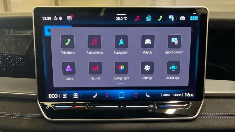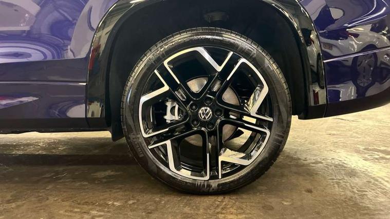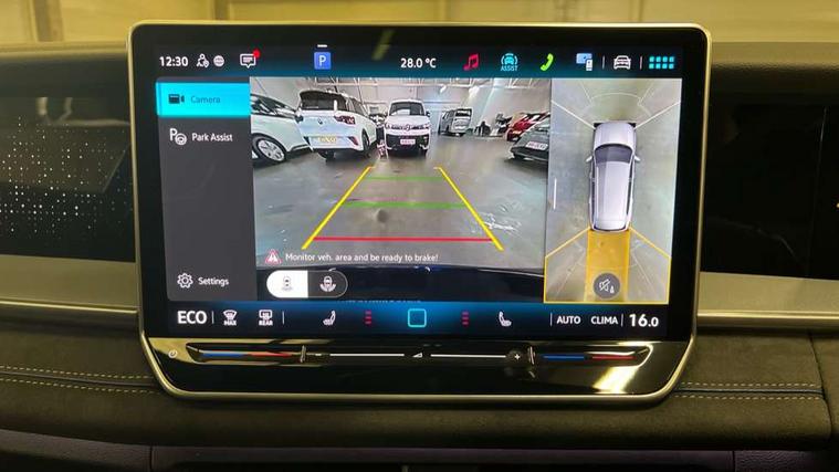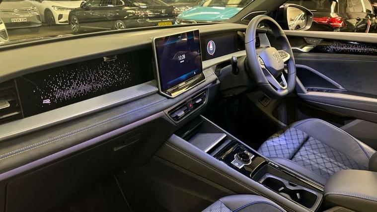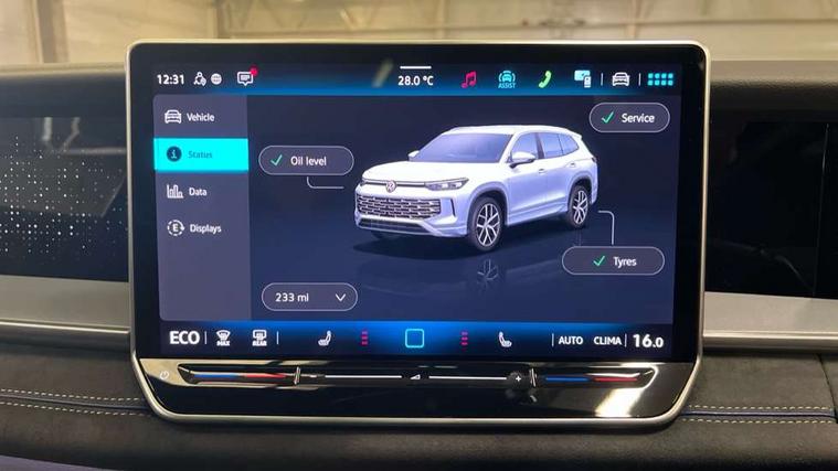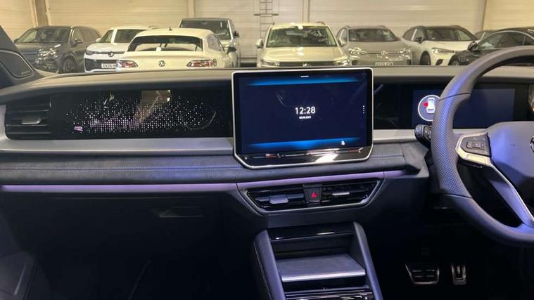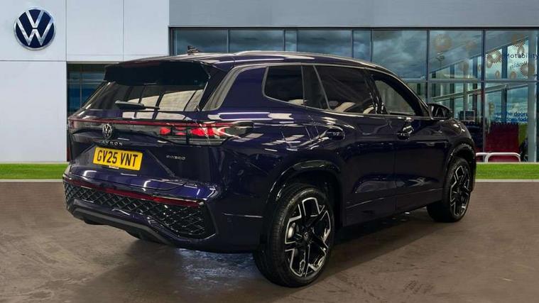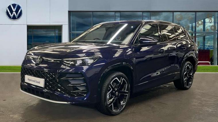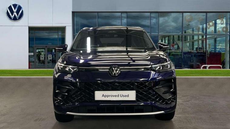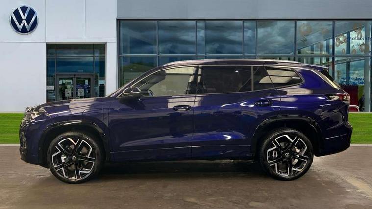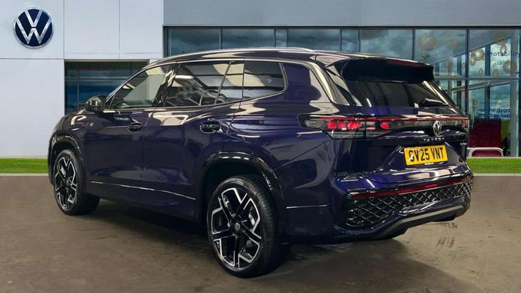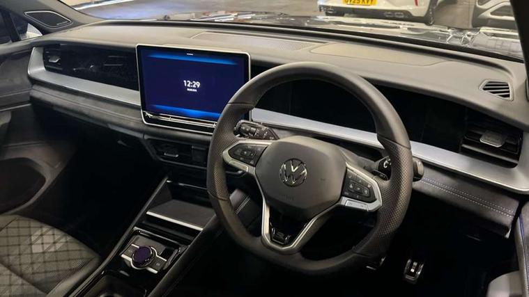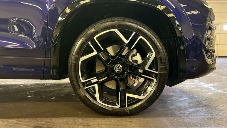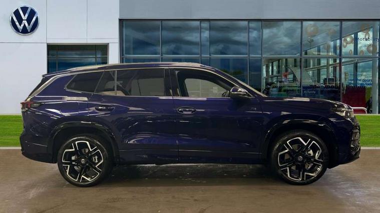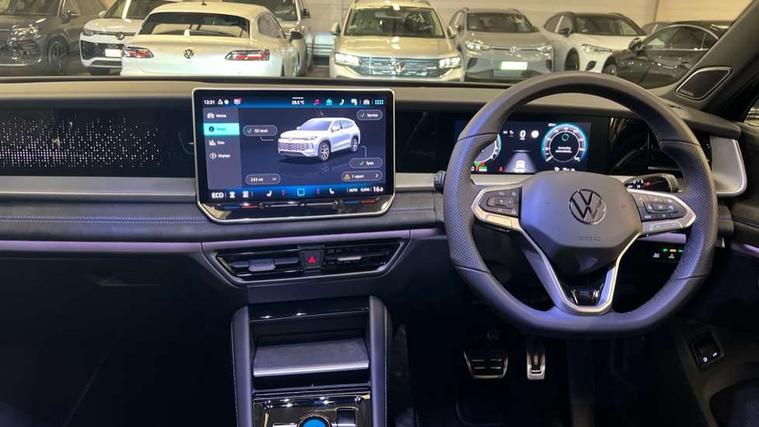 Adaptive cruise control (ACC), Digital Cockpit Pro - 10.25" high resolution dash display screen with customisable menus and information, Driver alert system, Driver attention monitoring system, Dynamic road sign display, E-Sim card for online connectivity, eCall emergency call system, Lane change system, Side assist, Rear traffic alert and Exit warning system, Multifunction front facing camera, Oncoming vehicle braking when turning including swerve support, Progressive steering, Start/stop system with regenerative braking, Voice activation spoken voice commands for telephone and navigation system, Warning signal and warning light for front and rear seatbelts not fastened, Wireless App-Connect, Adaptive chassis control DCC pro includes driving mode selection, Charging cable Mode 2 Type 2 / G (10A), Charging cable Mode 3 Type 2 / 3 (16A), Front shock absorption G08, Front wheel drive, Rear shock absorption, Digital radio reception (DAB), Diversity antenna for FM reception, Air intake with Chrome trim, Auto dimming interior rear view mirror, Automatic headlight control system, Body colour door handles, Chrome moldings on the side windows, Coming/leaving home lighting function, Dynamic headlight range control with dynamic cornering light, Exterior mirrors convex on the left and aspherical on the right, Heat insulating glass in side and rear windows, Illuminated Volkswagen logo rear with animation, Laminated safety glass winshield, heat insulating, LED 3rd brake light, LED separate signature day time running light, Puddle lights, Rain sensor windscreen wipers, Rear fog light on one side, reversing light on both sides, Rear side wing doors, Rear wiper, Reverse activated passenger's door mirror, Surround lighting with welcome light, Tilting and sliding panoramic sunroof with rear panoramic sunroof, Volkswagen logo in front, illuminated lighting animation with wake up/goodbye scenario and illuminated door handles, 10 colour interior ambient lighting, 12V outlet in center console rear and in luggage compartment, 3 rear headrests, 3 rear seat bench in 2nd row, split folding, longitudinally movable and folding with load-through hatch, Black roof lining, Brushed stainless steel pedals, Carpet mats, front and rear, Centre console with illuminated storage compartment with sliding cover and two drinks holders, Chrome elements on the mirror switch and power window switches and door pulls, Door and side trim panel insert in Art velour, Flat luggage compartment floor, Front centre armrest, Front scuff plates in alumium, ISOFIX anchors for child seats on outer rear seats and front passenger seat compatible with i-Size, Mechanical rear seat release, Power adjustable lumbar support in front, Single front passenger seat, Sports comfort seats in front, Sun visors with illuminated vanity mirrors, Comfort package with park assist pro - Tayron, 3 Point seat belts in front with pretensioners, 3 point seatbelts in outer rear with ECE label, Autonomous emergency braking front assist with pedestrian and cyclist monitoring, Driver and front passenger airbag with front passenger airbag deactivation, Electronic parking brake with auto hold, First aid kit with warning triangle and safety vest, Front and rear curtain airbags, Front and rear side airbags, Front centre airbag, Front disc brakes, Hill start assist, Rear disc brakes, Two tone horn, Decorative material set R-Line, Interior door handle in matte chrome, Tool kit for tyre mobility set, Tyre mobility kit including compressor and sealing foam. In lieu of spare wheel,