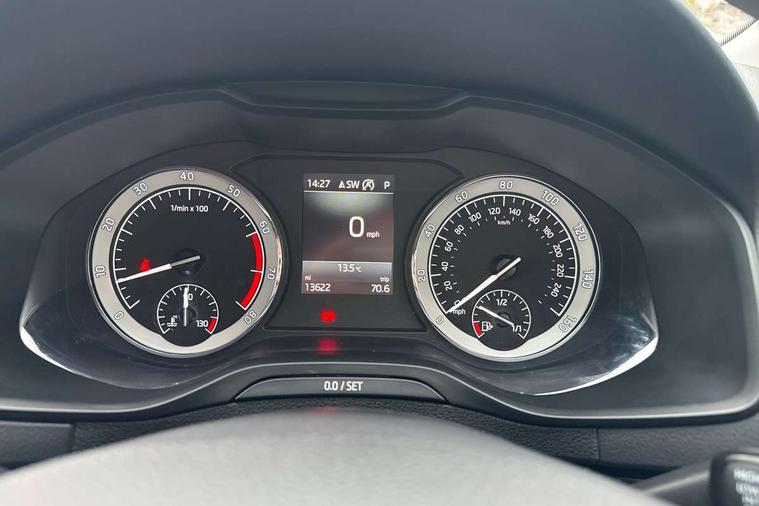 Driver alert system, Driver fatigue sensor, Driver profile selection, Electro-mechanical PAS, Front and rear parking sensors, Multifunction colour trip computer, Outside temperature gauge, Rear view camera, Service interval indicator, Start/stop system with regenerative braking, DAB radio with Bluetooth, SD card slot, USB connection, Acoustic glass, Aero front windscreen wipers with intermittent function, Automatic headlight control system, Body colour door mirrors and handles, Body coloured bumpers, Chrome outside aluminium bar around the window, Chrome roof rails, Full LED headlights + adaptive front light system + LED daytime running lights and front cornering fog lights, Headlight washers, Heated rear windscreen, LED rear lights with high functionality, Light assistant (coming/leaving home/tunnel light), Privacy glass, Safety reflectors on front doors, Third brake light, 1.5 litre bottle holders in driver and front passenger door panels, 12V socket in boot, 12v socket in front centre armrest with storage compartment and rear air vents, 2 Folding hooks and nets in boot, 2 Front readings lights for driver and passenger, 3 rear height adjustable headrests, 4 foldable roof handles with rear coat hooks, 4 lashing points on luggage floor, Backrest release, Cargo elements in boot, Chrome inner door handles, Dual zone climate control, Folding tables on the front seat backrests, Front seat and rear pockets, Height adjustable front three point seats belts with tensioners, Height adjustable passenger seat, Height/reach adjust steering wheel, Ice scraper, Illuminated and cooled glovebox, Illuminated luggage compartment, Isofix child seat preparation outer rear, Net programme in boot, Pen holder, Pollen filter, Rear boot cover, Rear reading lights, Rear seats fixed folding and divided 60:40, Removable LED torch in the boot, Retractable parcel shelf attachable to tailgate, Safety vest holder, Storage box in upper central dashboard closed, Storage compartment below the passenger seat, Storage net on centre console passenger side, Sunglasses storage compartment, Sunvisors with illuminated vanity mirrors, Textile floor mats, Umbrella under passenger seat, VarioFlex seats with retractable parcel shelf, Airbags - Front side, head, knee and curtain, Automatic door unlocking in case of crash, Automatic fuel cut off in case of crash, Driver airbag, Electronic parking brake with auto hold function, Emergency rear braking signal, ESC including ABS, MSR, ASR, EDS, HBA, DSR, RBS, MKB and traction control, Front assist radar scanning of the space in front of the car with automatic braking, Hill hold control, Passenger airbag with switch-off function, Pedestrian monitor, Seatbelt reminder signalisation and pretensioner for all seats, Three point seatbelts rear, Two tone horn, Tyre pressure display, Tyre pressure monitor, Alarm with interior monitoring, back up horn and tilt sensor with safe function, Electronic engine immobiliser, Keyless entry and keyless start with safe system, Remote central locking with 2 remote folding keys, Chrome framed air vents, Storage on wheel cover,