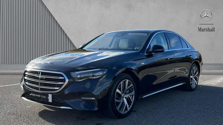 12.3" high resolution cockpit display, 14.4" high resolution central media display with latest MBUX generation, 5G Communications module, Acoustic presence indicator, Attention assist, Blind spot assist, Bluetooth, Brake wear warning display, Direct steer speed sensitive steering, ECO start/stop function, Evasive manoeuvre support, Fingerprint scanner, Fluorescent jacket for driver, Hard disc navigation, MBUX navigation premium, MBUX voice control, Mercedes me connect including emergency call system, accident recovery, breakdown and maintenance management, Outside temperature display, Preinstallation for digital vehicle key, Preinstallation for live traffic, Remote and charging services plus, Remote bootlid closing, Remote Services Premium, Service indicator (ASSYST), Status display for rear seat belts in instrument cluster, Trip computer in multifunction display showing current fuel consumption, Wireless charging, Wireless smartphone integration with Apple CarPlay and Android auto, 60 litre fuel tank with 10 litre reserve, 9G TRONIC automatic transmission, AC charging, Charging cable for household socket, DC charging, Mode 3 charging cable for public charging and domestic charging stations, Burmester 4D surround sound system, DAB Digital radio, Preinstallation for MBUX Entertainment Plus, Sound visualisation, 3rd brake light, Acoustic glass, Adaptive brake lights, Aerial integrated in rear window, Auto dimming driver's door mirror, Auto dimming rear view mirror, Digital air vent control, Electric folding door mirrors, Electric windows with one touch opening/closing and obstruction sensors, Electrically adjustable and heated door mirrors, EQ badging, Exclusive exterior styling including classic bonnet mounted Mercedes-Benz star, Exclusive line exterior, Heat insulating privacy glass, Illuminated front door sills, interchangeable cover with 'Mercedes-Benz' lettering, LED daytime running lights, LED digital light with adaptive highbeam assist plus, Panoramic sliding sunroof, Pre-installation for roof rail systems, Rear boot, Rear side wing doors, Surround lighting with logo projection, 3 seat bench in 2nd row, 4 way lumbar support, Active ambient lighting, AMG brushed stainless steel sports pedals with rubber studs, Automatic child seat recognition sensor, Central stowage compartment with USB socket for use with Android Auto and Apple CarPlay, Climatised front seats, Comfort seats, Courtesy lights in rear grab handles with reading light functionality, Exclusive line interior, Folding rear seat backrest, Front centre armrest with stowage compartment, Gearshift paddles, Glove compartment - lockable, air conditioned and illuminated, Head restraints for driver and front passenger (four-way adjustability) and in rear (two-way), Heated front seats, Instrument panel and door beltlines in artico nappa look leather, Leather upholstery, Multifunction steering wheel in nappa leather, Roof liner in black fabric, Seat occupancy sensor for front passenger seat, Single front passenger seat, Steering wheel touch control buttons for audio and onboard settings, Sunvisors with illuminated vanity mirrors, THERMATIC 2 zone automatic climate control, Velour floor mats, Keyless Go comfort package - E Class, Memory package - E Class, Night pack - E class, Parking package with 360 degree camera - E Class, USB plus package - E Class, Winter pack - E Class, 3x3 point rear seatbelts, Active bonnet pedestrian safety measure which detects an impact and raises bonnet, Adaptive brake system with HOLD function and brake drying in the wet, Anti-lock braking system (ABS), Automatic front passenger airbag deactivation, Central airbag, Childproof locks manually operated for rear doors and electrically operated for rear power windows, Driver and adaptive front passenger airbags, Electronic parking brake, Electronic Stability Programme, Hill start assist, ISOFIX child seat attachment points two outer rear seats, Knee airbags, Pedestrian protection, Pre-Safe anticipatory safety system, Tyre pressure monitoring system, Warning triangle and first aid kit, Window airbags, Alarm system/interior protection/immobiliser, Central locking with interior switch, automatic locking and crash sensor with emergency opening function, Digital vehicle key, Guard 360 degree vehicle protection plus, Increased anti theft protection, Urban guard vehicle protection plus, 19" AMG multispoke design alloy wheels painted in termolite grey with high sheen finish, Summer tyres, Tirefit,