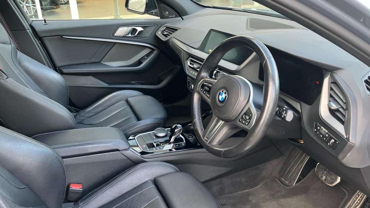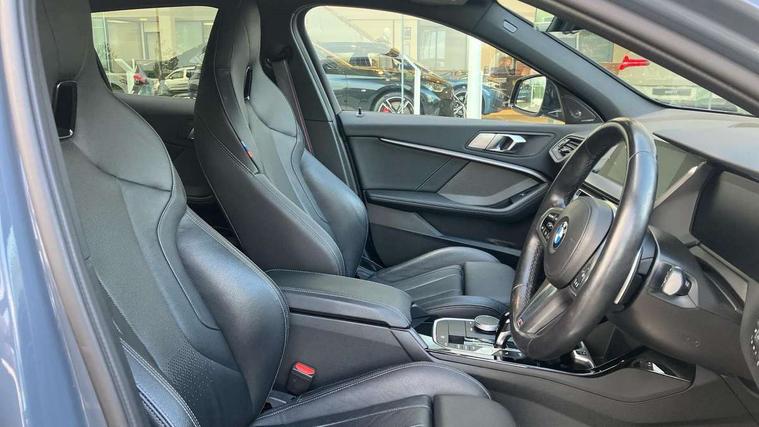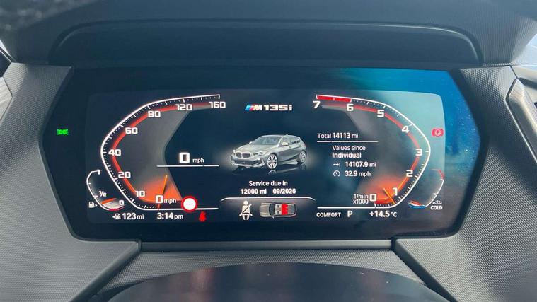 Active guard plus, Attentiveness assist, BMW ConnectedDrive online services, BMW Teleservices, Check Control warning system for monitoring of lights and door/luggage compartment open warning, Cruise control with brake assist, Eco pro mode, Electric power steering, Electro hydraulically controlled multi-plate clutch transfers drive to rear axle and with power take-off device located on the front differential., Energy efficient operating strategy, Front axle single joint with specific axle kinematics to minimise drive influences on steering + provide increased rigidity agile driving behaviour, Gearshift time display in manual mode, Integrated owners handbook, Lane departure warning system, M Sports steering with M135i xDrive specific settings, Oil sensor for level and grade, On board computer, Optimum shift indicator, Personal Profile, Pull away assistant, Rigidly mounted rear subframe - Multi link construction with separate spring / damper configuration and excellent driving characteristics, Speed limit Info including no-overtaking indicator, Speed limiter, Sporty fast gear shifting in sport mode, Aluminium lightweight construction, Anti roll bar front and rear, Balancer shaft, Double VANOS, Drive Performance Control, Eight speed sport automatic transmission with gearshift paddle switches, Electronic differential lock, Electronic selector lever, Engine cover with M performance designation, High precision injection, Larger fuel tank capacity (50 litres), Launch control, M135i specific heavily de-throttled engine intake air guide, M135i specific high-performance cooling package, M135i specific larger turbocharger with integrated divert-air valve, Petrol Particulate Filter, Twin tube gas filled shock absorbers with degressive characteristic curve, VALVETRONIC engine management, Variable, stepless and infinitely adjustable distribution of drive torque between the front and rear axles, xDrive intelligent all wheel drive with M135i specific reinforced components, DAB Digital radio, Auto dimming rear view mirror, Automatic headlight beam throw control, Automatic windscreen wipers and automatic headlight, Body colour door handles, Body colour roof trims, Cerium grey exterior mirror caps, Direction indicator side lights in exterior mirrors, Exhaust tailpipe, Cerium Grey with bevelled finish - twin, round 100mm, left and right split, Fading support, Folding side mirrors with auto dimming/folding wing mirrors with auto dimming, Follow me home headlights, Front and rear bumper system with replaceable deformation elements, Front and rear electric windows with open and close fingertip control, anti trap facility and comfort closing, Front door sill finishers with M135i designation, Green tinted heat protection glazing, Heated, electrically adjustable exterior mirror aspheric on driver side, convex on passenger side, High gloss shadowline window frame, Recess cover mirror frames and B/C pillar embelisher trim, High level third brake light, Integrated front windscreen with washer jets, Kidney grille frame in Cerium Grey with Mesh design, LED daytime running lights, LED eyebrow turn indicators, LED front fog lights, Lightweight engineering, M logo designation side in cerium grey, M Performance exhaust system with valve control and minimised exhaust back pressure, M Performance specific setup, M Sport spoiler, Matt black air guide grilles, Matt black wheel arch trim, Model designation on electric bootlid includes xDrive designation for M135i xDrive, Nearside reverse light in rear light cluster, Preparation for high beam assistant, Rear fog lights, Rear side wing doors, Rear window wiper, Reinforced crank drive, new pistons and adapted con rods, Shark fin antenna, Trailer stabilisation logic, Visible VIN plate, Welcome lighting, 12V power socket in front centre console with blanking plug, 3 rear seat head restraints, 3 seat bench in 2nd row, 3 spoke sports leather steering wheel with black leather and stitching, pearl chrome decorative finish, specific M Badge, Anthracite headlining, Black boot net with lashing eyes, Cargo function on 2nd seat row, Child seat ISOFIX attachment for two outer rear seats and front passenger seat with anchorage points, Conditioned based service, Driver and front passenger seat heating, Folding rear clothes hook, Four grab handles integrated in roof lining, Front and rear door pockets with bottle holders, Front and rear side armrest integrated into door trim, Front armrest, Front integrated head restraints, Front M sports seats, Glove compartment, Luggage compartment for bag hooks on left and right, foldable luggage compartment liner and four lashing eyelets, Manual adjust steering wheel, Multi-function controls for steering wheel, Single front passenger seat, Storage compartment in centre console, Sun visors with vanity mirrors and insert tab, Two front centre console cupholders, Two zone automatic air conditioning, Velour floor mats, Additional interior lighting pack - 1 Series M135i, BMW live cockpit professional pack- 1 Series, Connected pack professional - 1 Series, Interior lights pack - 1 Series, M Sport exterior styling aerodynamics pack - 1 Series 135i, 2 tone horn, 3 point seatbelts on all seats, front pyrotechnic belt tensioners, stopper and belt force limiters, rear coded belt buckles, Airbags - Front driver/passenger, front and rear curtain head protection, front side, manual deactivation of front passenger airbag, Anti lock braking system (ABS) with brake assist, BMW emergency call, Brake drying, Braking readiness, Child proof locking system in rear door, City braking function, Comfort modes, Cornering brake control, Crash sensor activating central locking release, hazard warning lights, fuel cut off, interior lighting + activation of safety battery terminal clamp, Driver and front passenger seat belt security check, Dynamic stability control + (DSC+), Dynamic Traction Control - DTC, Electrically operated hand brake including automatic hold function, Front and rear