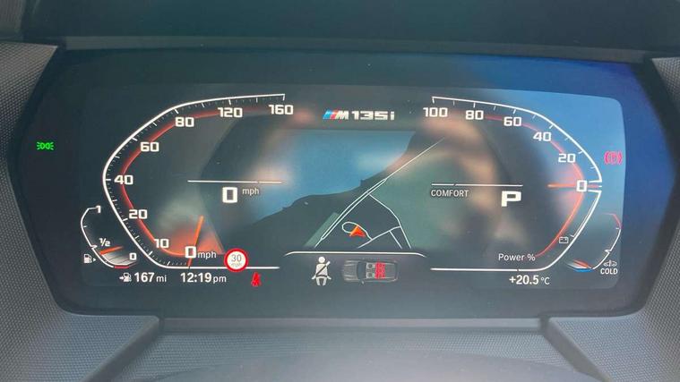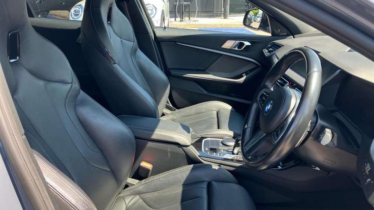 Active guard plus, Attentiveness assist, BMW ConnectedDrive online services, BMW Teleservices, Check Control warning system for monitoring of lights and door/luggage compartment open warning, Cruise control with brake assist, Eco pro mode, Electric power steering, Electro hydraulically controlled multi-plate clutch transfers drive to rear axle and with power take-off device located on the front differential., Energy efficient operating strategy, Front axle single joint with specific axle kinematics to minimise drive influences on steering + provide increased rigidity agile driving behaviour, Gearshift time display in manual mode, Integrated owners handbook, Lane departure warning system, M Sports steering with M135i xDrive specific settings, Oil sensor for level and grade, On board computer, Optimum shift indicator, Personal Profile, Pull away assistant, Rigidly mounted rear subframe - Multi link construction with separate spring / damper configuration and excellent driving characteristics, Speed limit Info including no-overtaking indicator, Speed limiter, Sporty fast gear shifting in sport mode, Aluminium lightweight construction, Anti roll bar front and rear, Balancer shaft, Double VANOS, Drive Performance Control, Eight speed sport automatic transmission with gearshift paddle switches, Electronic differential lock, Electronic selector lever, Engine cover with M performance designation, High precision injection, Larger fuel tank capacity (50 litres), Launch control, M135i specific heavily de-throttled engine intake air guide, M135i specific high-performance cooling package, M135i specific larger turbocharger with integrated divert-air valve, Petrol Particulate Filter, Twin tube gas filled shock absorbers with degressive characteristic curve, VALVETRONIC engine management, Variable, stepless and infinitely adjustable distribution of drive torque between the front and rear axles, xDrive intelligent all wheel drive with M135i specific reinforced components, DAB Digital radio, Auto dimming rear view mirror, Automatic headlight beam throw control, Automatic windscreen wipers and automatic headlight, Body colour door handles, Body colour roof trims, Cerium grey exterior mirror caps, Direction indicator side lights in exterior mirrors, Exhaust tailpipe, Cerium Grey with bevelled finish - twin, round 100mm, left and right split, Fading support, Folding side mirrors with auto dimming/folding wing mirrors with auto dimming, Follow me home headlights, Front and rear bumper system with replaceable deformation elements, Front and rear electric windows with open and close fingertip control, anti trap facility and comfort closing, Front door sill finishers with M135i designation, Green tinted heat protection glazing, Heated, electrically adjustable exterior mirror aspheric on driver side, convex on passenger side, High gloss shadowline window frame, Recess cover mirror frames and B/C pillar embelisher trim, High level third brake light, Integrated front windscreen with washer jets, Kidney grille frame in Cerium Grey with Mesh design, LED daytime running lights, LED eyebrow turn indicators, LED front fog lights, Lightweight engineering, M logo designation side in cerium grey, M Performance exhaust system with valve control and minimised exhaust back pressure, M Performance specific setup, M Sport spoiler, Matt black air guide grilles, Matt black wheel arch trim, Model designation on electric bootlid includes xDrive designation for M135i xDrive, Nearside reverse light in rear light cluster, Preparation for high beam assistant, Rear fog lights, Rear side wing doors, Rear window wiper, Reinforced crank drive, new pistons and adapted con rods, Shark fin antenna, Trailer stabilisation logic, Visible VIN plate, Welcome lighting, 12V power socket in front centre console with blanking plug, 3 rear seat head restraints, 3 seat bench in 2nd row, 3 spoke sports leather steering wheel with black leather and stitching, pearl chrome decorative finish, specific M Badge, Anthracite headlining, Black boot net with lashing eyes, Cargo function on 2nd seat row, Child seat ISOFIX attachment for two outer rear seats and front passenger seat with anchorage points, Conditioned based service, Driver and front passenger seat heating, Folding rear clothes hook, Four grab handles integrated in roof lining, Front and rear door pockets with bottle holders, Front and rear side armrest integrated into door trim, Front armrest, Front integrated head restraints, Front M sports seats, Glove compartment, Luggage compartment for bag hooks on left and right, foldable luggage compartment liner and four lashing eyelets, Manual adjust steering wheel, Multi-function controls for steering wheel, Single front passenger seat, Storage compartment in centre console, Sun visors with vanity mirrors and insert tab, Two front centre console cupholders, Two zone automatic air conditioning, Velour floor mats, Additional interior lighting pack - 1 Series M135i, BMW live cockpit professional pack- 1 Series, Connected pack professional - 1 Series, Interior lights pack - 1 Series, M Sport exterior styling aerodynamics pack - 1 Series 135i, 2 tone horn, 3 point seatbelts on all seats, front pyrotechnic belt tensioners, stopper and belt force limiters, rear coded belt buckles, Airbags - Front driver/passenger, front and rear curtain head protection, front side, manual deactivation of front passenger airbag, Anti lock braking system (ABS) with brake assist, BMW emergency call, Brake drying, Braking readiness, Child proof locking system in rear door, City braking function, Comfort modes, Cornering brake control, Crash sensor activating central locking release, hazard warning lights, fuel cut off, interior lighting + activation of safety battery terminal clamp, Driver and front passenger seat belt security check, Dynamic stability control + (DSC+), Dynamic Traction Control - DTC, Electrically operated hand brake including automatic hold function, Front and rear