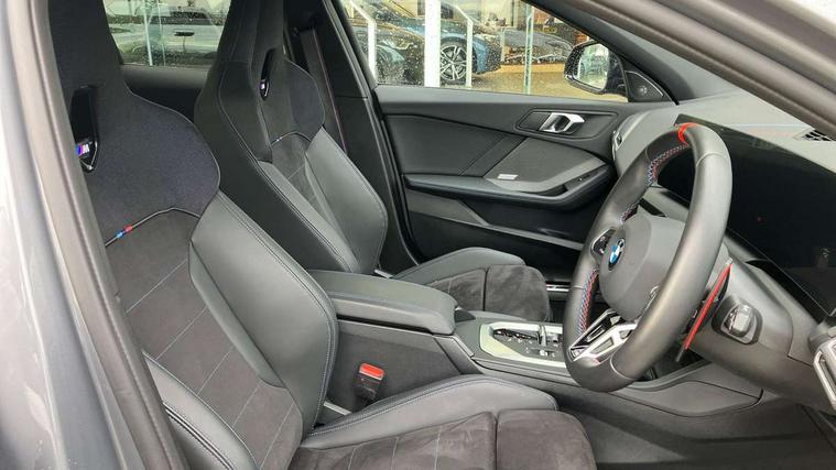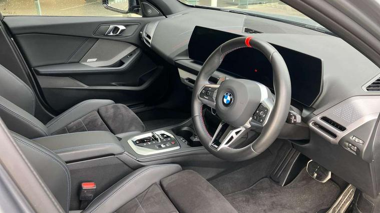 Active guard plus, Attentiveness assist, Bluetooth / WiFi interface for wireless connection of mobile terminal devices and audio streaming, BMW ConnectedDrive online services, BMW Live cockpit plus, BMW Teleservices, Check Control warning system for monitoring of lights and door/luggage compartment open warning, Cruise control with speed limiter, Eco pro mode, Electric power steering, Electro hydraulically controlled multi-plate clutch transfers drive to rear axle and with power take-off device located on the front differential., Energy efficient operating strategy, Front and rear parking sensors, Front axle single joint with specific axle kinematics to minimise drive influences on steering + provide increased rigidity agile driving behaviour, Gearshift time display in manual mode, Integrated owners handbook, Lane departure warning system, M Sports steering with M135i xDrive specific settings, Oil sensor for level and grade, On board computer, Optimum shift indicator, Park assist including reversing assistant, lateral parking aid and reversing assist camera, Personal Profile, Pull away assistant, Rigidly mounted rear subframe - Multi link construction with separate spring / damper configuration and excellent driving characteristics, Speed limit Info including no-overtaking indicator, Speedometer, Sporty fast gear shifting in sport mode, 49 litre fuel tank, Aluminium lightweight construction, Anti roll bar front and rear, Balancer shaft, Double VANOS, Drive Performance Control, Eight speed sport automatic transmission with gearshift paddle switches, Electronic differential lock, Electronic selector lever, Engine cover with M performance designation, High precision injection, Launch control, M Adaptive suspension, M135i specific heavily de-throttled engine intake air guide, M135i specific high-performance cooling package, M135i specific larger turbocharger with integrated divert-air valve, Petrol Particulate Filter, Twin tube gas filled shock absorbers with degressive characteristic curve, VALVETRONIC engine management, Variable, stepless and infinitely adjustable distribution of drive torque between the front and rear axles, xDrive intelligent all wheel drive with M135i specific reinforced components, DAB Digital radio, Harman/Kardon surround sound audio system with 464W amplifier power, 9 channels and 16 speakers, Auto dimming rear view mirror, Automatic headlight beam throw control, Automatic windscreen wipers and automatic headlight, Body colour door handles, Body colour roof trims, Cerium grey exterior mirror caps, Direction indicator side lights in exterior mirrors, Electrically adjustable exterior mirror with mirror adjustment switch on drivers armrest and aspheric on driver side, convex on passenger side, Exhaust tailpipe, Cerium Grey with bevelled finish - twin, round 100mm, left and right split, Fading support, Folding side mirrors with auto dimming/folding wing mirrors with auto dimming, Follow me home headlights, Front and rear bumper system with replaceable deformation elements, Front and rear electric windows with open and close fingertip control, anti trap facility and comfort closing, Front door sill finishers with M135i designation, Green tinted heat protection glazing, High gloss shadowline window frame, Recess cover mirror frames and B/C pillar embelisher trim, High level third brake light, Integrated front windscreen with washer jets, Kidney grille frame in Cerium Grey with Mesh design, LED daytime running lights, LED eyebrow turn indicators, LED Headlights, Lightweight engineering, M Performance exhaust system with valve control and minimised exhaust back pressure, M Performance specific setup, M sport roof spoiler, Matt black air guide grilles, Matt black wheel arch trim, Nearside reverse light in rear light cluster, Preparation for high beam assistant, Rear fog lights, Rear side wing doors, Rear window wiper, Reinforced crank drive, new pistons and adapted con rods, Shark fin antenna, Sun protection glass, Trailer stabilisation logic, Visible VIN plate, Welcome lighting, 12V power socket in front centre console with blanking plug, 3 rear seat head restraints, 3 seat bench in 2nd row, 3 spoke sports leather steering wheel with black leather and stitching, pearl chrome decorative finish, specific M Badge, Anthracite headlining, Black boot net with lashing eyes, Cargo function on 2nd seat row, Child seat ISOFIX attachment for two outer rear seats and front passenger seat with anchorage points, Conditioned based service, Driver and front passenger backrest net on rear, Driver and front passenger seat heating, Driver side folding compartment in instrument panel, Folding rear clothes hook, Four grab handles integrated in roof lining, Front and rear door pockets with bottle holders, Front and rear side armrest integrated into door trim, Front armrest, Glove compartment, Height adjustable front head restraints, Luggage compartment for bag hooks on left and right, foldable luggage compartment liner and four lashing eyelets, Manual adjust steering wheel, Multi-function controls for steering wheel, Rear seat backrest with manual 60:40 split folding with 3 top tether clips integrated on rear of seat panels, Single front passenger seat, Storage compartment in centre console, Storage compartment in luggage compartment, Stowage of the parcel shelf in luggage compartment trim, Sun visors with vanity mirrors and insert tab, Two front centre console cupholders, Type C two USB ports in rear centre console, Velour floor mats, Connected pack professional - 1 Series, Interior lights pack - 1 Series, M Sport exterior styling aerodynamics pack - 1 Series 135i, 2 tone horn, 3 point seatbelts on all seats, front pyrotechnic belt tensioners, stopper and belt force limiters, rear coded belt buckles, Airbags - Front driver/passenger, front and rear curtain head protection, front side, manual deactivation of front passenger airbag, Anti lock braking system (ABS) with brake assist, BMW emergency c