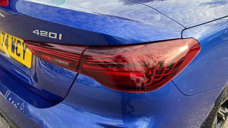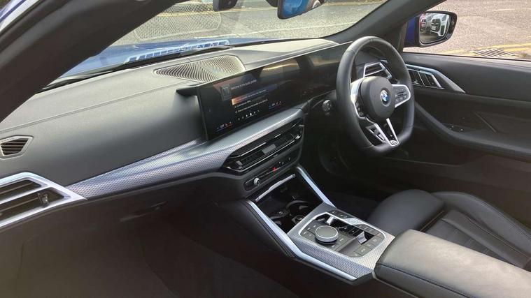 Active guard plus, Attentiveness assist, Auto start-stop, Bluetooth hands free facility with USB audio interface with audio streaming, BMW ConnectedDrive online services, BMW iDrive controller on centre console, BMW Live Cockpit Plus Nav-12.3" instrument&14.9" control Widescreen curved display/Intelligent Voice Assist/iDrive touch/Access 3rd party app/4G LTE, BMW service history, BMW Teleservices, Brake pad wear indicator in front and rear, Check Control warning system for monitoring of lights and door/luggage compartment open warning, Condition based service, Electric power steering with Servotronic steering optimised at all speed ranges, Gearshift time display in manual mode, Instrument cluster with speedometer with mph readout, tachometer, fuel gauge and oil temperature gauge, Integrated owners handbook, Language version English, Oil sensor for level and grade, warning by check control system, On board computer - average speed, fuel consumption, outside temp display with acoustic warning, clock/date, service interval, odometer/trip meter, Optimum shift indicator, Run flat indicator, Shifting point display, Smartphone integration compatible with Apple CarPlay and Android Auto, Variable sport steering, 8 speed automatic steptronic transmission with gearshift paddles, Balanced 50/50 weight distribution, Double joint spring strut front axle, Double VANOS, Drive performance control - ECO PRO, comfort and sport modes, High precision injection, Low centre of gravity, Petrol Particulate Filter, Stroke dependent dampers, VALVETRONIC engine management, 1x USB type A with data transfer and 1.5 Amp charging function in the centre console, 1x USB type C with 3 Amp charging function in the front centre armrest, DAB tuner, Electronic service booklet, Personal eSim, Acoustic glazing, Automatic headlight beam throw control with load dependent regulating reaction, dynamic compensation of braking dive and acceleration squat, Automatic windscreen wipers and automatic headlight, Automatically dimming electrochromatic rear view mirror, BMW emblem on engine compartment lid and tailgate, BMW kidney grille with mesh grille front side of the nuggets in matt aluminium and frame in chrome high gloss, Body colour fuel filler flap, Body colour roof fin, Brushed aluminium inserts in the front door sill finishers with BMW designation, Door sill strips, Dynamic brake lights, Electric windows - front and rear, with open/close fingertip control, anti trap facility and comfort closing function all round, Exterior mirrors - electrically folding with anti-dazzle, Fading support, Follow me home headlights, Front and rear bumper system, Front apron plastic in body colour, Green tinted heat protection glazing, High gloss shadow line exterior trim, Illuminated bow type door handles in body colour drivers side with door lock, Interior rear view electrochromatic mirror with automatic anti dazzle function, LED daytime running lights, LED front fog lights, LED front indicators, Licence plate panel integrated into front bumper and tailgate, Lightweight engineering, M designation on front side panels, left and right, One piece front bumper cover including towing eye cover in body colour, Preparation for high beam assistant, Rear boot, Reversing light, Side frame decorative moulding black matt, Third brake light, Two part LED tailights in L-shape with components in smoked glass, brake light, LED turn indicator and rear fog light, Visible exhaust tailpipe finisher, Visible VIN plate, Welcome lights in interior and door handle area, Widened track and increased camber values for max transverse dynamics, agility and steering precision, Wind deflector, Window recess finisher strip in matt black, Windscreen wipers with integrated heated washing jets, 12V power socket in front centre console, 2 2nd row folding seats, 2 front cupholder in centre console with clamping elements and matt black inlay, 2 Rear seat headrests, 2 zone automatic air conditioning, 2nd row centre armrest with built-in cupholders, 3 spoke flat bottom M sport leather multifunction steering wheel, 4 pieces lashing eyelets in luggage compartment, Anthracite headlining, Armrest integrated in front and rear door trim + front centre console armrest, Battery in luggage compartment, BMW ID, Driver seat backrest width adjustment, Electric seat adjustment with memory, Extended storage - Luggage compartment partition net on left side trim panel, Bag hook on both sides of the luggage compartment, Front and rear door pockets, Front and rear reading lights, Front sport seats, Heated driver and front passenger seats, Height adjustable front headrests, Height adjustable mechanically and infinitely variable steering column, Illuminated armrest storage compartment, Illuminated glove compartment with separate small compartment, Luggage compartment light, Make-up mirror lights, Single front passenger seat, Storage compartment in rear centre console, Sunvisors with illuminated vanity mirrors and ticket pocket, Toolkit located in luggage compartment, Velour front floor mats, Ambient lighting pack - 4 Series, Connected professional package - 4 Series, M sport exterior styling pack - 4 Series, 2 x 3-point rear seatbelts, Battery safety cut-off, BMW emergency call, Brake energy regeneration, Braking pre-tensioning, Child seat ISOFIX attachment for the two outer rear seats, Coasting in idle in ECO PRO mode, Cornering brake control (CBC), Crash sensor activating of airbags, Unlocking doors, hazard warning lights, interior light, safety battery terminal, Driver and front passenger side airbags, integrated in the door side seat backrest bolsters for all seat variants, Driver/Front Passenger airbags, Dry braking, Dynamic brake control, Dynamic stability control + (DSC+) - Anti-lock Braking System (ABS) with brake assist and cornering brake control + Automatic Stability Control (ASC), Dynamic Traction Control - DTC, Electric parking brake including automatic hold function and automatic release of th