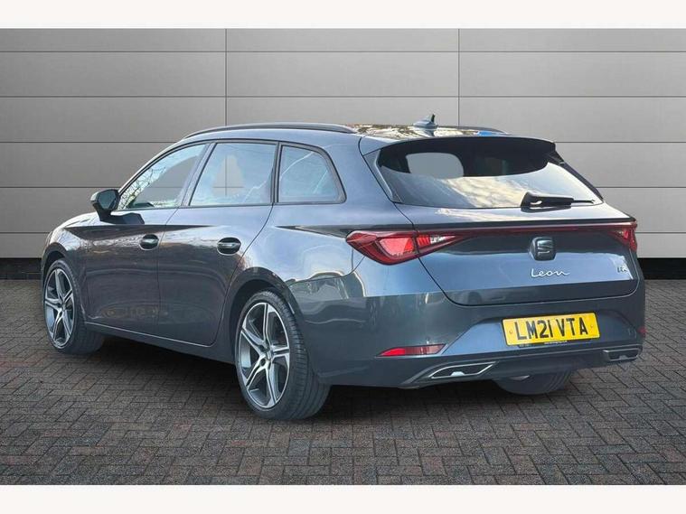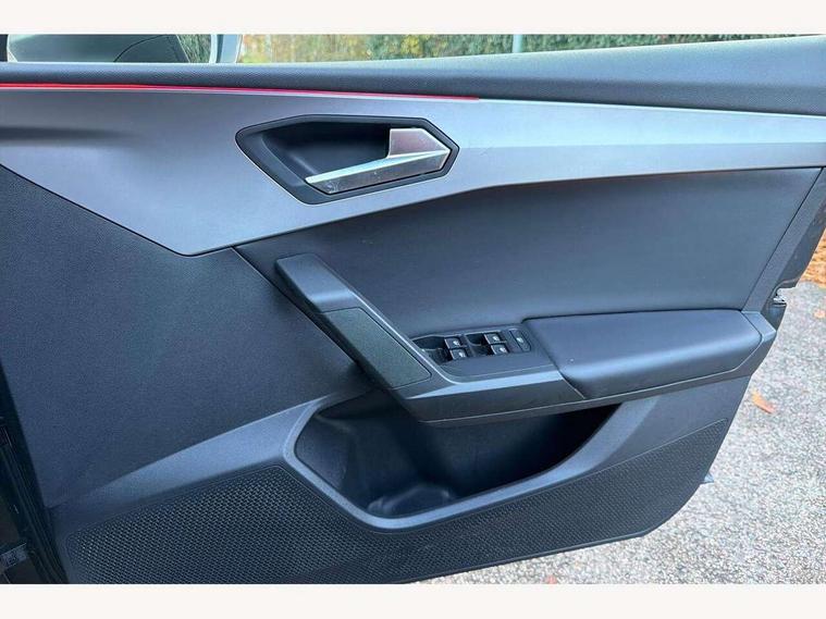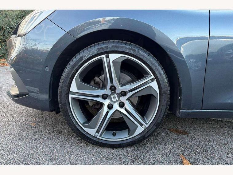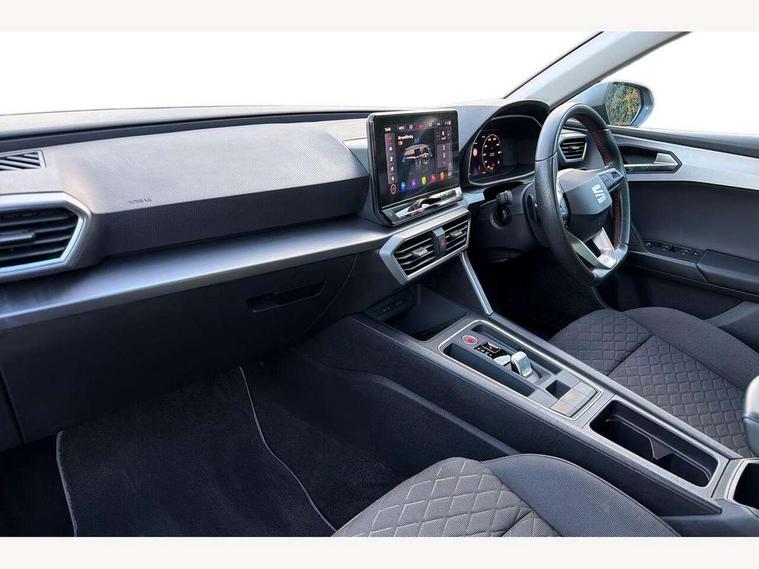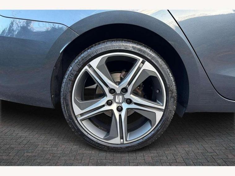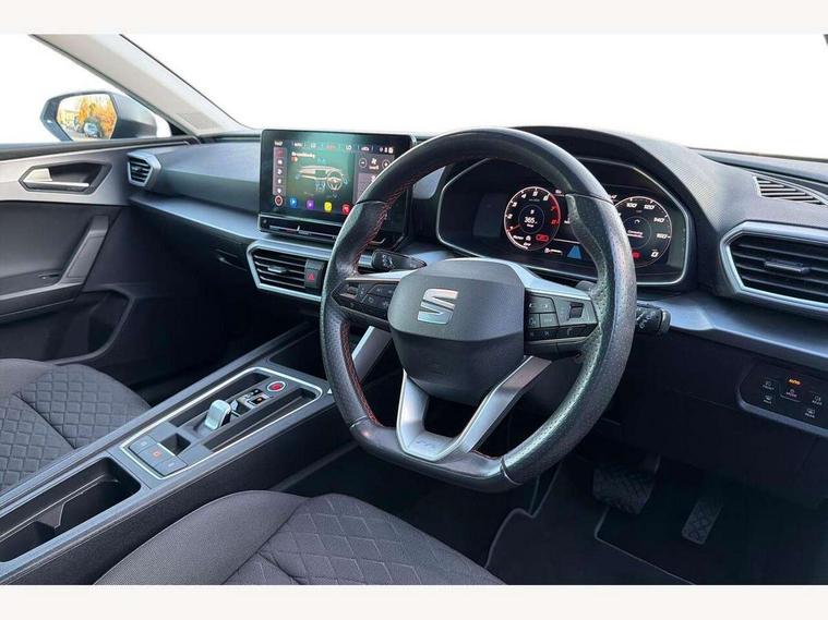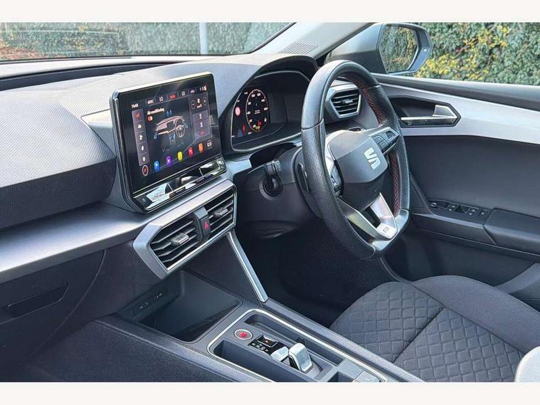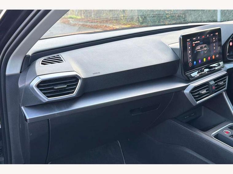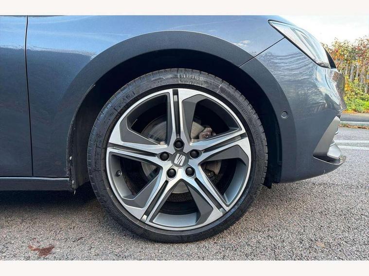 Digital cockpit, Front assist with forward collision warning braking reaction to vehicles, pedestrians and cyclists, Full link smartphone integration with Mirror Link, wireless Apple CarPlay and wired Google Android Auto, Lane keeping system, Lockable tailgate, Park assist (inc front/rear parking sensors), Power assisted speed sensitive electro-mechanical steering, RPM, trip computer, outside temp gauge, instrument light brightness, low fuel warning light, lights on reminder, gearshift indicator, SEAT drive profile with 4 modes (Eco/Normal/Sport/Individual), throttle response and gearshift mode, Service interval indicator, Start/stop system with regenerative braking, Sports suspension, XDS electronic differential lock and dynamic traction support, Auxiliary input socket, Auto dimming rear view mirror, Body colour door handles, Body coloured bumpers, Cosmo grey exterior mirrors with integrated LED indicators, Dark tinted rear windows, Electric front/rear windows, Electrically adjustable, heated and folding door mirrors, FR sports bumper, Illuminated front door sill, LED front fog lamps with cornering function, LED headlights and tail lights with dynamic turn signals, welcome light silhouette from exterior mirrors and dynamic headlight range control, LED rear fog lamp, Matt black roof rails, Rain sensing wipers, Rear wash/wipe, Separate daytime running light with automatic headlight control and coming home feature, 12V Accessory socket in the load area, 12v power point in centre console, 60/40 split rear bench seat with armrest, Ambient lighting in door trim, Cloth upholstery, Driver/passenger manual seat height adjustment, Dust/pollen filter, Front and rear height adjustable headrests, Front and rear reading lights X 4, Front centre armrest, Front seatback storage pockets, Height/reach adjust steering wheel, Interior lighting with LED lighting in sunvisor, glovebox and rear headlining, ISOFIX points in outer rear seats with top tether anchorage points, Luggage tie-down hooks, Lumbar adjustment for front seats, Sliding boot cover, Sunvisors with covered illuminated mirror, Three zone climate control, Media system plus with navigation - Leon, 3 point seatbelts on all rear seats, ABS, Brake control system - ESC and brake booster, Child proof door locks, Driver and front passenger airbags with front passenger airbag de-activation, front side and curtain airbags, Electronic parking brake, Extended safety system - seat belt tensioner, window closure and hazard lights, Hill hold control, Rear disc brakes, Seat belt reminder for front and rear seats, Tiredness recognition system, driver alert system, Tyre pressure monitoring system, Anti theft alarm system with interior monitoring in cab, backup horn and towing protection, KESSY Go (Keyless start), Locking wheel bolts, Wireless phone charging, Chrome interior detailing, 17" Dynamic Bi-spoke alloy wheels with 91W tyres, Tool kit,
