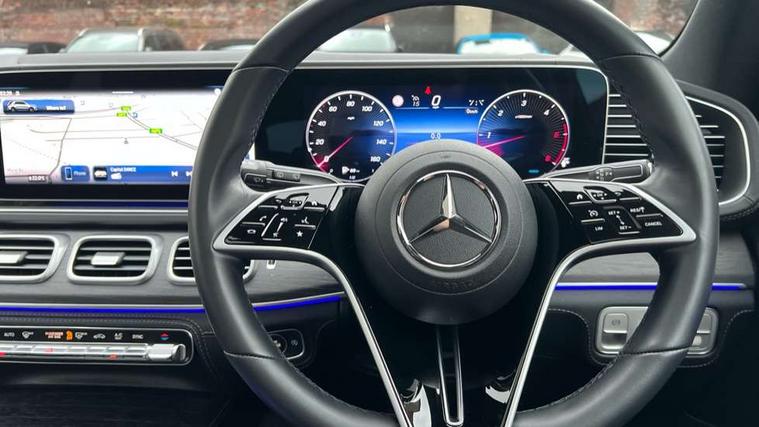12.3 High resolution wide screen cockpit display with choice of three display styles Classic, Progressive or Sport and unique ambient lighting setting, 360 degree camera, Active parking assist with PARKTRONIC, Attention assist, Brake wear warning display, Direct steer speed sensitive steering, DYNAMIC SELECT with a choice of driving modes (ECO, Comfort, Sport and Individual), Easy-pack tailgate - Powered opening/closing automatically, ECO start/stop function, Hard-disk navigation, Head up Display, MBUX voice control activated by keywords "Hey Mercedes", Mercedes Benz emergency call system, Mercedes me connect - vehicle set up and monitoring, Outside temperature display, Pre-installation for digital key transfer, Remote boot release, Service indicator (ASSYST), Status display for rear seat belts in instrument cluster, Traffic sign assist, Trip computer in multifunction display showing current fuel consumption, Wireless charging, Wireless smartphone integration including Apple CarPlay and Android auto, 85 litre fuel tank, 9G TRONIC 9 speed automatic transmission, Airmatic air suspension with adaptive damping system, Diesel particulate filter (DPF), Mild Hybrid starter alternator, Additional USB connection, Bluetooth interface for hands free and audio streaming, Burmester surround sound system, DAB digital radio tuner, Front and rear USB ports, Sound personalisation, Adaptive brake lights, Aluminium look, illuminated running boards with rubber studs, AMG bodystyling front and rear aprons, Auto headlights, Automatically dimming rear view mirror, Body colour door mirrors, Body coloured bumpers, Electric windows with one touch opening/closing and obstruction sensors, Electrically adjustable, heated, folding exterior mirrors, Exterior styling - front bumper, radiator grille and front air intakes, Heat insulating dark tinted glass, LED 3rd brake light, LED daytime running light signet, LED rear lights, Magic vision control, Multibeam LED headlights with adaptive highbeam assist plus, Panoramic sliding sunroof, Radio aerial integrated into rear window, Rain sensing windscreen wipers, Rear side wing doors, Rear wiper, Roof rail system, Top surround of side windows in polished aluminium, Transparent Bonnet, Visible twin pipe exhaust system integrated into bumper, Waistline in polished aluminium, 3 spoke round bottomed multifunction steering wheel in nappa leather, 3rd row of seats for 2 people, 4 way adjustable front head restraints and 2 way rear head restraints, 4 way lumbar support for driver and front passenger, 40:20:40 split folding rear seats, Automatic child seat recognition sensor, Electric height/reach adjustable steering column, Electrically adjustable front seats with memory function, Front centre armrest with stowage compartment and illuminated grab handles, Gearshift paddles on steering wheel, Glove compartment - lockable, air conditioned and illuminated, Heated front seats, Illuminated front door sill with Mercedes Benz lettering, Interior lighting - 64 colour Ambient lighting, Leather upholstery, Luggage compartment cover, Luxury AVANTGARDE Interior, Seat occupancy sensor for front passenger seat, Second row three seats, Single front passenger seat, Sunvisors with illuminated vanity mirrors, Thermotronic automatic 4 zone climate control, Touchpad, Velour floor mats, Exclusive Trim package - GLE, Keyless go comfort package - GLE, Active bonnet, Airbags - driver and front passenger, front sidebag, pelvis bag and window airbags, Anti-lock braking system (ABS), Black seat belts, Childproof locks manually operated for rear doors and electrically operated for rear power windows, Drivers knee airbag, Electronic parking brake, Electronic Stability Programme (ESP), ISOFIX child seat points with automatic child seat recognition, Perforated front brake discs and brake calipers with Mercedes-Benz lettering, Pre safe impulse side, Three point rear seat belts, Tyre pressure monitoring system, Warning triangle and first aid kit, Alarm system/interior protection/immobiliser, Central locking with interior switch, automatic locking and crash sensor with emergency opening function, Chrome surround in electric key, Guard 360 degree vehicle protection plus, Dashboard and door beltlines in ARTICO man made leather with contrast top stitching, Trim - Centre console, anthracite open pore oak wood trim, 21" AMG multi spoke light alloy wheels, TIREFIT with tyre inflation compressor,