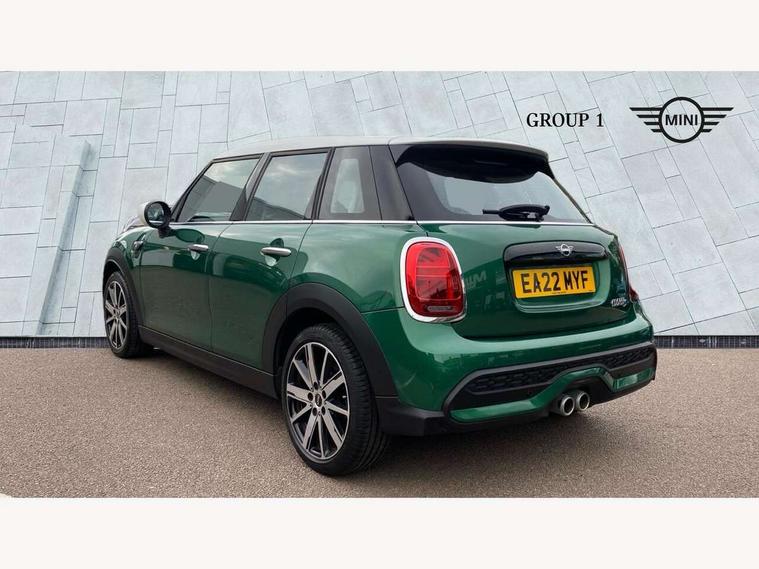 Apple CarPlay, Automatic start/stop function with brake energy recuperation, Compatible mobile phone bluetooth with audio streaming, Cruise control with brake assist, Electro-mechanical speed dependant steering assistance, Flexible car sharing preparation, Instrument cluster, MINI Driving Modes - centre toggle switch to control driving setting (sport, mid and green), Mini E-call, MINI TeleServices, On board computer, Service interval indicator, Double Vanos system, Fully variable valve control, Gear change indicator display, High precision injection, Performance Control, Steptronic transmission with double clutch, 8.8" touchscreen with LED ring, FM tuner and DAB digital radio, 3rd brake light, Automatic headlight activation switch, Bonnet scoop, Chrome fuel filler cap, Dynamic brake lights, Electric front+rear windows, Heated rear window, Heated windscreen washer jets, LED headlight with closed ring and daytime driving lights, Metal door sill strips with Cooper S imprint, Model logo Cooper S on right of tailgate, Radiator grille chrome border with honeycomb structure including S Badge, Rain sensor window wipers, Rear fog lights, Rear LED lights with union jack design, Rear side wing doors, Rear window wiper, Side scuttle panel with integrated indicator, Sun/heat protection glass, Two central exhaust tailpipes with chrome finisher, White indicator lenses, 12V Accessory socket in centre console, 3 seat bench in 2nd row, 4 lashing eyes in luggage compartment, 60/40 split folding rear seat, Carbon black colour line - Knee roll and door armrest, Chrome interior highlights, Cupholders, Front and rear head restraints, Front and rear isofix with front passenger airbag deactivation, Front and rear velour floor mats, Glove compartment, Height and length steering column adjustment, Interior lighting with 12 different colours across the dashboard, underneath door bezel with illuminated laser-engraved design on central display, Leatherette gearshift lever and handbrake gaiters, LED reading lights, vanity mirror lights, front foot well light and spotlight on front seats, Manual air conditioning, Mechanical seat adjustment - forward/back & backrest for front seats and driver seat height adjust, Multifunction steering wheel, Satellite grey headlining including grab handles and clothes hooks, Single front passenger seat, Sport leather steering wheel with speed limiter and audio/communication controls, Storage compartments in doors, Storage pocket on back of front seats, Sunvisors with vanity mirrors, 3 point seatbelts on all five seats, 6 Airbags - front, side, head and seat belt tensioners, Anti-lock braking system (ABS), Child locks on rear doors, DSC - Dynamic Stability Control, Front and rear disc brakes, Hill start assist, Two tone horn, Tyre pressure monitoring system, Alarm system with tilt sensor, monitoring doors, bonnet interior and tailgate, Electronic vehicle immobiliser, Start/stop toggle with keyless go, Piano black interior trim, Tool kit, Tyre repair kit,