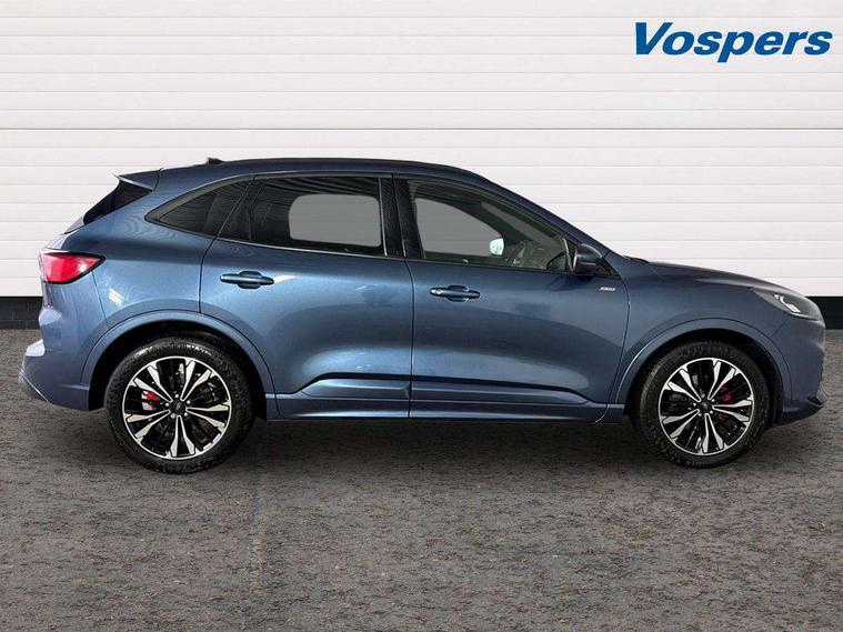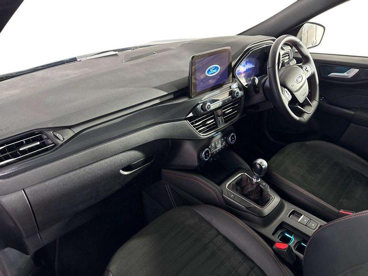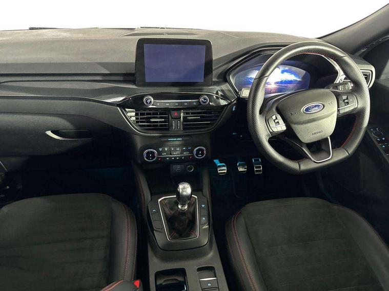 12.3" digital colour instrument cluster, Ford easy fuel, Ford SYNC 3 with 8" TFT LCD touchscreen, App Link, andriod auto/apple carPlay, emergency assistance and navigation with Ford pass connect, Front and rear parking sensors, Hands free power tailgate, Lane keeping aid with lane departure warning, Power assist steering, Rear view camera, Selectable drive modes, Service interval indicator, Sports suspension, Twist beam rear suspension, B&O premium audio system with 10 speakers and subwoofer, 2 USB ports, DAB radio/CD, Auto headlamps with high and low beam, Black roof rails, Body colour bumpers, Day/night rear view mirror, Front LED fog lamps, Large rear roof spoiler, LED daytime running lights, LED rear lights, Power folding, electrically adjustable and heated door mirrors with puddle lights, Power front/rear windows with global close, Power opening panoramic roof, Quickclear heated windscreen, Rain sensing wipers, Rear privacy glass, Rear side wing doors, Rear wiper, ST Line body styling kit with unique front and rear fascia and bumper, rear painted diffuser, front painted skid plates, dark mesh upper grille, ST Line front scuff plates, Third brake light, Twin exhausts, 2nd row sliding seats with 60:40 split, Alloy pedals, Centre console with electronic parking brake, Dark headlining and pillars, Electronic automatic temperature control (EATC), Flat bottomed leather steering wheel in sensico with red stitching, Front and rear head restraints, Heated passenger and driver seats, Heated rear seats, Heated steering wheel, Partial premium touch Sensico with black cloth inserts and red stitching, Rear centre head restraint, Single front passenger seat, Sports seats, ST Line front and rear floor mats, ST Line gear knob, 3x3 point rear seatbelts, Airbags - front driver/passenger, front and rear curtain, Drivers knee airbag, Electronic stability control (ESC) and ABS, Ford MyKey Gen 2 safety system, Manual child proof rear door locks, Post collision braking, Pre collision assist with autonomous emergency braking, Rear seat Occupancy alert, Red brake calipers, Tyre pressure monitoring system, Engine immobiliser, Keyless entry and Ford power start button (Keyless start), Locking wheel nuts, Remote powered central double locking doors, Thatcham category 1 alarm,