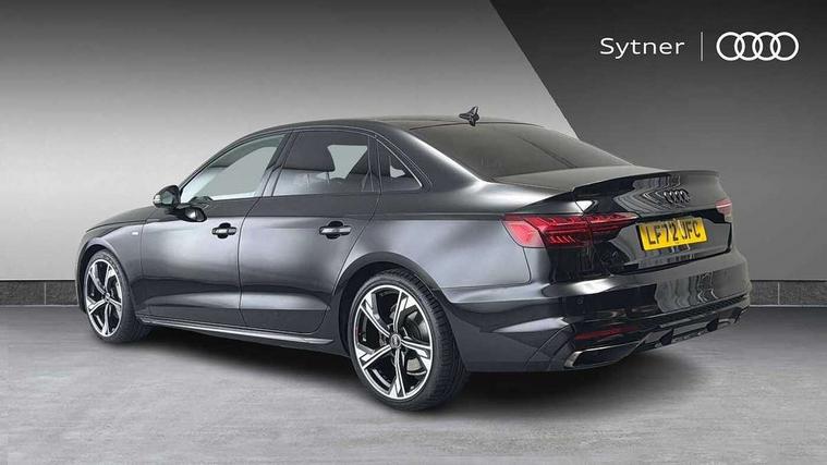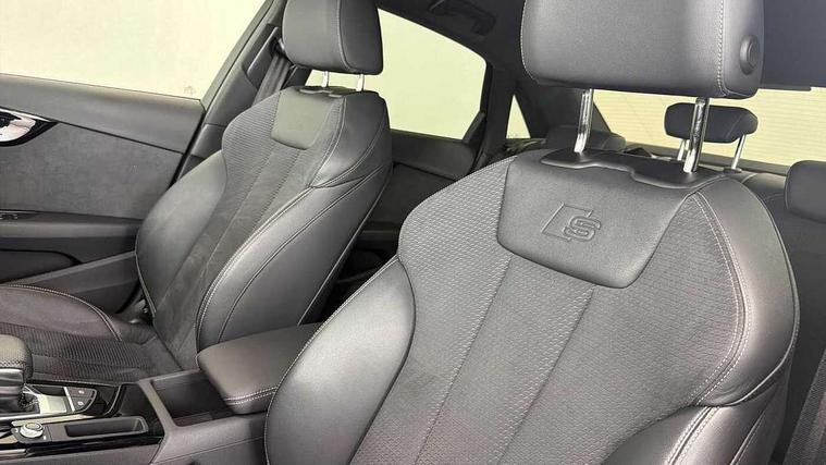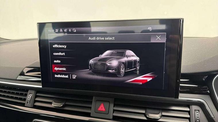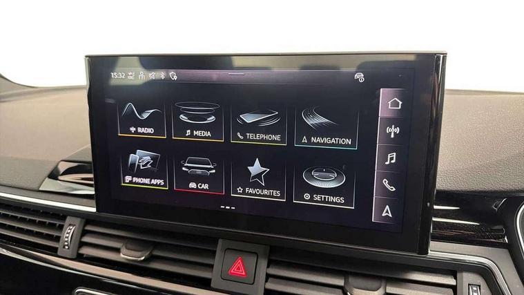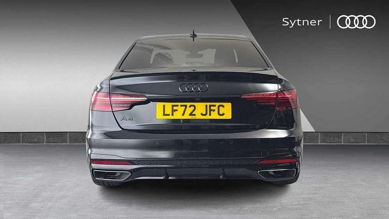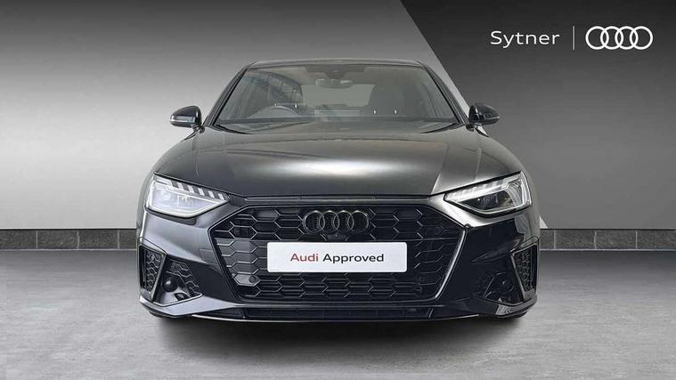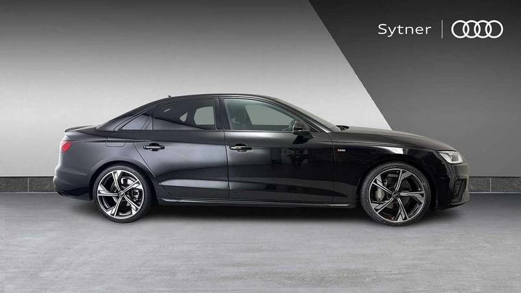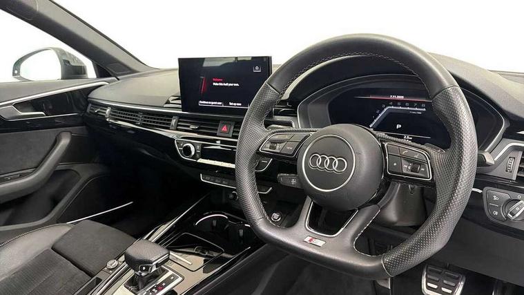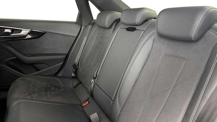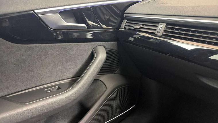 Audi connect safety and service (e-call), Audi connect with Amazon Alexa Integration, Audi drive select, Audi smartphone interface, Audi virtual cockpit, Automatic start-stop system with coasting functionality and efficiency programme, Bluetooth interface, Electric boot lid release, Electromechanical power steering, Email, calendar and text messages displayed via MMI, MMI Navigation plus with MMI touch includes 10.1" high resolution colour MMI display, 3D map, Voice control system, 54 litre fuel tank, Sports suspension lowered by 23mm, 2 USB charging ports, 8 passive loudspeakers, DAB digital radio reception, Audi beam uses LEDs to project the audi logo onto the ground as you exit your A4, Auto dimming rear view mirror, Black Audi rings and black badging (model name in black badging, no engine badging), Body colour door handles, Body colour front spoiler lip, Body colour side sill trim, Electrically folding auto dimming/adjustable/heated door mirrors with LED side indicators and kerb view function for passenger side, Exhaust tailpipes in high dark chrome, Front and rear bumpers with side skirts, Grained matt black side air inlets with matt aluminium silver inlay, High beam assistant, High gloss black B pillar trims and triangular rear door trim, LED headlights with LED rear lights + dynamic rear indicators + headlight adjustment and high beam, turning light + LED daytime running lights, LED third brake light, Privacy glass, Rain and light sensors, Rear boot, Rear diffuser in matt black with trim strip in matt aluminium silver, Rear side wing doors, S Line badges on the front wings, Variable intermittent front wash/wipe, Windscreen with acoustic glazing, 4 way electric lumbar support for driver and front passenger, 40/20/40 split folding 3 rear seat bench in 3 parts with rear centre armrest, Black cloth headlining, Black perforated leather gearknob, Contrast stitching on seats, steering wheel and gear lever gaiter, Deluxe 3 zone electronic climate control, Door sill trims with aluminium inlay, Front and rear head restraints, Front centre armrest, Heated front seats, Illuminated door sill trims with S logo, ISOFIX child seat mounting and top tether, Manual seat adjustment, Single front passenger seat, Stainless steel pedals and foot rest, Black styling pack - A4 Saloon, LED Interior light pack - A4/S4, 3 rear seatbelts, 6 airbags - Driver, front passenger, curtain and side windows, Electronic Stabilisation Control (ESC) including ABS, ASR and EDL, Hill hold assist, Multi collision brake assist, Pop-up bonnet for pedestrian protection, Pre sense city, Rear door child safety locks, Seatbelt monitoring, Warning triangle and first aid kit, Anti theft alarm, Anti theft wheel bolts, Central locking, Keyless Go, Piano black finish inlay, 19" 5 arm flag design Audi sport diamond cut alloy wheels in gloss anthracite black, Tool kit, Tyre repair kit,