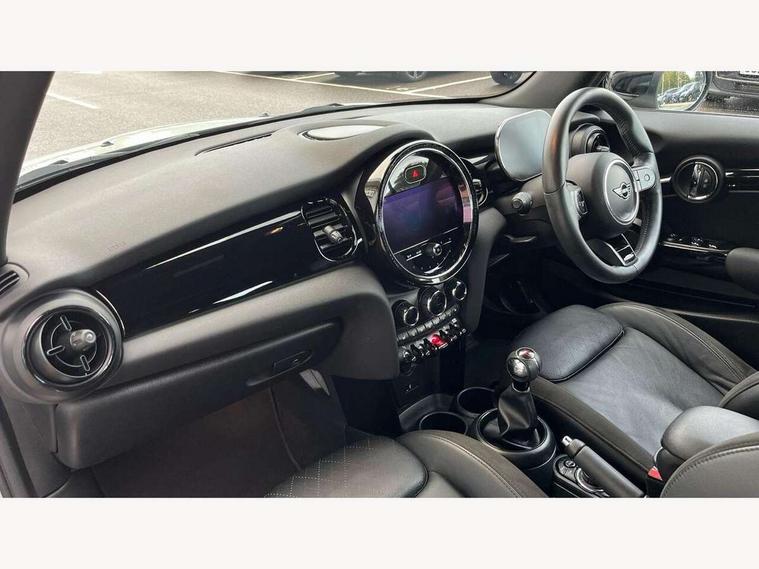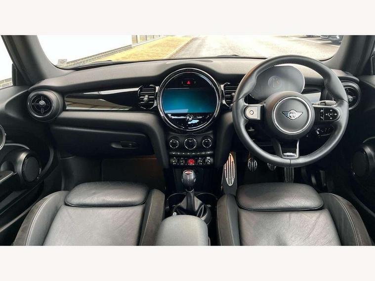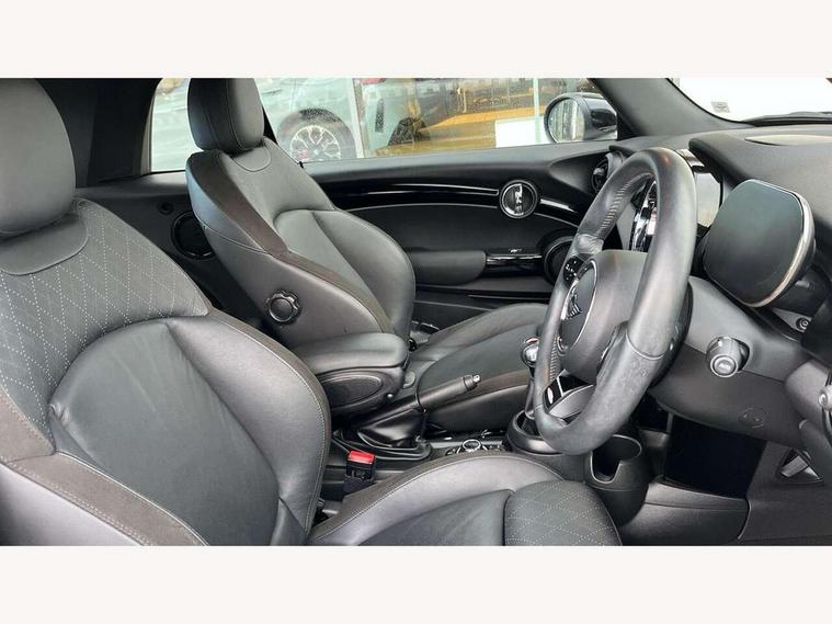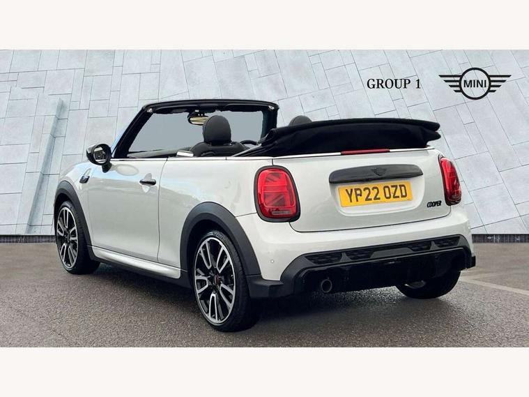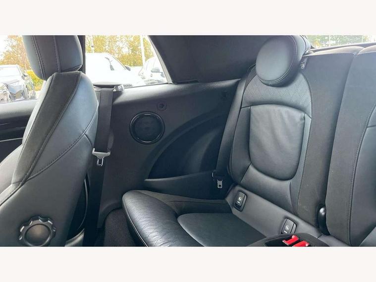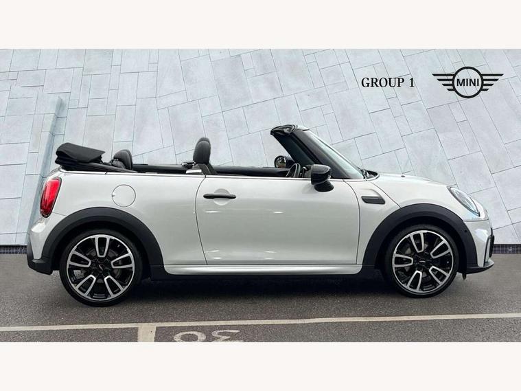 Apple CarPlay, Automatic start/stop function with brake energy recuperation, Compatible mobile phone bluetooth with audio streaming, Cruise control with brake assist, Electro-mechanical speed dependant steering assistance, Instrument cluster, MINI Driving Modes - centre toggle switch to control driving setting (sport, mid and green), Mini E-call, MINI TeleServices, On board computer, Rear park distance control, Service interval indicator, 6 Speed manual transmission including gear change indicator display, Adaptive suspension, Double Vanos system, Fully variable valve control, High precision injection, Performance Control, 8.8" touchscreen with LED ring, FM tuner and DAB digital radio, Automatic headlight activation switch, Body colour fuel filler cap, Chrome border high gloss black slats radiator grille, Dynamic brake lights, Electric windows, Fully electric black softtop with integrated sunroof functionality, Heated rear window, Heated windscreen washer jets, John Cooper Works - aerodynamic kit (front and rear apron, spoiler), front and rear sport bumpers and part-painted side sills with door sill finishers, LED headlight with closed ring and daytime driving lights, Left exhaust tailpipe with chrome finisher, Metal door sill strips with MINI imprint, Model logo Cooper on right of tailgate, Rain sensor window wipers, Rear boot, Rear fog lights, Rear LED lights with union jack design, Side scuttle panel with integrated indicator, Sun/heat protection glass, Third brake light, White indicator lenses, 12V Accessory socket in centre console, 2 seat bench in 2nd row, 4 lashing eyes in luggage compartment, 50/50 split folding rear seats, Chrome interior highlights, Colour line - Carbon black, Cupholders, Easy Load boot handles, Front and rear isofix with front passenger airbag deactivation, Glove compartment, Height and length steering column adjustment, Interior lighting with 12 different colours running across the dashboard, underneath door bezel illuminated laser engraved design on central display, John Cooper Works walk nappa leather steering wheel with grey seam and John Cooper Works badge on piano black lower steering wheel spoke, Leather gearshift lever and handbrake gaiters, Leatherette integrated headrest, adjustable thigh support with john cooper works logo, LED reading lights, vanity mirror lights, front foot well light and spotlight on front seats, Manual air conditioning, Mechanical seat adjustment, driver seat height adjust, forward/back and front seats backrest, Multifunction steering wheel, Rear head restraints, Single front passenger seat, Sports steering wheel, Storage compartments in doors, Sunvisors with vanity mirrors, Velour floor mats, Convertible pack with comfort access - Mini Convertible, Piano black exterior pack - Mini Convertible, 3 point seatbelts on all four seats, 6 Airbags - front, side and seat belt tensioners, Active rollover protection, Anti-lock braking system (ABS), DSC - Dynamic Stability Control, Front and rear disc brakes, Hill start assist, Single tone fanfare horn, Tyre pressure monitoring system, Alarm system with tilt sensor, monitoring doors, bonnet interior and tailgate, Electronic vehicle immobiliser, Keyless Go, Piano black interior trim, Tool kit,