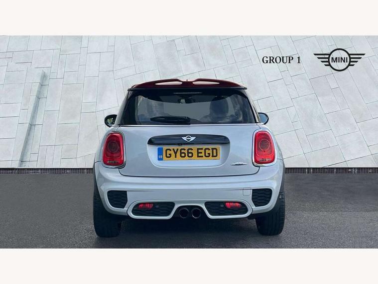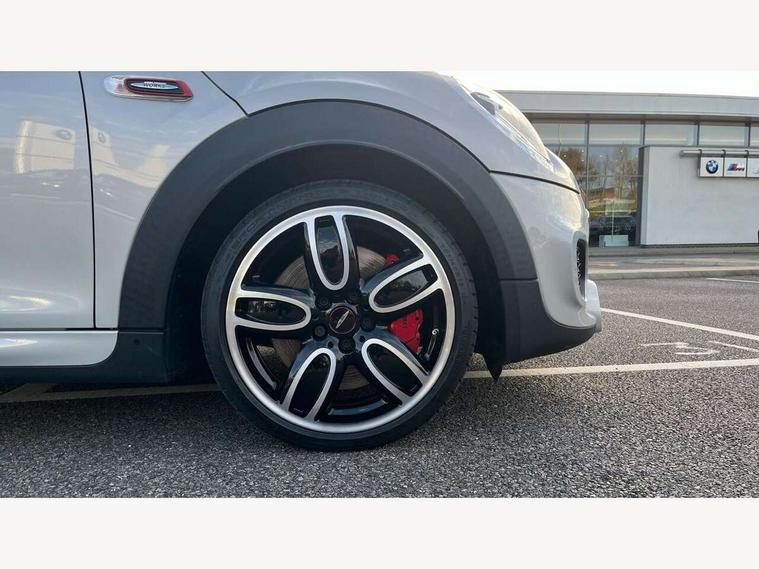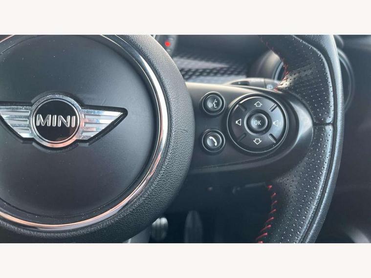 Acoustic seat-belt warning, Brake fluid level warning light, Brake pad wear indicator warning light, DTC - Dynamic traction control, Exterior temperature gauge, Intelligent emergency call, MINI Driving Modes - centre toggle switch to control driving setting (sport, mid and green), MINI TeleServices, Oil level indicator, On board computer, Push button starter, Service interval indicator, Servotronic PAS, Electronic differential lock, Performance Control, Auxiliary input socket, DAB digital radio module, 2 speed wipers+intermittent wipe, Anti dazzle mirror, Anti trapping/one touch open close front windows, Body colour scoop integrated into engine- compartment lid, Body coloured bumpers, Chili red grille bar, Chrome bezels around rear lights and headlights, Chrome door handles, Chrome plated fuel cap, Chrome plated trim on bottom edge of window, Chrome strip on lower grille, Electric front windows, Electrically adjustable door mirrors, Extended wheel arches, Follow me home headlights, Green tinted heat insulating glass, Heated door mirrors/heated windscreen washers, Heated rear window with auto timer, High gloss black tailgate, Honeycomb radiator grille, John Cooper Works roof spoiler, Metal look door sill finishers, Rear apron, Rear wiper, Side scuttles, Twin chromed exhaust pipes, White indicator lights, 2 rear head restraints, 4 boot load lashing points, 6 way manually adjustable passenger seat, 6-way manually adjustable driver's seat, Active carbon filter, Air recirculation system, Anthracite headlining, Auxiliary socket in centre console storage compartment, Centre console storage, Driver's seat height adjuster, Driver/passenger sunvisors, Easy entry seats, Front and rear cupholders, Front head restraints, Front interior light, Front passenger grab handle, Front seat backrest storage nets, Front sports seats, Gear/selector and handbrake in artificial leather, Internal chrome door handles, Isofix child seat preparation, Luggage compartment lighting, Multifunction steering wheel, Passenger seat height adjuster, Reach + rake adjustable steering column, Rear grab handles, Rear storage trays, Split folding rear seats, Storage compartments in doors, Toolkit in luggage compartment, Vanity mirrors, 3 point seatbelts, ABS/EBD, ASC+T, Brake calipers in red, Cornering brake control (CBC), Crash Sensor - activates hazard/interior lighting + unlocks doors, Driver and passenger airbags, Driver/front passenger side airbags, DSC - Dynamic Stability Control, Fuel cut off safety device, Head airbags, Hill start assist, Passenger airbag deactivation system, Seatbelt pretensioners, Tyre pressure warning, Ventilated front disc brakes, Drive away door locking, Locking wheel bolts, Remote central locking/doors+fuel cap+tailgate, Second remote key, Thatcham category 1 alarm + immobiliser,