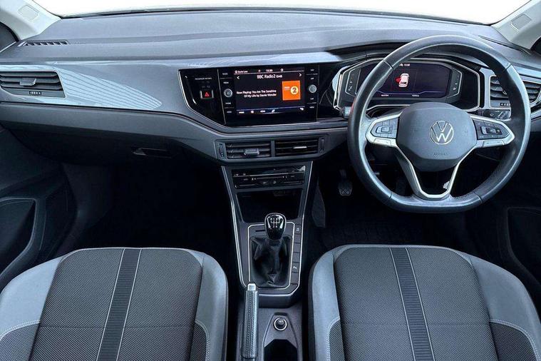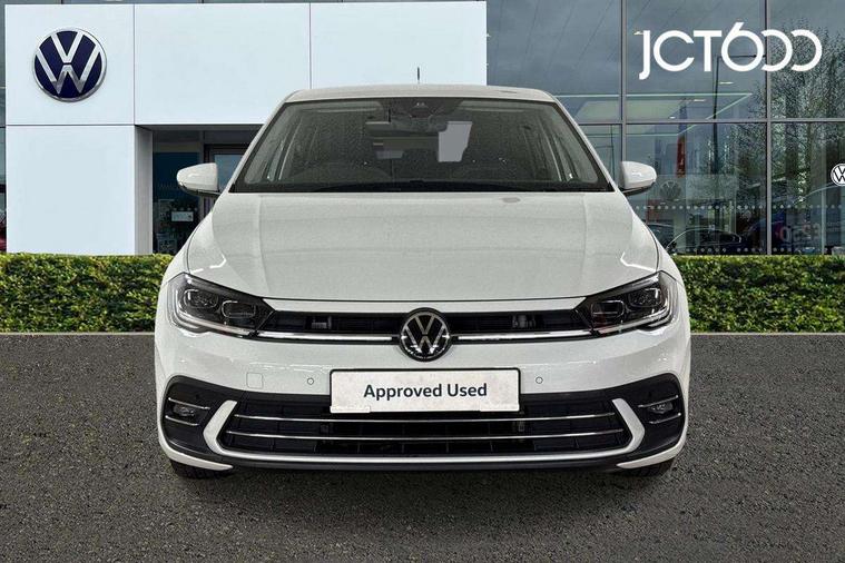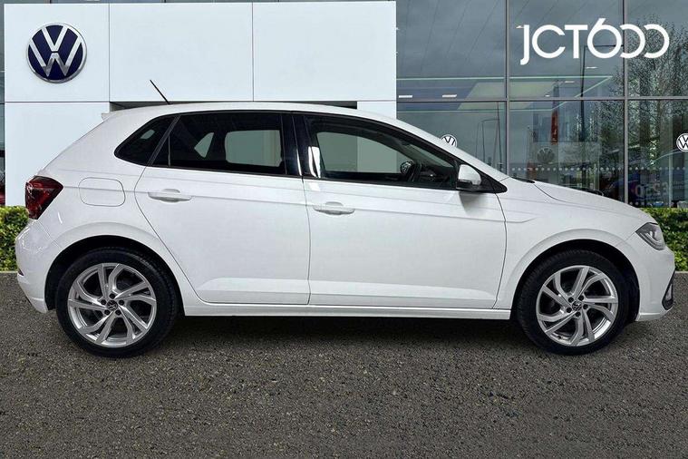 Adaptive cruise control without follow-to-stop and speed limiter, Bluetooth mobile phone interface, Digital Cockpit Pro with 10.25" Display, Driver alert system, Dynamic road sign display, Emergency call service, Power assisted speed sensitive steering, Preparation for We connect and We connect plus, Speedo and rev counter, electronic odometer, trip, service interval display and fuel gauge, Standard rear axle, Travel Assist - Lane keeping system and traffic jam assist, Travel assist including emergency assist, Trip computer, Warning signal and warning light for front and rear seatbelts not fastened, Washer fluid level indicator, Wireless app connect, Front wheel drive, Rear shock absorpion, Start-stop system with battery regeneration (recuperation - energy recovery during braking), DAB Digital radio, Diversity antenna for FM reception, Front and rear 6 speakers, Automatic dimming interior rear view mirror, Automatic headlights, Body colour door handles, Body coloured bumpers and radiator grille with chrome trims, Electric front windows, Heat insulating darkened glass in side and rear windows, Heat insulating glass windscreen, LED separate daytime running lights with coming/leaving home function, Power folding adjustable/heated exterior mirrors and front passenger exterior mirror lowering function, Rain sensor, Rear electric windows, Rear fog light, Rear side wing doors, Rear windscreen washer and wiper with interval delay, Third brake light, 12V power socket in centre console, 2 USB-C ports in the front, 2 USB-C charging sockets on the center console in the rear, 3 rear head restraints, 60/40 split folding rear seat and rear seat bench not split, Air care climatronic air conditoning system with active combination filter and 2-zone temperature control, Ambient lighting, Ceramique headliner, Chrome plated radiator grille inserts, air vent surrounds and light switch surrounds, Door and side trim panel, Driver and front passenger seat height adjustment, Driver/passenger sunvisors with illuminated vanity mirrors, Front + rear carpet mats, Front centre armrest, Front footwell illumination, Front seat backrest storage pockets, Front sports comfort seats, Handbrake lever handle in leather, Isofix child seat preparation easy-fit (for two outer rear seats, and front passenger seat) compatible with I-size, Leather trimmed gear knob, LED interior light with switch off delay and dimmer, 2 reading lights front and rear, Luggage compartment cover, Luggage compartment floor, Luggage compartment lighting, Lumbar adjustment for front seats, Multifunction steering wheel, Single front passenger seat, Standard pedal cluster, IQ LED matrix headlights pack - Polo, Light and vision pack - Polo, 3 point height adj front seatbelts + pretensioners, 3x3 point rear seatbelts, ABS, Driver and front passenger airbag with front passenger airbag deactivation, Drivers and front passengers safety optimised head restraints, ESC (Electronic stability control) + EDL (Electronic Differntial lock) and ASR (Traction control), Extended and predictive pedestrian/ cyclist protection, Front curtain and side airbags with center airbag, Front disc brakes, Hill hold control, Manual child lock in rear doors, Rear drum brakes, Single tone horn, Tyre pressure loss indicator, Alarm with interior protection, Anti-theft alarm system with interior monitoring, backup horn, and towing protection, Anti-theft wheel bolts, Electronic engine immobiliser, Chrome applications on rotary light, mirror adjustment, window regulator switches, outlet with frame in black, Deep iron gloss decorative inserts in dash and front door panels, Low rolling resistance tyres,