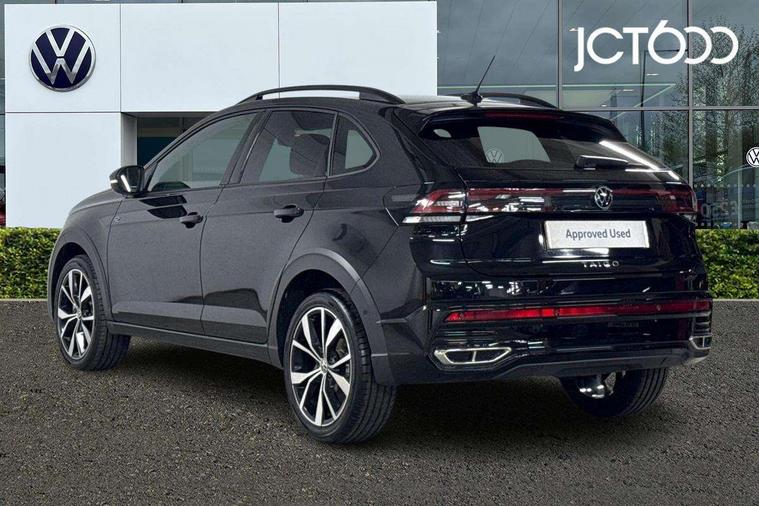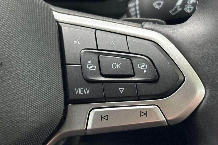 Adaptive cruise control, Advanced driver attention and drowsiness monitor, App-Connect including App-Connect Wireless, Digital cockpit pro - 10.25" high resolution TFT dash display screen with customizable menus and information, Driving profile selection, e-Call (emergency call), Power Steering, Travel assist including emergency assist, Washer fluid level indicator, Wireless Charging including Bluetooth, Start-stop system with battery regeneration (recuperation - energy recovery during braking), XDS electronic differential lock for improved traction and handling, Digital radio reception (DAB+), Diversity antenna for FM reception, WeConnect plus, Ambient lighting with logo projection, Aspherical driver's exterior mirror, Auto headlights, Body coloured bumpers, Bumpers in R-Line style, Electric windows, External USB type C socket and charging sockets, Front scuff plates with R-Line logo, LED rear combination lamp, LED third brake light, Left convex exterior mirror, Power folding adjustable/heated exterior mirrors and front passenger exterior mirror lowering function, Rear fog light on one side, reversing light on both sides, Rear side wing doors, Rear wash/wipe with intermittent wipe setting, 12V socket in centre console, 2 front reading lights, 3 rear head restraints, 3 seat bench in 2nd row, Air care climatronic air conditoning system with active combination filter and 2-zone temperature control, Black carpets, Black roof lining, Child seat anchor for child seat system i-Size, 2x top tether and child seat anchor in front on front passenger side, Chrome bezel for instrument cluster, vents, door handles + gear shift, Driver and front passenger seat height adjustment, Front + rear carpet mats, Front centre armrest, Front footwell illumination, Front sports comfort seats, Height and reach adjustable steering wheel, Interior ambient lighting and surround lighting, Karoso artvelours cloth upholstery, Leather trimmed gear knob, Leather wrapped multifunction steering wheel, Luggage compartment floor, Luggage compartment light, Lumbar support for driver's and front passengers seat, Seat covers in grey + titanium black, Single front passenger seat, Split folding backrest with centre armrest and unsplit rear seat bench, Stainless steel pedals, Storage compartment under front seats, Sun visors with illuminated vanity mirrors, Chrome Package - Taigo, Drivers assistance pack - Taigo, Light and Sight pack including High beam assist - Taigo, 2 x 3-point seatbelts/outer rear seats with ECE label, 3-point seat belts in front with pretensioner and height adjustment, 3-point seatbelt for centre rear seat, Adaptive driver and front passenger airbags with passenger airbag deactivation function, Driver and front passenger safety-optimised head restraints, Electronic stability control, Extended and predictive pedestrian/ cyclist protection, Front and rear disc brakes, Front curtain and side airbags with center airbag, Hill start assist, Manual rear child locks, Single tone horn, Tyre pressure loss indicator, Anti-theft alarm system with interior monitoring, backup horn, and towing protection, Grey anodised matte decorative inserts in dash and front door panels, Low rolling resistance tyres,