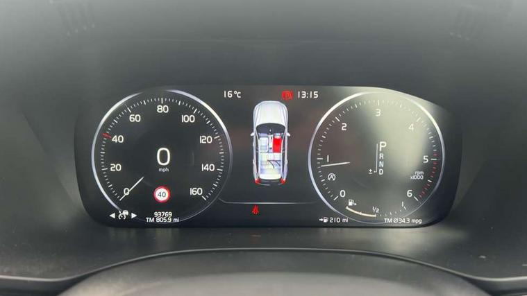 12.3" Active TFT crystal driver's instrument display, Adjustable steering wheel force, Bluetooth hands free telephone kit, Drive mode selector, Intelligent driver information system (IDIS), Lane keep assist with driver alert control, Oncoming Lane Mitigation, Power tailgate, Road Edge Detection, Service interval indicator, Speed limiter, Speed sensitive steering, Voice control system, Volvo on call, Active four-C chassis + four corner adaptive damper with electronic rear air suspension, Diesel particulate filter, DAB Digital radio, Active bending headlights, Adaptive brake lights, Aluminium tread plates, Auto dimming interior + exterior mirrors, Body colour door mirrors, Chrome front lower bumper, Chrome lower door mouldings, Chrome side window trim, Electric front+rear windows, Electrically adjustable and heated door mirrors, Front skid plate, Headlamp levelling, High gloss black grille with chrome inserts, Home safe and approach lighting, Illuminated side steps, LED front fog lights with static cornering light function, LED Headlights + Active high beam incorporating daytime running lights, Rain sensor windscreen wipers, Rear wiper, Roof spoiler, Silver roof rails, Tinted windscreen, Twin exhaust pipes, 12V socket in front + rear tunnel console, 3 spoke leather steering wheel with chrome trim, 4 aluminium high level anchor points, 60/40 split folding rear seat, A-pillar parking ticket holder, Ambient lighting, B Pillar ventilation, Bright metal luggage threshold, Electric drivers seat with memory + mirrors memory, Electric front cushion extensions and side support, Electric passenger seat, Floor mats, Front and rear door pockets, Front centre armrest with storage compartment and cupholders, Front footwell illumination, Front/rear reading lights, Glovebox illumination, Head restraints for all seats, Heated front seats, Height adjustable drivers seat with lumbar support, Height/reach adjustable steering column, Illuminated driver/passenger vanity mirrors, Illuminated front cupholder, Illuminated luggage compartment, Illuminated tailgate, Isofix attachments on outer rear seats, Load cover, Lockable load floor, Massage function for front seats, Memory function for passenger seat, Multicolour theatre lights, Nappa Leather Key Integrated Remote, Passenger seat adjustable for lumbar support, Perforated and ventilated nappa leather upholstery, Pollen filter, Rear armrest / integral cup holders / storage tray, Rear footwell illumination, Underfloor stowage compartment, WHIPS - Whiplash Protection System, Winter Pack - XC60 Auto, 5 three point seatbelts, ABS/EBD, Child proof door locks, City safety, Drivers knee airbag, DSTC-Dynamic Stability and Traction Control, Dual stage driver/passenger airbags, EBA, Electronic parking brake with auto hold, Fasten seatbelt reminder, First aid kit, Hill descent control, Hill start assist, Hydraulic Brake Assist (HBA), Inflatable curtain, Passenger airbag deactivate switch, Road sign information display, Roll over protection, RSC - Roll stability control, Run off Road Protection, Seatbelt pre-tensioners, SIPS airbags, Tyre pressure monitor, Warning triangle, Anti-theft alarm including immobiliser/volume sensor + level sensor, Fuel flap with deadlocking system, Key integrated remote control central locking, Keyless Start, Locking wheel nuts, Private locking,