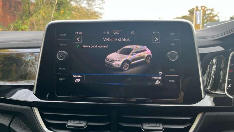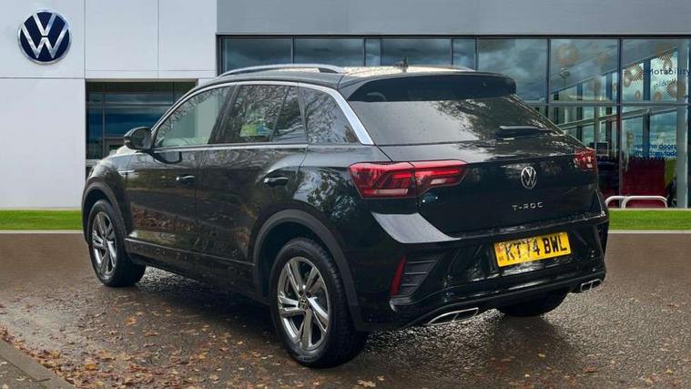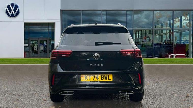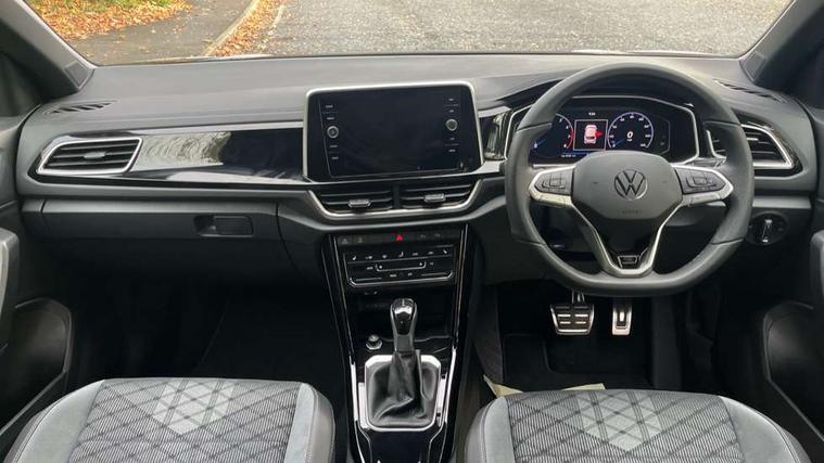 10.25" Digital cockpit pro, Advanced driver attention and drowsiness monitor, Emergency call service, Lane keeping system Lane Assist, Mobile phone interface, Modified key software - reduce switch off time for key status change to Long no motion, Online services, Park assist including front and rear parking sensors, Service interval indicator, Tailgate/trunk lid release from outside, Think blue trainer driver tips and journey analysis, Warning sound and light for front seatbelts unfastened, Wireless app connect, Battery regeneration during braking, Start/stop function with battery regeneration, DAB Digital radio, Diversity antenna for FM reception, Front and rear 6 speakers, Music playback - MP3, WMA and AAC files, Premium USB cable in choice of either Apple or Android smartphone compatibility, SD card slot, Simultaneous pairing of 2 compatible mobile devices, Title and cover art display, We Connect and We Connect Plus functionality, Auto dimming interior rear view mirror, Automatic hazard lights activation under emergency braking, Automatic headlight control with LED separate daytime running lights with coming/leaving home function, Body coloured exterior mirror housings and door handles, Electrically adjustable and heated door mirrors, Extended roof spoiler, Exterior mirrors aspherical on driver side, convex on front passenger side, External USB type C socket and charging sockets, Front windscreen wiper with intermittent wipe and 4 position delay, Heated rear window, LED 3rd brake light, LED rear combination lamps, LED rear number plate lights, Power windows with comfort operation and circuit breaker, Privacy glass for rear side windows and rear window, R-Line design body coloured bumpers, Rain sensor, Rear exhaust tailpipe, Rear fog light on one side and reversing lights on both sides, Rear side wing doors, Rear wash/wipe with intermittent wipe setting, Remote electrically foldable door mirrors, puddle lights and reverse activated passenger's door mirror, 12V power socket in centre console, 3 rear head restraints, 3 seat bench in 2nd row, 4 load lashing points in luggage compartment, Air care climatronic air conditoning system with active combination filter and 2-zone temperature control, Black roof lining, Chrome plated decorative trims, Chrome plated radiator grille inserts, air vent surrounds and light switch surrounds, Door and side trim panel with leatherette insert, Front + rear carpet mats, Front centre armrest, Front cupholders x 2, Front footwell illumination, Front reading light, Front scuff plates with R Line logo, Front seat back storage pockets, Glove compartment door with light, Instrument lighting, white adjustable panel illumination, Interior ambient lighting and surround lighting, Interior light delay, Isofix child seat preparation, Leather gearshift handle, Load-through provision with cup holder when folded down ('Unsplit rear seat bench, split folding backrest, with centre armrest), Luggage compartment lighting, Single front passenger seat, Stainless steel pedals, Storage compartment in left and right luggage area, Storage compartment in rear doors, Storage compartments in driver and front passenger doors, Sunvisors with illuminated vanity mirrors, Variable boot floor, height adjustable and removable, Driver assistance pack without proactive passenger protection - T-Roc, 3 point height adj front seatbelts + pretensioners, 3 point seatbelts in outer rear with ECE label, ABS, Child locks on rear doors, City emergency braking and pedestrian monitoring, Driver and front passenger airbag with front passenger airbag deactivation, Driver and front passenger safety-optimised head restraints, Drivers seatbelt reminder, Electronic parking brake, Electronic Stability Control (ESC) inc EDL (Electronic Differential Lock) and ASR (Traction Control), Front and rear passengers curtain airbag system including front side airbags, Hill start assist, Predictive pedestrian protection, Rear disc brakes, Two tone horn, Tyre pressure loss indicator, Volkswagen roadside assistance, Piano black decorative inserts in dashboard and front door trim panels, Trims for alloy wheels,