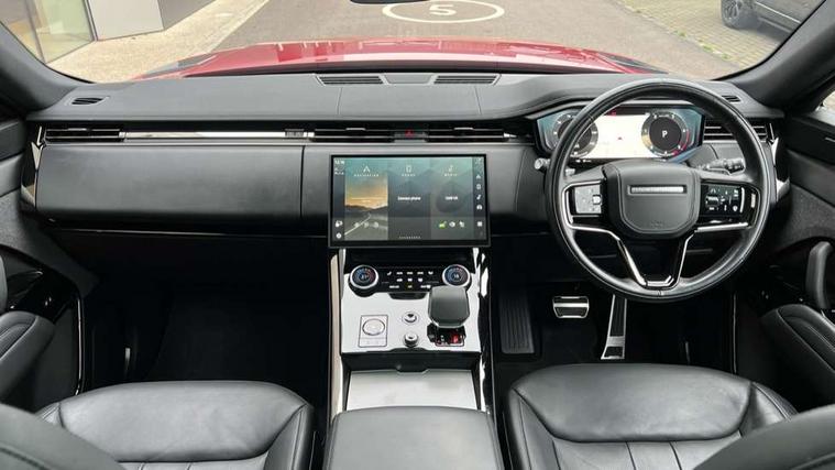 13.1" Touchscreen, 3D 360 degree surround camera with wade sensing, Adaptive cruise control with steering assist, Android Auto, Apple car play, Blind spot assist, Bluetooth connectivity streaming, Driver condition response, Eco mode, Electric power assisted steering (EPAS), Interactive Driver display instrument cluster, Lane departure warning system, Lane keep assist, Push button start, Rear collision monitor, Rear traffic monitor, Remote, Traffic sign recognition with adaptive speed limiter, Trip computer, Wireless device charging with phone signal booster, 8 speed automatic transmission, Adaptive dynamics, All wheel drive system, Automatic access height, Terrain Response 2, DAB Radio (Digital Audio Broadcasting), Incontrol protect - SOS emergency call with automatic collision detection, optimised assistance call and Incontrol remote app essential, Pivi pro connected, USB/aux input socket, Adaptive brake lights, Automatic headlight levelling, Automatic headlights, Centre high mounted stop light, Electric heated/power fold memory door mirrors with approach lights and auto dimming driver side, Electric windows with one touch open/close and anti trap, Flush deployable exterior door handles, Follow me home lighting, Front and rear recovery eyes, Headlight power wash, Heated rear window, Heated washer jets, Heated windscreen, LED tail lights, No badges, Rain sensing windscreen wipers, Rear animated directional indicators, Rear fog lights, Rear side wing doors, Rear wash/wipe, Remote window closing, Side repeater indicators in mirror, Trailer stability assist, Winter wiper park position, 3 seat bench in 2nd row, 60:40 seats with power recline and loadthrough, Air quality sensor, Auto air recirculation, Bright metal foot pedals, Centre console with armrest, Customer configurable single point entry, Driver's footrest, Easy boot loading, Ebony console door armrests and seatbelts, Electric adjustable steering column, Front and rear cupholders, Front door storage space, Front head restraints, Front map lights, Front seat back map pockets, Front stowage pocket, Front/rear passenger grab handles, Gearshift paddles, Heated steering wheel, Isofix child seat preparation, Loadspace cover, Loadspace Hook, Loadspace light, Loadspace mounting provisions, Lockable glovebox, Luggage tie-downs in loadspace, Multifunction steering wheel, Pollen filter, Power socket, Rear centre armrest, Rear head restraints, Rear ISOFIX, Single front passenger seat, Three 12V accessory power outlets, Upper secondary glovebox, Online pack with data plan - Range Rover Sport, 3 point seatbelts on all seats, Anti-lock braking system (ABS), Brake pre-fill technology, Configurable autolock, Cornering brake control (CBC), DSC - Dynamic Stability Control, EBD - Electronic brakeforce distribution, Electric parking brake, Electronic traction control, Emergency braking, Front seatbelt pretensioners, Front side airbags, Height adjustable front seatbelts, Hill descent control, Hill launch assist, Low traction launch, Occupant protection assist, Passenger seat occupant detector with front airbags, Power operated child locks, Roll stability control, Seatbelt warning, TPMS (Tyre pressure monitoring system), Immobiliser, Intrusion sensor, Keyless entry, Locking wheel nuts, Perimetric and volumetric anti theft alarm, Remote locking, Moonlight noble chrome interior finishers,