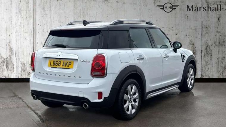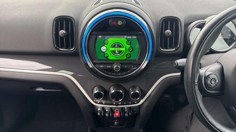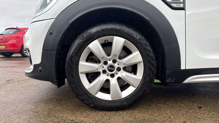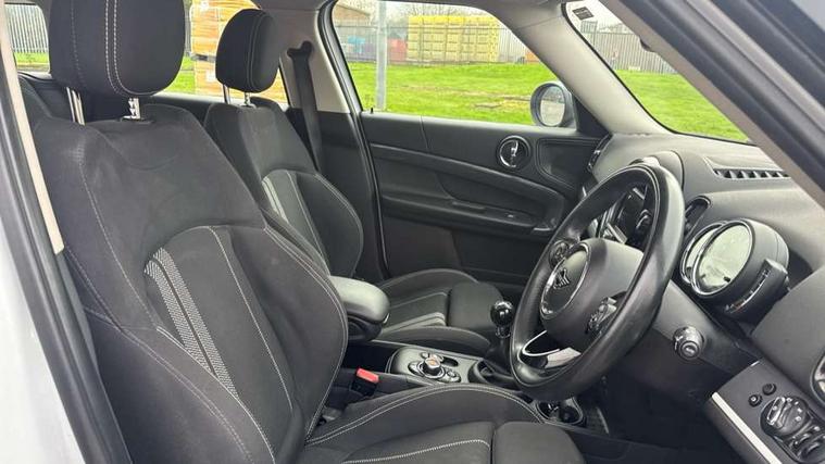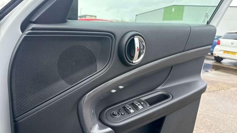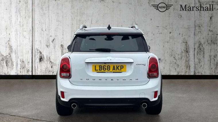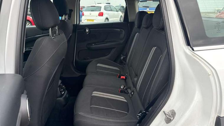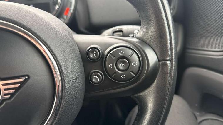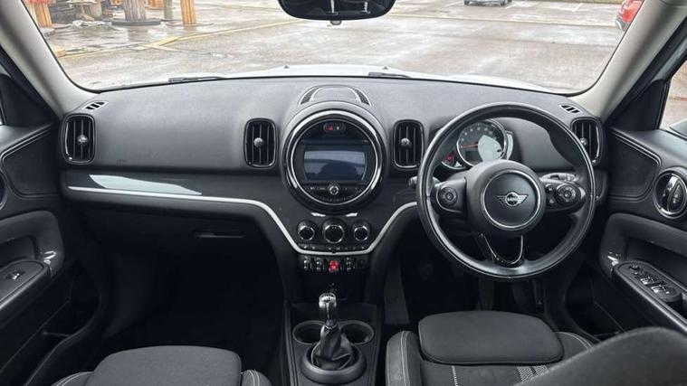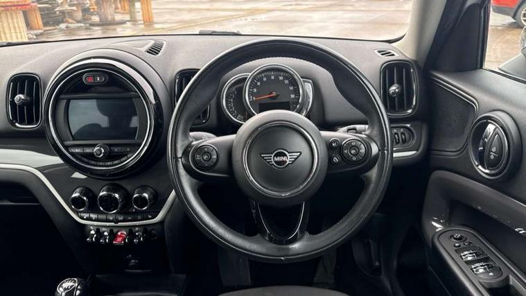 Active Guard incl speed limiting and lane departure functions with auto steering, and front collision warning with brake intervention, Automatic start/stop function with brake energy recuperation, Electro-mechanical speed dependant steering assistance, Instrument cluster, Mini E-call, MINI TeleServices, On board computer, Rear parking distance control, Double Vanos system, Fully variable valve control, High precision injection, Performance Control, FM tuner and DAB digital radio, Bonnet scoop, Chrome border honeycomb structure radiator grille with S badge, Chrome fuel filler cap, Day time driving lights, Dynamic brake lights, Electric windows, Heated rear window, Heated windscreen washer jets, Metal door sill strips with Cooper S imprint, Model logo, Model logo on Tailgate, Rain sensor with auto headlights, Rear fog lights, Rear window wiper, Side scuttle panel with integrated indicator, Split rear doors, Sun/heat protection glass, Twin exhaust tailpipe, White indicator lenses, 12V Accessory socket in centre console, 360L luggage compartment capacity, 4 lashing eyes in luggage compartment, 40:20:40 split folding rear seats, Chrome interior highlights, Colour line - Carbon black, Cupholders, English handbook, Glove compartment, Headliner with grab handles and clothes hooks, Height and length steering column adjustment, Isofix rear child seat preparation, Leather gearshift lever and handbrake gaiters, LED reading lights, vanity mirror lights, front foot well light and spotlight on front seats, Manual air conditioning, Mechanical seat adjustment, driver seat height adjust, forward/back and front seats backrest, Multifunction steering wheel, Passenger seat height adjuster, Storage compartments in doors, Sunvisors with vanity mirrors, Excitement pack - Countryman, Navigation pack - Countryman, 2 tone horn, 3 point seatbelts on all seats, 6 Airbags - front, side, head and seat belt tensioners, Anti-lock braking system (ABS), DSC - Dynamic Stability Control, Electronic handbrake, Front and rear disc brakes, Hill start assist, Tyre pressure monitoring system, Alarm system with tilt sensor, monitoring doors, bonnet interior and tailgate, Auto drive away locking, Deadlocking function, Electronic vehicle immobiliser, Locking wheel bolts, Start/stop toggle with keyless go, Tool kit,