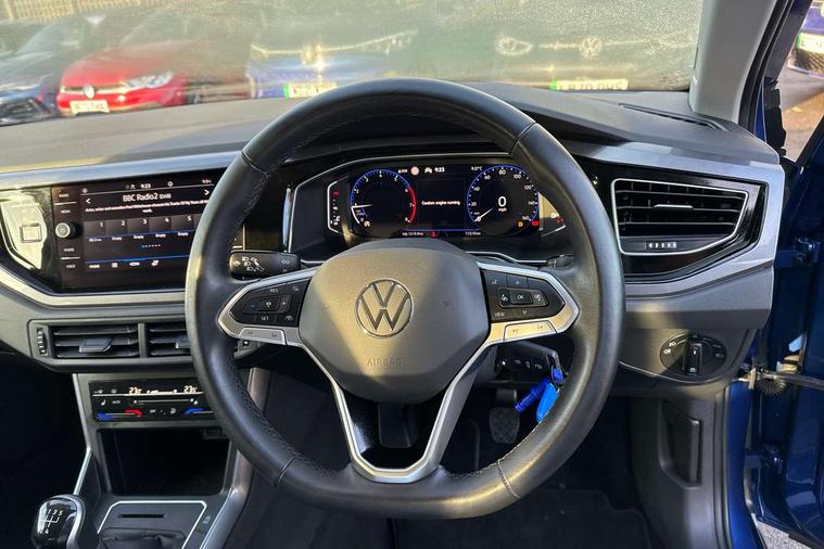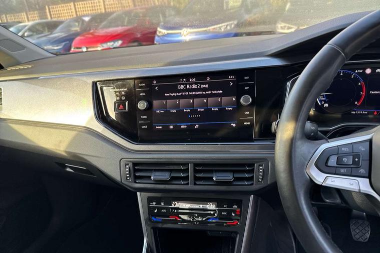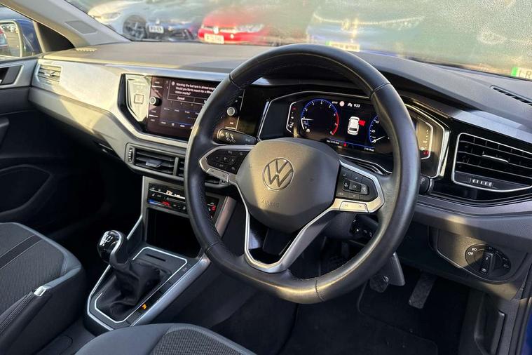Adaptive cruise control without follow-to-stop and speed limiter, Bluetooth mobile phone interface, Digital Cockpit Pro with 10.25" Display, Driver alert system, Dynamic road sign display, Emergency call service, Power assisted speed sensitive steering, Preparation for We connect and We connect plus, Speedo and rev counter, electronic odometer, trip, service interval display and fuel gauge, Standard rear axle, Travel Assist - Lane keeping system and traffic jam assist, Travel assist including emergency assist, Trip computer, Warning signal and warning light for front and rear seatbelts not fastened, Washer fluid level indicator, Wireless app connect, Front wheel drive, Rear shock absorpion, Start-stop system with battery regeneration (recuperation - energy recovery during braking), DAB Digital radio, Diversity antenna for FM reception, Front and rear 6 speakers, Automatic dimming interior rear view mirror, Automatic headlights, Body colour door handles, Body coloured bumpers and radiator grille with chrome trims, Electric front windows, Heat insulating darkened glass in side and rear windows, Heat insulating glass windscreen, LED separate daytime running lights with coming/leaving home function, Power folding adjustable/heated exterior mirrors and front passenger exterior mirror lowering function, Rain sensor, Rear electric windows, Rear fog light, Rear side wing doors, Rear windscreen washer and wiper with interval delay, Third brake light, 12V power socket in centre console, 2 USB-C ports in the front, 2 USB-C charging sockets on the center console in the rear, 3 rear head restraints, 60/40 split folding rear seat and rear seat bench not split, Air care climatronic air conditoning system with active combination filter and 2-zone temperature control, Ambient lighting, Ceramique headliner, Chrome plated radiator grille inserts, air vent surrounds and light switch surrounds, Door and side trim panel, Driver and front passenger seat height adjustment, Driver/passenger sunvisors with illuminated vanity mirrors, Front + rear carpet mats, Front centre armrest, Front footwell illumination, Front seat backrest storage pockets, Front sports comfort seats, Handbrake lever handle in leather, Isofix child seat preparation easy-fit (for two outer rear seats, and front passenger seat) compatible with I-size, Leather trimmed gear knob, LED interior light with switch off delay and dimmer, 2 reading lights front and rear, Luggage compartment cover, Luggage compartment floor, Luggage compartment lighting, Lumbar adjustment for front seats, Multifunction steering wheel, Single front passenger seat, Standard pedal cluster, IQ LED matrix headlights pack - Polo, Light and vision pack - Polo, 3 point height adj front seatbelts + pretensioners, 3x3 point rear seatbelts, ABS, Driver and front passenger airbag with front passenger airbag deactivation, Drivers and front passengers safety optimised head restraints, ESC (Electronic stability control) + EDL (Electronic Differntial lock) and ASR (Traction control), Extended and predictive pedestrian/ cyclist protection, Front curtain and side airbags with center airbag, Front disc brakes, Hill hold control, Manual child lock in rear doors, Rear drum brakes, Single tone horn, Tyre pressure loss indicator, Alarm with interior protection, Anti-theft alarm system with interior monitoring, backup horn, and towing protection, Anti-theft wheel bolts, Electronic engine immobiliser, Chrome applications on rotary light, mirror adjustment, window regulator switches, outlet with frame in black, Deep iron gloss decorative inserts in dash and front door panels, Low rolling resistance tyres,