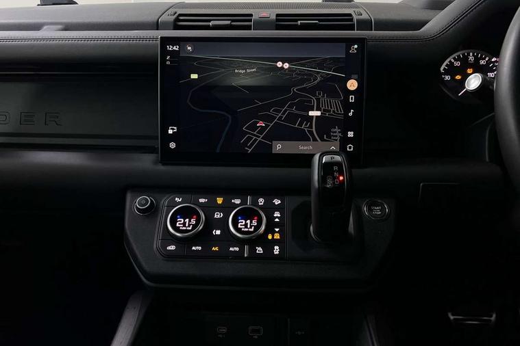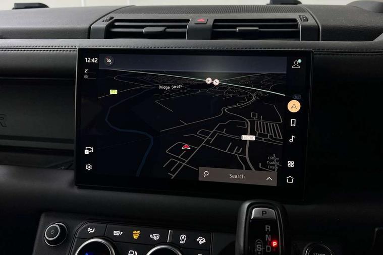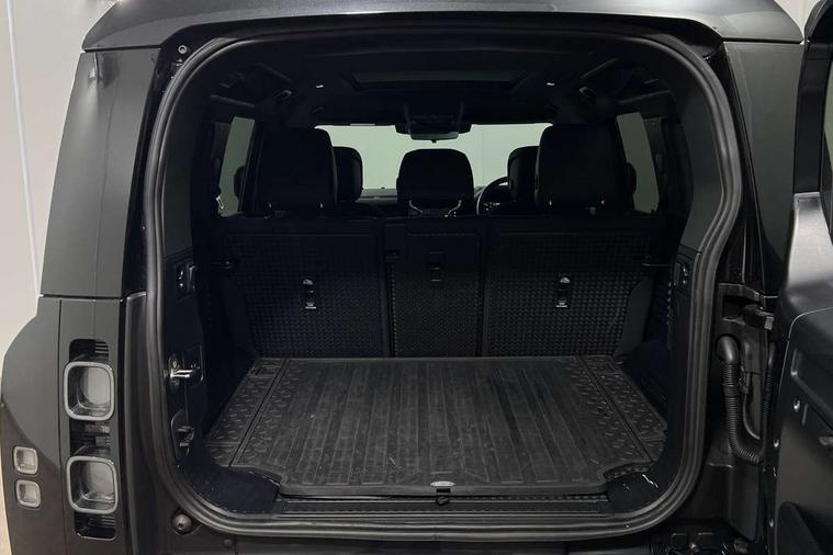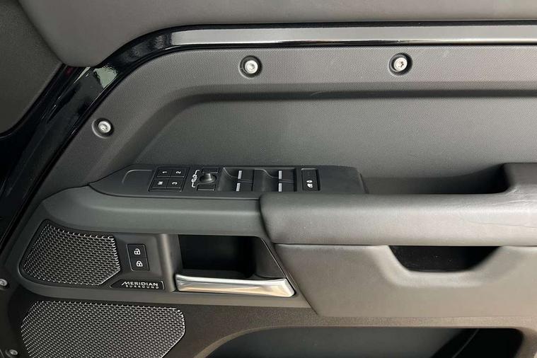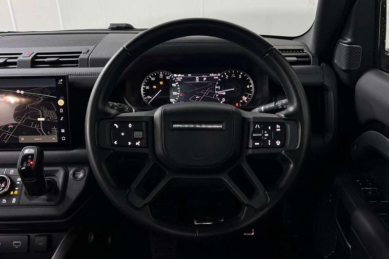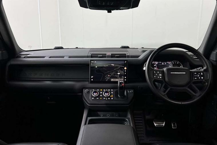 11.4" touchscreen, 360 degree parking aid, 3D Surround Camera with 360 View, 180 Rear View, Front Traffic Detection, Forward Vehicle Guidance, Tow Hitch Assist and clear sight Ground View, Adaptive cruise control, Android Auto, Apple CarPlay, Assisted tailgate with soft close, Blind spot assist, Bluetooth system, Brake pad wear indicator, Clear exit monitor, Connected navigation pro, Driver condition monitor, Electric power assisted steering (EPAS), Head up Display, Lane keep assist, Push button start, Rear collision monitor, Rear traffic monitor, Traffic sign recognition with adaptive speed limiter, Trip computer, Wade Sensing, 8 speed automatic transmission, Adaptive dynamics, All terrain progress control, All wheel drive system, Configurable Terrain Response, Electronic active differential with brake torque vectoring, Electronic air suspension, Terrain Response 2, Twin speed transfer box, DAB Radio (Digital Audio Broadcasting), Meridian 700w surround sound audio system with 15 speakers, Pivi pro connected, Automatic headlight levelling, Automatic headlights, Centre high mounted stop light, ClearSight interior rear view mirror, Darkened LED tail lights, Electric heated/power fold door mirrors with approach lights and auto dimming driver side, Electric windows with one touch open/close and anti-trap, Follow me home lighting, Front fog lights, Heated rear window with timer, Heated windscreen, Illuminated metal treadplates with brand name script, Matrix LED headlights with signature DRL, Puddle lights, Rain sensing windscreen wipers, Rear fog lights, Rear side wing doors, Rear wiper, Side hinged tailgate, Trailer stability assist, X badge, 12V power socket in loadspace, 14 way heated and cooled electric adjustable memory front seats with 4 way manual headrests, 3 seat bench in 2nd row, 40:20:40 folding, heated rear seats with centre armrest, Alpine lights, Bright metal pedals, Domestic plug socket, Durable rubber cabin flooring, Durable rubber loadspace flooring, Ebony morzine headlining, Electric reach + rake adjustable steering column, Extended leather upgrade, Footwell lights, Front passenger isofix child seat attachment, Heated steering wheel, Loadspace cover, Loadspace Hook, Multifunction steering wheel, Overhead stowage for sunglasses, Premium cabin lighting, Rear headrests, Rear ISOFIX, Rear reading lights, Single front passenger seat, Standard seat configuration, Storage glovebox, Sunvisors with illuminated vanity mirrors, Twin front cupholders with cover, Online pack with data plan - Defender, 5 x 3 point seatbelts, ABS, Brake hold function, Cornering brake control (CBC), Cross car beam in dark grey powder coat brushed finish, Customer configurable autolock, DSC - Dynamic Stability Control, EBD - Electronic brakeforce distribution, Electric parking brake (EPB), Emergency brake assist, Emergency braking, ESP + traction control, Front airbags with passenger seat occupant detector, HDC - Hill descent control, Hill launch assist, Low traction launch, Power operated child locks, Remote for (e-Call, Optimised assistance call, InControl app, Climate, beep and flash and door), RSC - Roll stability control, Seat belt reminder, TPMS (Tyre pressure monitoring system), Alarm, Immobiliser, Intrusion sensor, Keyless entry, Locking wheel nuts,