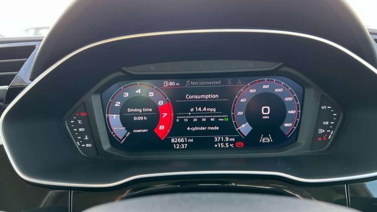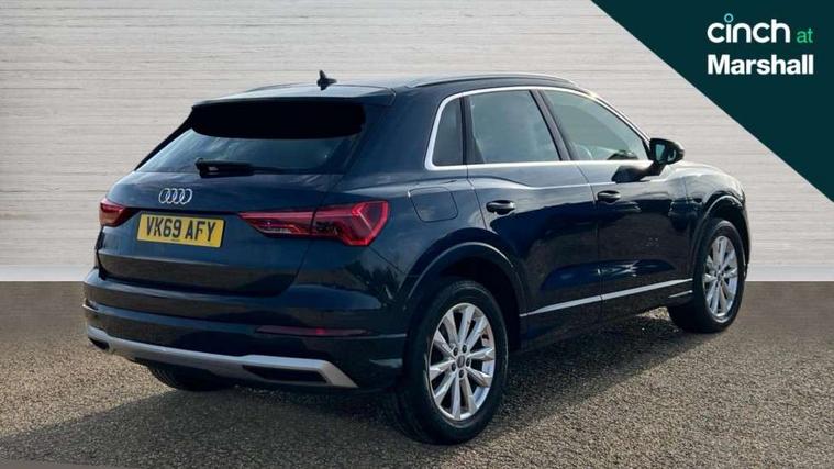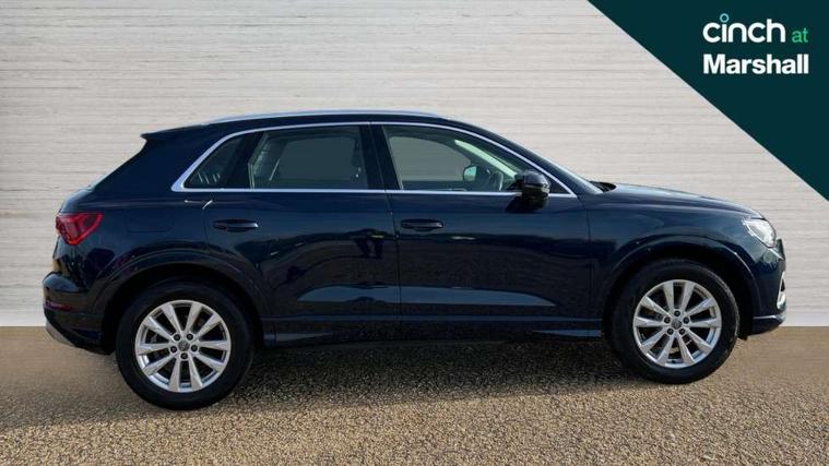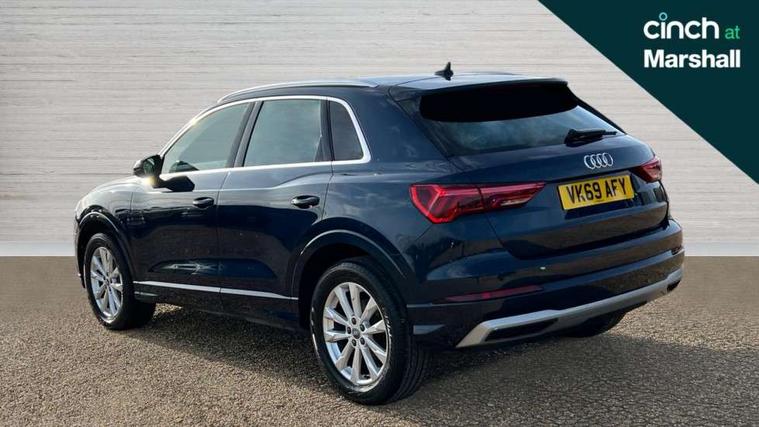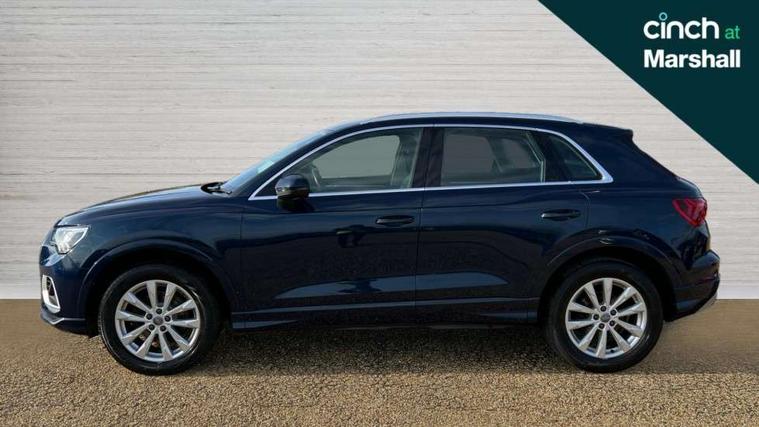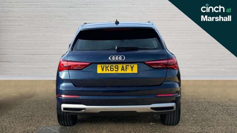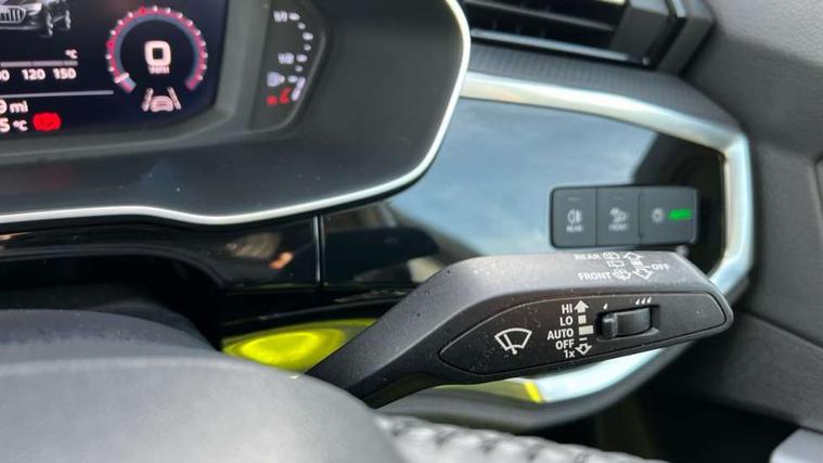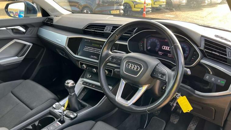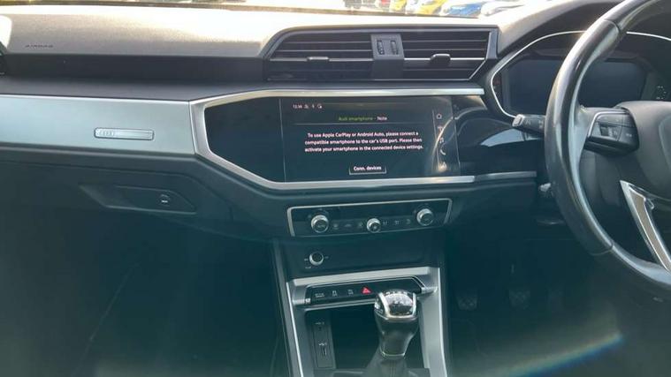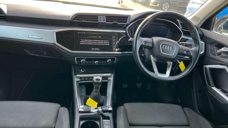 Audi connect safety and service (e-call), Audi drive select, Audi lane departure warning, Audi side assist, Audi smartphone interface, Audi Virtual Cockpit - 10.25" display, Bluetooth interface, Camera based traffic sign recognition, Cruise control + speed limiter, MMI navigation plus with MMI touch, Power opening/closing tailgate, Progressive steering, Rear parking sensors, Service interval indicator, Stop/start system, Voice control system, Standard suspension, 1 x USB type C and 1 USB type A charging points, 6 speakers, DAB digital radio module, Acoustic windscreen, Aluminium roof rails, Aluminium window trim, Auto dimming rear view mirror, Body coloured bumpers, Electrically adjustable and heated door mirrors with integrated LED side indicators, Front and rear electric windows, Front fog lights, Front side air inlets in matt selenite silver, Front spoiler in matt selenite silver, Grille vertical bars in aluminium silver/Matt, High gloss black finish B and C pillars, LED headlights with LED daytime running lights and dynamic rear indicator, LED rear lights, Rain and light sensors, Rear diffuser strip in selenite silver, Titanium black radiator grille, 12V socket in rear centre console, 40:20:40 split folding rear bench seat, Adjustable rear seat bench/backrest, Aluminium door sill trims, Dual zone climate control, Front and rear headrests, Front and rear roof module including reading lights, Front and rear velour floor mats, Front centre armrest with storage compartment and angle adjustment, Glove compartment lighting, Height and reach adjustable steering wheel, ISOFIX child seat mounting and Top Tether with front passenger airbag deactivation, Luggage compartment light, Lunar silver cloth headlining, Manual front seats with height adjustment, Stainless steel luggage compartment sill finisher, Non smoking pack - Q3, 3x3 point rear seatbelts, 6 airbags - Driver, front passenger, curtain and side windows, Audi pre-sense front with pedestrain and cyclist recognition, Electrically operated child locks on rear doors, Electromechanical parking brake, Electronic stabilisation control including ABS, ASR and EDL, Hill descent control, Hill hold assist, Pre sense basic, Seatbelt monitoring, Tyre pressure warning, Warning triangle and first aid kit, Anti theft alarm, Anti theft wheel bolts, Remote central locking, MMI touch colour display in gloss black with aluminium surround,