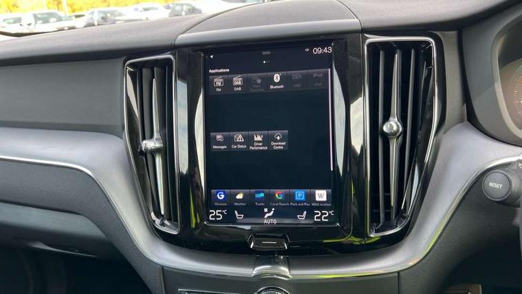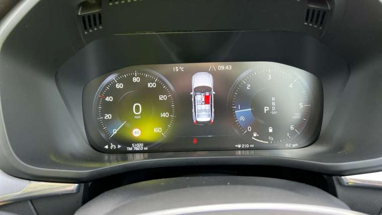12.3" Active TFT crystal driver's instrument display, 9" Touch screen, Adjustable steering wheel force, Bluetooth hands free telephone kit, Drive mode selector, Front collision warning with full auto brake, Intelligent driver information system (IDIS), Lane keep assist with driver alert control, Oncoming Lane Mitigation, Power tailgate, Remote fuel flap release, Road Edge Detection, Service interval indicator, Speed limiter, Speed sensitive steering, Trip computer, Voice control system, Volvo on call, Diesel particulate filter, DAB Digital radio, Steering wheel mounted remote controls, Adaptive brake lights with high level LED brake lights, Aluminium tread plates, Auto dimming interior + exterior mirrors, Body colour bumpers, Body colour door mirrors, Electric folding door mirrors, Electric front+rear windows, Electrically adjustable and heated door mirrors, Headlamp levelling, Home safe and approach lighting, Illuminated side steps, LED Headlights + Active high beam incorporating daytime running lights, Piano black front grille with chrome surround, Rain sensor with automatic windscreen wiper activation, Rear wiper, Roof antenna, Roof spoiler, Silver roof rails, Tinted windscreen, Twin exhaust tailpipes with chrome finishers, Visible VIN plate, 12V power point in luggage area, 3 spoke leather steering wheel with chrome trim, 60/40 split folding rear seat, A-pillar parking ticket holder, B Pillar ventilation, Bright metal luggage threshold, Centre armrest storage illumination, Centre console cupholders and storage, Floor mats, Front footwell illumination, Front reading lights, Glovebox illumination, Head restraints for all seats, Heated front seats, Height/reach adjustable steering column, Illuminated driver/passenger vanity mirrors, Illuminated luggage compartment, Leather upholstery, Load cover, Lockable glovebox, Pollen filter, Rear armrest / integral cup holders / storage tray, Rear seat concealed storage, Theatre dimming interior lights, Underfloor stowage compartment, Vanity mirror with ticket holder, WHIPS - Whiplash Protection System, 5 three point seatbelts, ABS/EBD, City safety with steering support with Pedestrian + cyclist + large animal detection + front collision warning with full auto brake, Curtain airbags, Drivers knee airbag, DSTC-Dynamic Stability and Traction Control, Dual stage driver/passenger airbags, EBA, Electronic parking brake with auto hold, Fasten seatbelt reminder, First aid kit, Hill descent control, Hill start assist, Hydraulic Brake Assist (HBA), Passenger airbag deactivate switch, Road sign information display, Run off Road Protection, Seatbelt pre-tensioners, SIPS airbags, Tyre pressure monitor, Warning triangle, Anti-theft alarm including immobiliser/volume sensor + level sensor, Key integrated remote control central locking + fuel flap with deadlocking system and auto open/close power windows, Locking wheel nuts, Private locking for tailgate, Iron ore inlays,