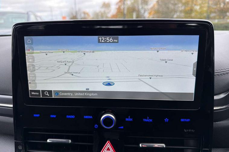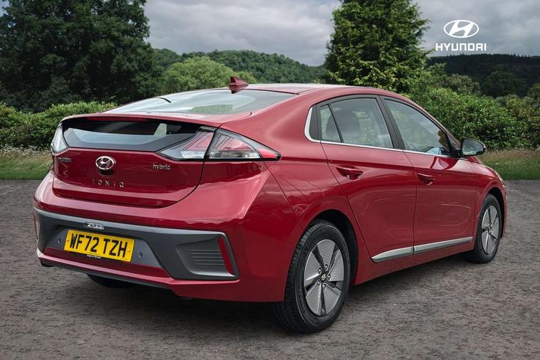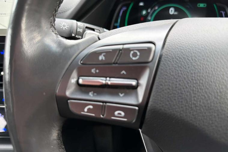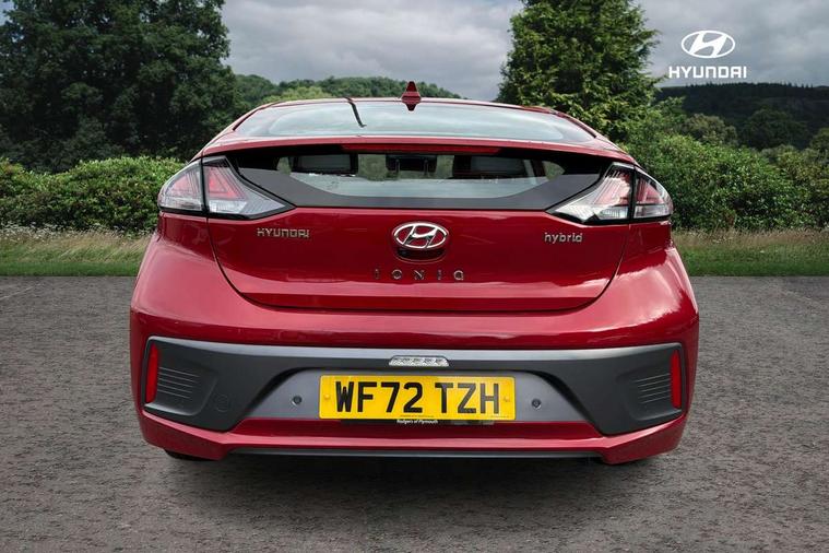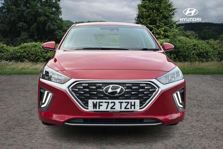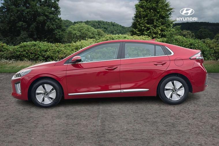 10.25" touchscreen satellite navigation includes traffic messaging channel, mapcare, live services and bluelink, Apple car play/Android Auto, Bluetooth system, Cruise control, Driver attention alert system, E-call, Eco driving assistant system (ECO DAS), Electric power steering with variable drive modes, Gear lever drive mode selector, Lane departure warning system with lane keep assist - LKAS, Parking Brake - Foot Brake, Parking system with rear camera and guidance system, Rear parking sensor, Rear view monitor, Roadside assistance, Supervision cluster with 7" high resolution TFT LCD, Voice recognition, Windscreen washer fluid sensor and warning indicator, Wireless phone charging pad, DAB Digital radio, Infinity sound system includes 1 centre, 2 tweeters, 2 front, 2 rear and 1 ext amp, Radio data system, Steering wheel audio, phone and cruise controls, USB and aux connection in front, Active air flap radiator grille, Auto dimming rear view mirror, Automatic headlights with dusk sensor, Body colour bumpers, Body colour door handles with chrome inserts, Body colour door mirrors, Bodyside mouldings, Chrome door scuff with ioniq logo, Chrome finish window surround, Chrome radiator grille, Door mirror puddle lights, Electric adjustable door mirrors, Electric front windows - anti trap + one touch, Electric heated door mirrors, Heated rear windscreen, High beam assist, LED daytime running lights, LED Headlights, LED indicators in door mirrors, LED rear fog light, Positioning Lights - LED, Power folding door mirrors, Rain sensor, Rear electric windows, Rear LED lights, Rear roof spoiler with integrated LED brake light, Rear side wing doors, Rear wiper, Solar glass with windscreen shade band, Tinted windows, Two tone rear bumper, Variable front intermittent wipers, 12V power outlets, 3 rear seats, 60/40 split folding rear seat, Centre console storage, Centre interior light, Chrome interior door handles, Cloth upholstery, Driver seat height adjust, Driver's electric adjustable lumbar support, Driver/passenger sunvisors with illuminated vanity mirrors, Dual zone climate control, Front centre armrest with storage compartment, Front cupholder, Front head restraints with vertical and horizontal adjustment, Front seat and rear pockets, Heated front seats, Heated steering wheel, Illuminated luggage compartment, Interior mood lighting, Leather wrapped steering wheel, Luggage net, Manual height adjustable front passenger seat, Map and reading lights, Paddle shifter, Rear centre console with air vents, Single front passenger seat, Sunglasses holder, USB - driver arm rest (charging only), Vertical adjustment rear head restraints, 3x3 point rear seatbelts, Airbags - front, front side, curtain and drivers knee airbags, Anti-lock brake system (ABS), Autonomous emergency braking, Electronic stability control, Front passenger airbag deactivation switch, Hill start assist control (HAC), Manual child lock in rear doors, Regenerative braking system, Traction control, Tyre pressure monitoring system with individual tyre pressure display, Deadlocks, Immobiliser, Keyless smart entry with push button start, Remote central locking, 15" Design B alloy wheels, Tyre repair kit,