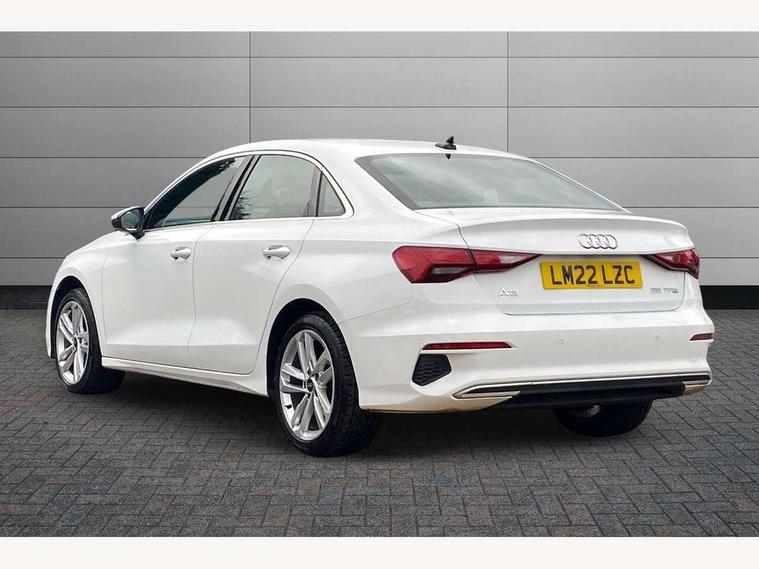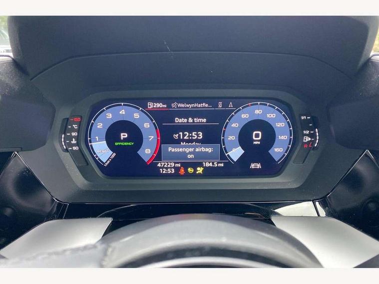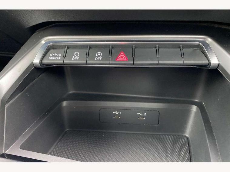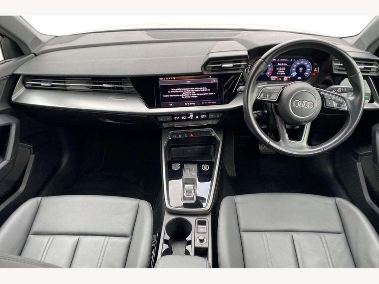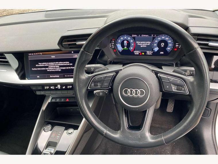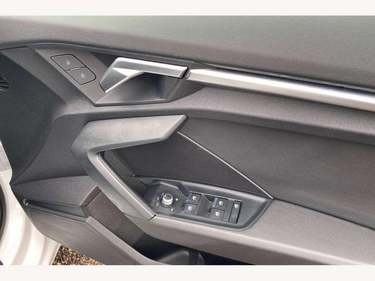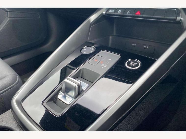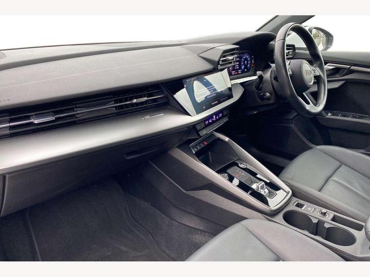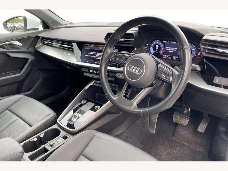 Audi connect emergency call and service, Audi drive select (Auto, Comfort, Dynamic, Efficiency and Individual), Audi smartphone interface, Audi Virtual Cockpit - 10.25" digital and colour instrument cluster, Automatic start/stop system with recuperation, Bluetooth interface, Collision avoidance assistant, Electromechanical power speed sensitive steering, Lane departure warning system, MMI Navigation Plus with high resolution 10.1" colour touch screen display, Service indicator, Voice control system with natural language interaction, Standard suspension, 2x USB Type C ports (for charging and data transfer), 6 passive loudspeakers, CD player, DAB Digital radio, 3rd brake light, Acoustic glass windscreen, Aluminium window trim, Auto dimming frameless rear view mirror, Body colour exterior mirrors, Body colour roof spoiler, Electrically adjustable/heated/folding/auto dimming door mirrors with integrated LED indications + kerb view function for passenger side, Front electric windows, LED daytime running lights, LED headlights and halogen rear lights, Light and rain sensors, Model and engine designation badges at rear, Rear boot, Rear electric windows, Rear side wing doors, Rear window, rear door windows and rear side windows in clear glass, 12V socket and storage compartment in front centre console, 3 seat bench in 2nd row, 40/20/40 split folding rear seat bench with cupholder, Dual zone electronic climate control, Front and rear headrests, Front centre armrest, Front door sill trims with aluminium inlay, Front/rear floor mats, Height and reach adjustable steering wheel, Interior lighting - Front and rear roof module including reading lights, glove compartment light and right hand side, Luggage compartment floor covering, Manual boot compartment lid, Manually adjustable front seats, Seat side bolsters, Single front passenger seat, Steel grey cloth headlining, Twin leather upholstery, Aluminium interior elements pack - A3, Sport styling pack - A3 Saloon, 3x3 point rear seat belts, Driver and front passenger airbag with passenger airbag deactivation, Electronic Stabilisation Control (ESC) including ABS, ASR and EDL, First aid kit with warning triangle and 2 safety vests, Front side airbags with head airbags and interaction airbag, Hill hold assist, Pre-sense front with pedestrian and cyclist detection, Seatbelt monitoring, Tyre pressure loss indicator, Anti theft alarm, Anti-theft wheel bolts, Immobiliser, Manual child locks, Remote control central locking, Aluminium air vent surrounds, Aluminium trim elements, Inlays with silk effect paint in platinum grey,