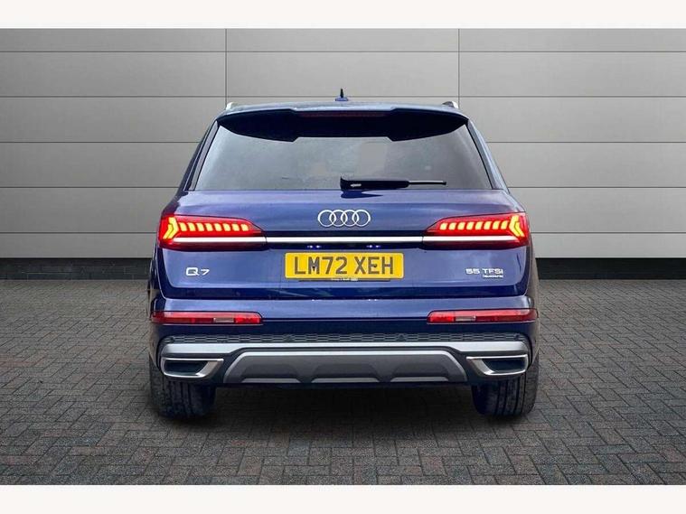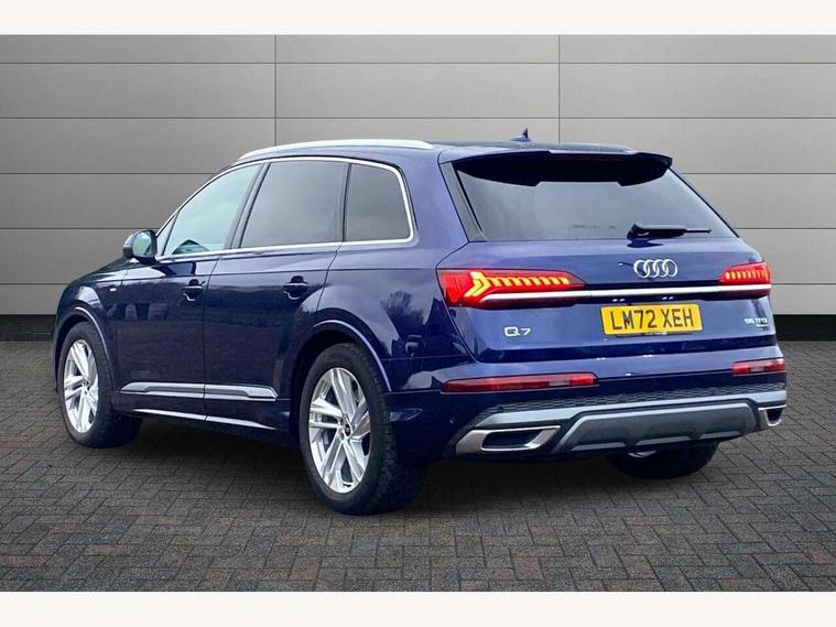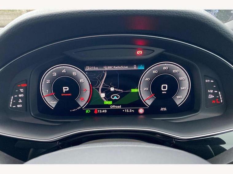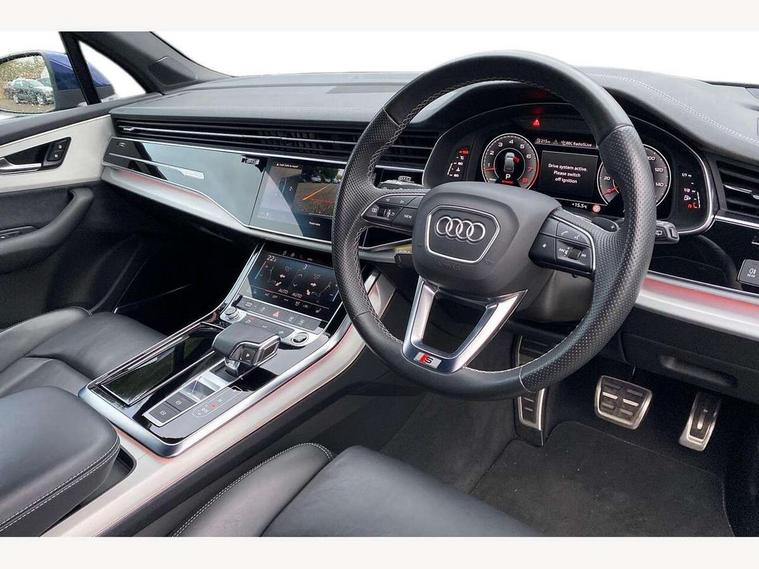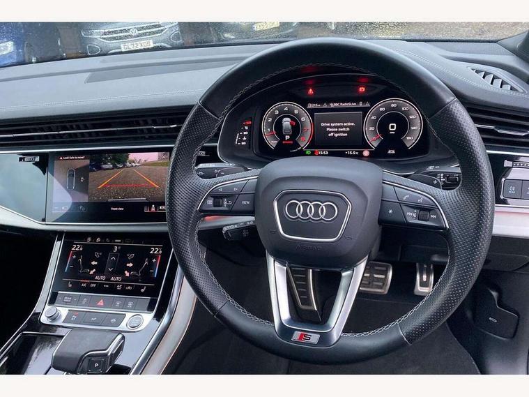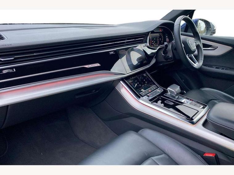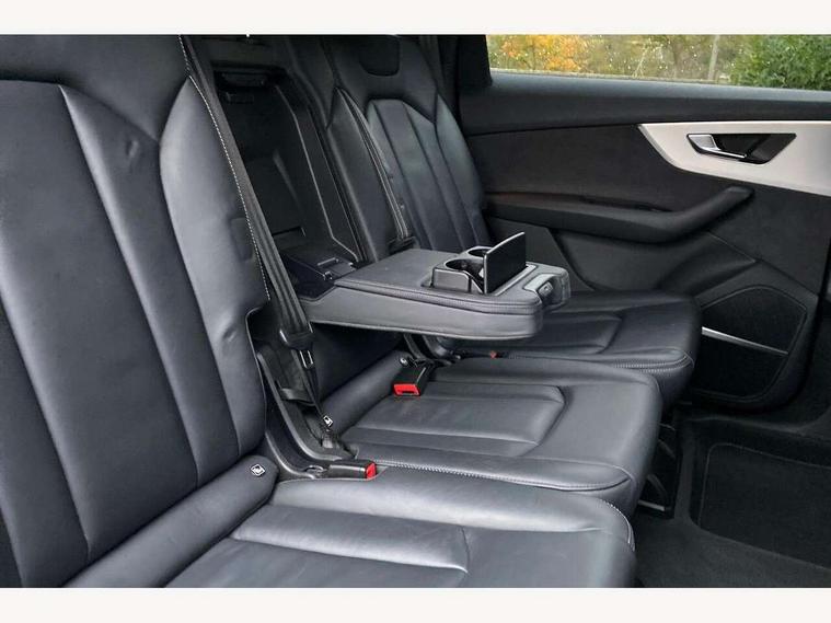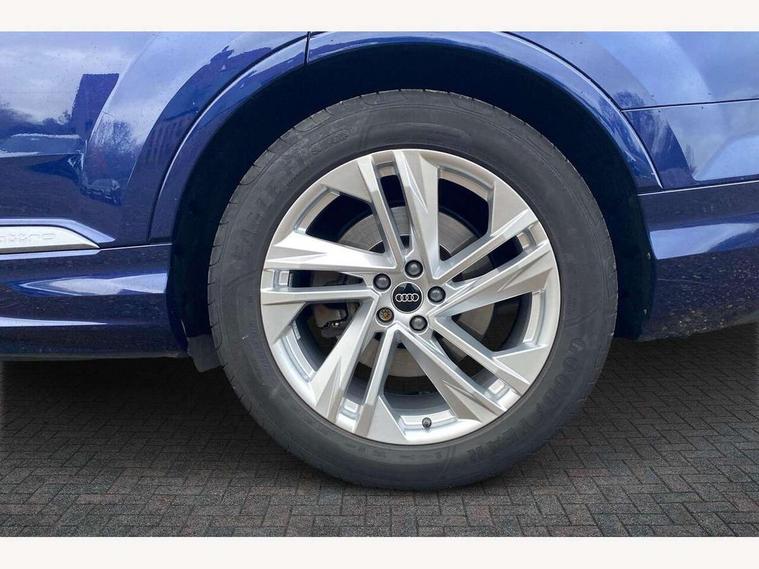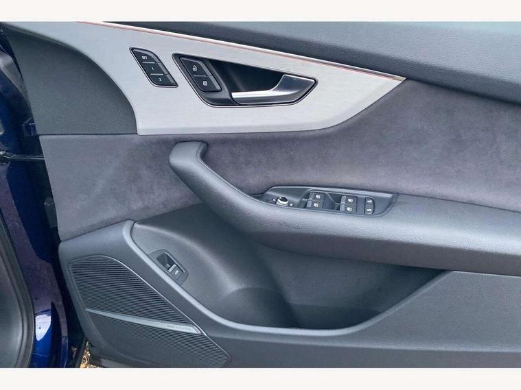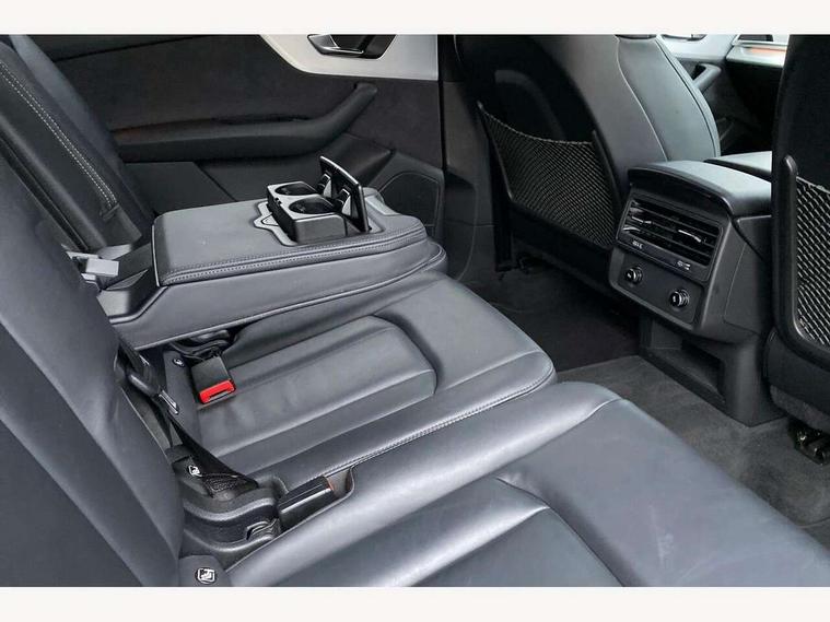 Audi connect safety and service (e-call), Audi connect with Amazon Alexa Integration, Audi drive select (Auto, Comfort, Dynamic, Efficiency, Individual, Off-road and All road), Bluetooth interface, Camera based traffic sign recognition, Electromechanical steering, MMI navigation plus with MMI touch screens includes 10.1" and 8.6" screens with haptic feedback, Natural voice recognition, Parking system plus with 360 degree display (front, rear and side sensors) - acoustic and visual park assist system, Power operated tailgate, Rear view camera, Smartphone interface includes wireless Apple carplay/Android Auto, Start/stop system, 48V Mild hybrid technology, 85 litre fuel tank, Adaptive air suspension, Quattro all wheel drive with self locking centre differential, Audi music interface - front 2 USB-C ports with charger and data functions, Audi sound system with 6 channel amplifier, 180 watt amplifying capacity and 10 loudspeakers including subwoofer, DAB digital radio module, 3rd brake light, Aluminium roof rails, Aluminium window trim, Audi matrix LED headlights with dynamic front and rear indicators, Auto dimming frameless rear view mirror, Body coloured door mirrors, Electrically adj heated/folding + automatically dimming exterior mirrors with memory + automatic kerb side function for passenger side exterior mirror, Heat insulating glass in windshield, Integrated LED indications in door mirrors, LED daytime running lights, LED rear tail lights, Privacy glass - dark tinted rear and rear side windows from B-pillar backwards, Rear side wing doors, Rear wiper, S Line badge on wings, S line bumpers in full body colour paint finish, S line roof spoiler, S line styling side ventilation grilles and side skirts, 2 seat bench in 3rd row, 2 zone automatic climate control, 3 seat bench in 2nd row, 7 seat layout with ISOFIX points for the front passenger seat and rear passenger seat, Black cloth headlining, Comfort front centre armrest, Electric adjustable front seat with 4 way lumbar support, driver memory functionality, Folding rear seats, Front head restraints, Front/rear floor mats, Heated front seats, Illuminated door sill trims with S logo, LED interior ambient lighting, Luggage compartment cover, Luggage compartment sill protection in stainless steel, Rear head restraints, Single front passenger seat, Stainless steel pedals, Sunvisors with illuminated vanity mirrors, 3 point seatbelts on all rear seats, Audi pre sense front, Child locks on rear doors, Driver and front passenger, front side and curtain airbags, Electromechanical parking brake, Electronic Stabilisation Control (ESC) including ABS, ASR and EDL, Extended pedestrian protection measures, Hill hold assist, Seatbelt monitoring, Tyre pressure loss indicator, Warning triangle and first aid kit, Anti theft alarm, Anti-theft wheel bolts and wheel loosening detection, Keyless Go, Remote central locking, Darkened matt brushed aluminium inlays, Tool kit, Tyre repair kit,