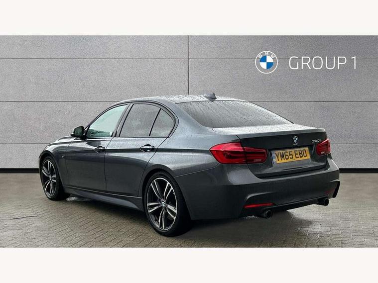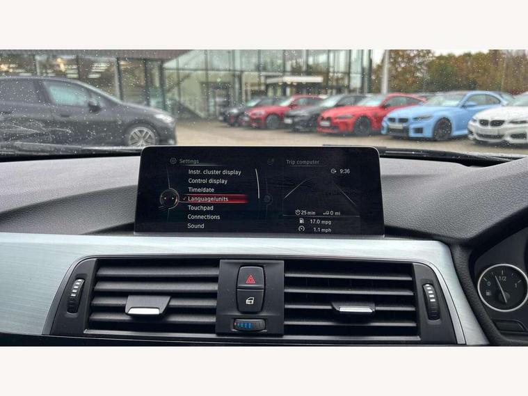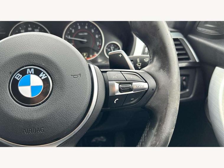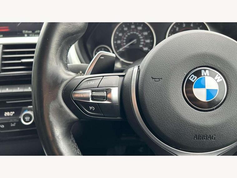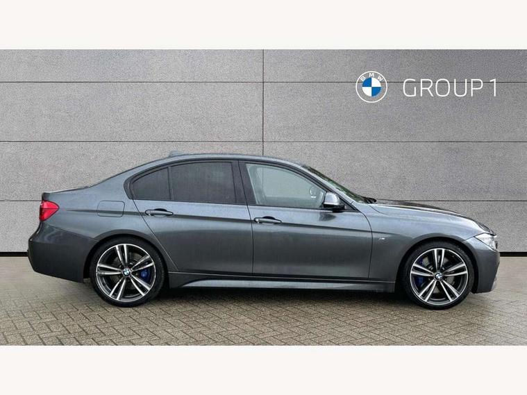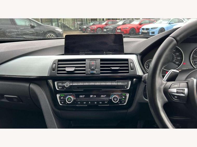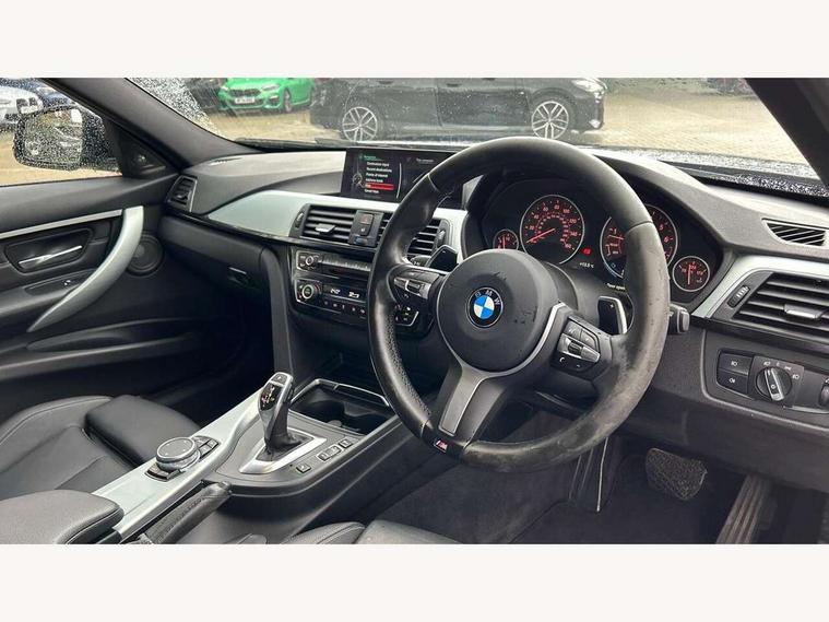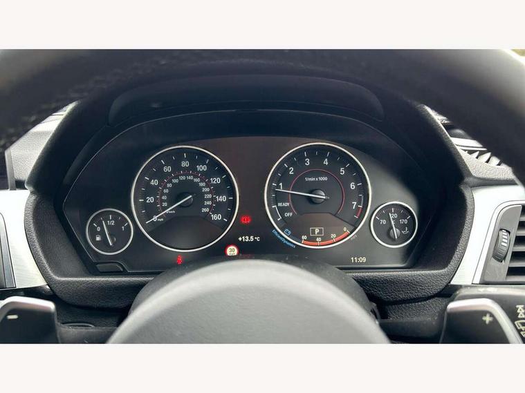BMW Teleservices, Brake force display, Brake pad wear indicator warning light, Check control system, Digital clock, Door/boot open warning light, Front/rear park distance control, Lights on warning, Oil temperature gauge, On board computer, On board diagnostics, Operation warning of all exterior lights, Outside temperature display, Push button starter, Run flat tyre indicator, Service interval indicator, Traffic message channel (TMC), Drive Performance Control, Electronic differential lock, Auxiliary point for auxiliary devices, BMW professional radio/CD/MP3, CD Changer preparation, DAB Digital radio, 'Guide me home' headlamps, 2 speed adjustable intermittent wipers with wash/wipe function, Auto dimming rear view mirror, Automatic headlight beam throw control, Body colour bumpers, Body colour door handles, Body colour electric adjustable door mirrors, Body colour roof mouldings, Chromed finished twin exhaust, Clear indicator lenses, Door sill finishers, Dynamic brake lights, Electric front and rear windows with one touch/convenient open/close function, Front ornamental grille with chrome plated kidney bars and chrome bezel, Green tinted heat insulating glass, Heated rear window with automatic switch off, Heated windscreen washer jets, High gloss shadow line, LED daytime running lights, Rain sensor + automatic driving lights control, Shark fin roof aerial, 12V sockets in front centre console and passenger footwell, 2 x folding cupholders in instrument panel above glovebox, 3 rear seat head restraints, 4 foldable grab handles - rear with clothes hook, 4 lashing points to secure luggage, Automatic interior light soft on/soft off system, Driver and passenger sunvisors with vanity mirrors + slide cover, Dual zone automatic air conditioning, Folding front centre armrest + storage, Front and rear door armrests, Front and rear velour floor mats, Front door storage bins with bottle holder, Front sports seats with electric side bolster adjustment, Glovebox light, Height adjustable front headrests, Indirect front interior illumination - soft-light function, Individual anthracite headlining, Isofix system on outer rear seats, Leather gear knob, Leather gear selector lever handle, Leather handbrake grip, Lockable glovebox, Luggage compartment lighting, M sports leather steering wheel, Multi-function controls for steering wheel, Reach + rake adjustable steering column, Rear centre armrest with 2 cupholders, Rear storage compartment in multifunction centre console with sliding cover, Storage compartment in rear doors, Toolkit located in luggage compartment, Extended lighting package - 3 Series, 3 point inertia reel seatbelts + pre-tensioners on outer rear seats, ABS, Automatic Stability Control (ASC), BMW emergency call, Cornering brake control (CBC), Crash sensor, Driver and passenger airbags, DSC+, Dynamic brake control, Dynamic Traction Control - DTC, Front and rear head airbags, Front passenger airbag deactivation, Front seat side impact airbags, Front seatbelt pretensioners + load limiters, Hill start assist, Rear child proof door locks, Seatbelt warning, Three 3 point rear seatbelts, Twin horns, Tyre pressure monitor, Warning triangle and first aid kit, Automatic drive away locking facility, Central locking fuel filler cap, Centre lock switch, Electronic immobiliser, Key integrated remote control central locking, Remote control alarm, Low rolling resistance tyres, Run-flat tyres,