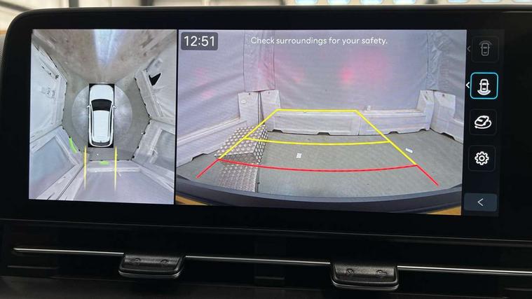 12.25" digital instrument cluster, 12.3" touchscreen centre console display satellite navigation with bluelink, live services and mapcare, Blind spot collision avoidance assist, Blind spot view monitor, Bluetooth connectivity with voice recognition, Driver status monitor (DSM), Driver supervision instrument cluster with 12.3" LCD display, eCall emergency call system, Feature on demand - Enabled, Forward collision avoidance assist (FCA 1.5) - Car, pededstrian, cycle and junction turning, Front parking sensor, HDA - Highway Drive Assist Level 1.5, Height adjustable power tailgate, Intelligent speed limit assist, Lane follow assist, Lane keep assist, Leading vehicle departure alert (LVDA), Parking Collision Avoidance Assist-Reverse (PCA-R), Parking distance warning - side, Parking system with rear camera and guidance system, PAS, Rear cross traffic collision avoidance (RCCA), Rear parking sensor, Rear view camera with dynamic guidelines, Roadside assistance, Safe exit warning (SEW), Smart cruise control with stop and go functionality, Surround view monitor, Wireless phone charging pad, Wireless Smartphone Integration includes Apple CarPlay and Android auto, 2 front USB C and 2 rear USB C charging points, Bose Premium Audio system with 7 premium speakers + subwoofer, DAB Digital radio, Steering wheel audio, phone and cruise controls, Auto dimming rear view mirror, Automatic headlights with dusk sensor, Automatic windscreen wipers with rain sensor, Black painted wheel arch inserts, Body colour exterior door handles, Body coloured door mirrors, Door mirror LED indicator lights, Electric front windows with anti-trap mechanism and one touch control, Electric rear windows, Electric sunroof, Electrically adjustable and heated door mirrors, Horizon centre LED DRL, LED projector headlights, LED taillights, LED upper and lower rear lights, Power folding door mirrors, Privacy glass - Rear windows and tailgate, Rain sensor, Rear roof spoiler with integrated LED brake light, Rear side wing doors, Rear skid plate - silver, Rear wiper, Roof rails, Solar glass with front door glass and windscreen, Tinted glass in front and rear doors, Windscreen auto defog function, 12V power outlet in front console, 2 zone climate control, 3 seat bench in 2nd row, 40/20/40 split folding rear seat, Adjustable head restraints, Ambient lighting, Driver and passenger front seat pockets, Driver's seat electric adjustments, Driver's seat lumbar support, Driver/passenger sunvisors and illuminated vanity mirrors, Floor mats, Front passenger's seat electric adjustments, Heated front seats, Heated rear seats, Heated steering wheel, Height/reach adjustable steering column, Leather steering wheel, Leather upholstery, LED centre interior light, LED front interior light, Luggage compartment LED lighting, Luggage net, Luggage shelf, Metal paint effect interior door handles, Rear centre armrest with cupholders, Shift by wire SBW, Single front passenger seat, Ventilated front seats, Vertical adjustment rear head restraints, Trailer wiring package - Kona, Airbag - front, front side, curtain and centre front airbag, Anti-lock brake system (ABS), Childproof rear door locks, Downhill brake control, Electric parking brake, Electronic stability control, Fixed 3 point for second row centre passenger seatbelt, Hill start assist control (HAC), Rear seat alert, Tyre pressure monitoring system, Alarm/immobiliser, Rear occupant alert, Remote central locking, Smart key with keyless entry and start/stop button, Five year annual vehicle health checks, 18" Alloy wheels, Temporary mobility kit (TMK),