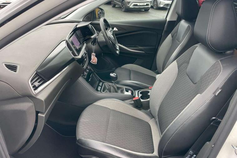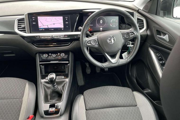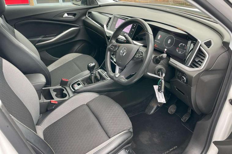 12" colour digital cluster, 180 degree rear view camera, Central facia display with digital clock, outside air temperature and audio information, Cruise control with speed limiter, Digital fuel gauge with low fuel level warning light, Digital rev counter, Digital speedometer, Digital water temperature gauge with warning light, Driver drowsiness alert system, Driver information - Total mileage, service indicator, oil life, Gearshift up/down indication light, Lane departure warning system, Lane keep assist, Lights on audible warning, Multi function trip computer - Trip odometer, vehicle range, average speed and fuel economy, instantaneous fuel economy and driving time, Multimedia navi pro with 10" colour touch+ sat nav+AM/FM/DAB radio, bluetooth audio streaming/mobile phone portal, Apple carplay/Android auto, USB, Speed sensitive electric power assisted steering, Speed sign recognition, Vauxhall connect including Ecall and connected services, Six speaker - four front + two rear, Steering wheel mounted audio/phone/cruise controls, 3rd brake light, Automatic lighting control, Automatically dimming anti dazzle rear view mirror, Black door mirrors, Black side window trim, Body colour door handles, Carbon black door claddings, Collapsible windscreen wipers, Dark tinted rear side and tailgate windows, Door mirror puddle light, Door to door illumination, Electrically adjustable and heated power door mirrors (wide-angle on drivers side) with automatic timed cut-off, Electrically operated front and rear windows with safety auto reverse and one touch up/down facility, Front/rear bumper and wheel arches in carbon black exterior color, GRANDLAND Carline name badge in - High gloss black, Hazard warning lights, Heated rear screen with timed cut off, High beam assist, High gloss black protective front and rear skid plates with C shape bumper inserts, High gloss black roof rails, High level centre rear brake light, Intermittent rear window wash/wipe, LED daytime running lights, LED Headlights, LED tail lights, Manual headlight beam levelling, Rain sensor windscreen wipers, Rear side wing doors, Rear spoiler, Reversing light, Shark fin aerial, Side protection mouldings, Side window demist vents, Soundproof insulated windscreen, Tinted windows, Upper and lower bumper design, Vauxhall brand griffin badge in front and rear in high gloss black, Vauxhall plate door sill cover, Vizor front grille, Welcome lighting, Windscreen demist vents, 12V electrical accessory socket in front, 3 bench rear seats in 2nd row, 3 spoke flat bottom leather steering wheel with satin chrome effect bezel, 4 way electric driver lumbar support, 4 way manual adjustable driver seats with height, reach and backrest, 60/40 split folding rear seat, Advanced predictive logic control system using a sun sensor, Ambient centre console downlighter, Anti submarining ramps in front seats, Automatic air direction and fan speed with manual override, Black premium leather-effect side bolsters, Charcoal filter, Chrome effect interior door handles, Cosmo 1 Harlekin curitiba seats, Covered storage compartment in centre console and in driver armrest, Driver ergonomic active front seat, Driver's centre armrest, Dual zone electronic climate control, Four adjustable facia vents, Front door pockets with 2.6 litre capacity, Front passenger seat, Front passenger seat cushion extension, Front passenger sport style seat, Grey headliner, Height adjustable headrests, Illuminated controls, Illuminated driver/passenger sunvisors, Illuminated luggage area + Ambient lighting in front doors, Interior courtesy light operated by door switches, ISOFIX on front passenger and rear outer seats, Luggage compartment cover, Reach + rake adjustable steering column, Rear centre seat head restraint, Rear door pockets with 1.8 litre capacity, Rear passenger compartment heating ducts, Rear reading lights, Two drinks holders in centre console, Ventilated glovebox with lid, 6 Airbags - Driver and passengers front airbag, two front side impact airbag, full size curtain airbags for driver, Anti-lock braking system (ABS), Automatic emergency braking system, Child proof locks on rear doors, CSC - Cornering stability control, Deactivation switch for front passenger front and side impact airbags, Deflation detection system, Deformation zones front and rear, Dual seatbelt pretensioners on front seats, EBD - Electronic brakeforce distribution, Electronic parking brake, Electronic stability program (ESP) including traction control, Energy absorbing steering column, Engine drag torque control, Hill start assist, Hydraulic Brake Assist (HBA), Inertia reel lap and diagonal seatbelts for all seats, Load limiters on outer rear seatbelt retractors, Rear restraint seat belt pretensioner, Reinforced passenger safety cell, Side impact protection beam, Smart seatbelt reminder for front and rear seats, Tyre pressure monitoring system, Deadlocking system, Electronically protected audio equipment, Engine deadlock immobiliser, Freewheeling door locks, Key left in ignition audible warning, Locking wheel nuts, One rigid one flap-key coloured, Remote control central locking activation switch on driver door, Remote control primary foldable and additional foldable key, Remote security alarm system, Self powered alarm horn, Single horn, Theft deterent body security content and electircal child lock system, Theft deterent electrical, Visible vehicle identification number, Black door panels with black premium leather effect inserts, Dax decor facia panel with palladium medium finish, 18" 5 twin spoke high gloss black alloy wheels, Tyre inflation kit,