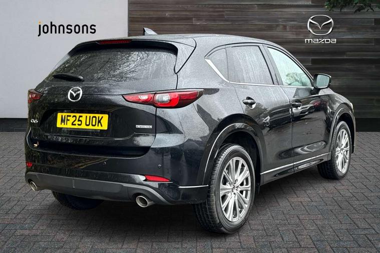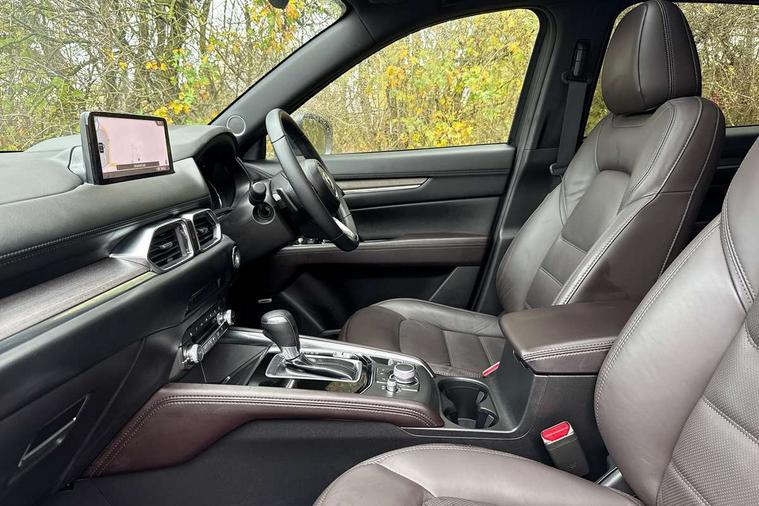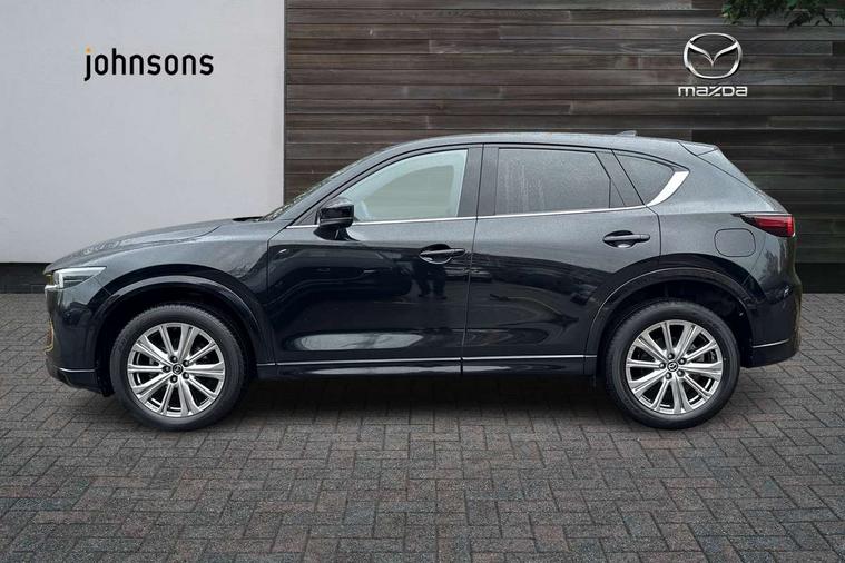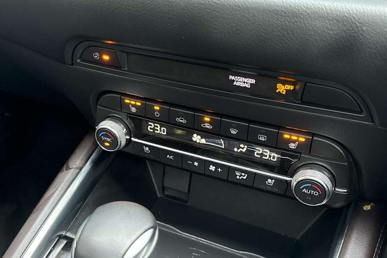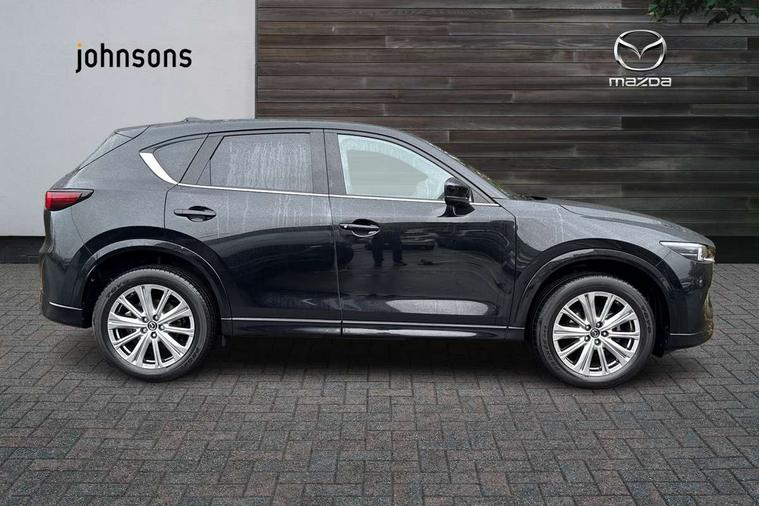 10.25" display with Mazda Connect infotainment, 360 degree surround camera, 7" colour TFT display, Advanced blind spot monitoring, Bluetooth connectivity with voice control, Collision prevention assist, Connected services, Cruising Traffic Support, Drive mode selector, Driver attention alert system, Electric power steering, Emergency stop signalling system, Engine start/stop button, Forward collision warning, Front and rear parking sensors, Integrated navigation system, Intelligent speed assist, Lane departure warning system, Lane keep assist, Power liftgate, Qi wireless phone charging, Radar cruise control with Stop and Go, Rear cross traffic alert, Service indicator, Traffic sign recognition (TSR), Trip computer, Windscreen projected colour active driving display (HUD) with memory, Wireless apple car play/android Auto, Cylinder Deactivation, i-stop, AM/FM radio, Bluetooth audio streaming, Bose premium sound system with 10 speakers, DAB Digital radio, Multimedia Commander including separate volume dial, Steering wheel mounted audio controls, Adaptive LED Headlights, Automatic headlights, Body colour door mirrors, Body colour roof spoiler, Body coloured front and rear lower bumper mouldings, Body coloured tire arch and side mouldings, Coming/leaving home lighting function, Door mirror integrated indicators, Dual large chrome tailpipes, Dusk sensitive headlamps, Electric front/rear windows with one touch auto up/down, Frameless auto dimming interior rear view mirror, Front grille in gloss black finish, Front grille in gloss black with black accent + chrome signature wing, Gloss black B and C pillars garnish, Gloss black front grille accent, Intermittent rear wash/wipe, LED auto levelling, LED daytime running lights, LED front fog lights, LED third brake light, Power folding and heated door mirrors, Power tilt/slide sunroof, Privacy glass (rear side windows only), Rain sensing front wipers, Real wood inlay dashboard panel, Rear side wing doors, Scuff plates, Shark fin antenna, Signature LED rear combination lights, Variable intermittent front wash/wipe, Vinyl with real wood inlay door trim panel, Windscreen wiper de-icer, 12v electrical power outlet, 3 seat bench in 2nd row, 3 stage heated front seats, 40:20:40 Karakuri fold-flat seat system, 6 way electric adjustable passenger seat, 8 way electric driver seat with lumbar support + memory, Black roof lining, Cargo room flat floor board with waterproof undertray, Driver seat power slide, recline and height adjustment, Driver, Front passenger and two rear grab handles with coat hooks, Driver/passenger front seatback pockets, Driver/passenger sunvisors + illuminated vanity mirrors (drivers with ticket holder), Dual zone climate control, Folding centre armrest with 2 cup holders, Front and rear door pockets, Front centre storage with two cupholders, Front passenger seat power slide, recline and height adjustment, Front seat ventilation, Heated outer rear seats, Heated steering wheel, Humidity sensor, Illuminated glovebox, Interior dome light with integral spotlight, ISOFIX child seat anchorage points attached on outer rear seats, Karakuri tonneau cover, Leather gear knob, Leather steering wheel with unique stitching and chrome centre bezel, Luggage compartment LED lighting, Luggage compartment power outlet, Nappa leather upholstery, Paddle shifts, Rear air vents, Rear headrests, Rear seat recline, Roof mounted sunglasses holder, Single front passenger seat, Three height adjustable head restraints, Tilt/height adjustable steering wheel, USB Connectivity (2x front Type-C, 2x rear Type-B), White interior LED illumination lighting, 3 point front seatbelts with pre-tensioners, 3 rear 3 point seatbelts, ABS, Advanced Smart City Brake Support - SCBS, Child locks on rear doors, Driver and front passenger side airbags, DSTC-Dynamic Stability and Traction Control, Dual front airbags, Electronic brake force distribution, Electronic parking brake with auto hold, ESP, Front and rear curtain airbags, Front passenger airbag deactivation, G-Vectoring control, Hill hold assist, Rear smart city brake support, Seatbelt reminder front and rear, Single stage passenger airbags, Smart brake support with forward obstruction warning, Tyre pressure monitoring system, Automatic door locking when moving off, Deadlock, Immobiliser, Power door locks, Remote central locking, Smart keyless entry, Thatcham Cat.1 alarm, Upper dashboard and door cards wood trim, 19" exclusive design bright alloy wheels, Tyre repair kit,