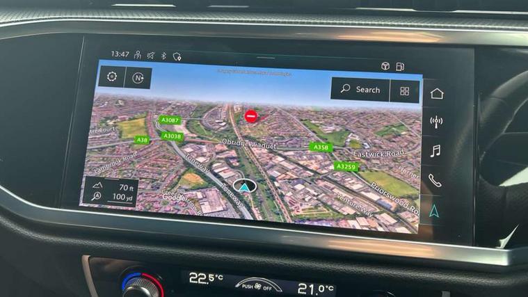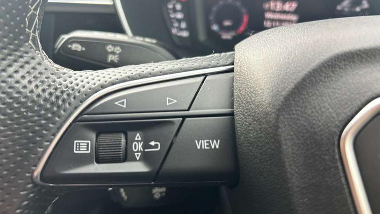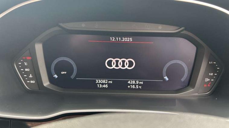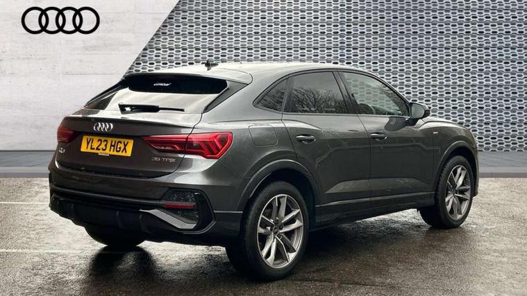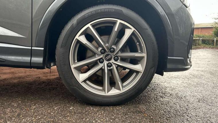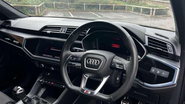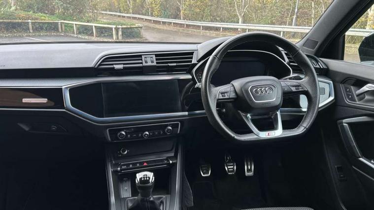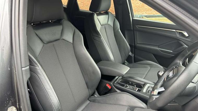 Amazon alexa Integration, Audi drive select, Audi lane departure warning, Audi Virtual Cockpit - 10.25" display, Bluetooth interface, Camera based traffic sign recognition, Cruise control + speed limiter, Legal emergency call, MMI Navigation Plus with high resolution 10.1 inch touchscreen colour display, Power operated tailgate, Progressive steering, Rear parking sensors, Service interval indicator, Smartphone interface includes wireless Apple carplay/Android Auto, Start stop system with recuperation, Voice control system with natural language interaction, Sports suspension, 2 USB-C ports with charge and data functions, 6 passive loudspeakers, DAB digital radio module, Acoustic windscreen, Auto dimming frameless rear view mirror, Black roof rails, Electrically folding, adjustable and heated door mirrors with integrated LED side indicators and kerb view function for passenger side, Front and rear electric windows, Front fog lights, Grille vertical bars in aluminium silver/Matt, High gloss black finish B and C pillars, LED Dynamic rear indicators, LED headlights with LED daytime running lights, LED rear lights, LED third brake light, Privacy glass dark tinted rear and rear-side windows (from B-pillar backwards), Rain and light sensors, Rear diffuser grille in grained matt black, Rear diffuser strip in matt anthracite black, Rear side wing doors, Rear wiper, S line bumpers in contrasting Manhattan grey, Variable front intermittent wipers, 12V socket in rear centre console, 3 seat bench in 2nd row, 3 spoke flat bottomed multi-function leather sport steering wheel, 40:20:40 folding with manual adjustment for 60:40 forwards/backwards position and backrest angle, Adjustable rear seat bench/backrest with centre armrest and cupholder, Black cloth headlining, Dual zone electronic climate control, Front and rear black floor mats with contrast stitching in rock grey, Front and rear headrests, Front and rear roof module including reading lights, Front centre armrest, Glove compartment lighting, Height and reach adjustable steering wheel, Illuminated door sill trims with S logo, ISOFIX child seat mounting for front passenger with airbag deactivation and outer rear seat including top tether attachment point for outer rear seats, Luggage compartment light, Manual front seats with height adjustment, Perforated leather gearknob, Single front passenger seat, Stainless steel luggage compartment sill finisher, Stainless steel pedals, Ambient lighting pack - Q3, Black styling pack - Q3, Non smoking pack - Q3, 3x3 point rear seatbelts, 6 airbags - Driver, front passenger, curtain and side windows, Audi pre-sense front with pedestrain and cyclist recognition, Electrically operated child locks on rear doors, Electromechanical parking brake, Electronic stabilisation control including ABS, ASR and EDL, Front seatbelt reminder, Hill descent control, Hill hold assist, Pre sense basic, Seatbelt monitoring, Tyre pressure warning, Warning triangle and first aid kit, Anti theft alarm, Anti theft wheel bolts, Immobiliser, Remote central locking, Aluminium look interior elements, Detail dashboard around MMI touch colour display in glass look, black with surround in aluminium look, Leatherette door armrest, Piano black inlay, 19" 5 twin arm design diamond cut audi sport alloy wheels in matt grey look,