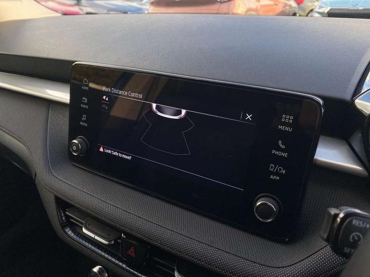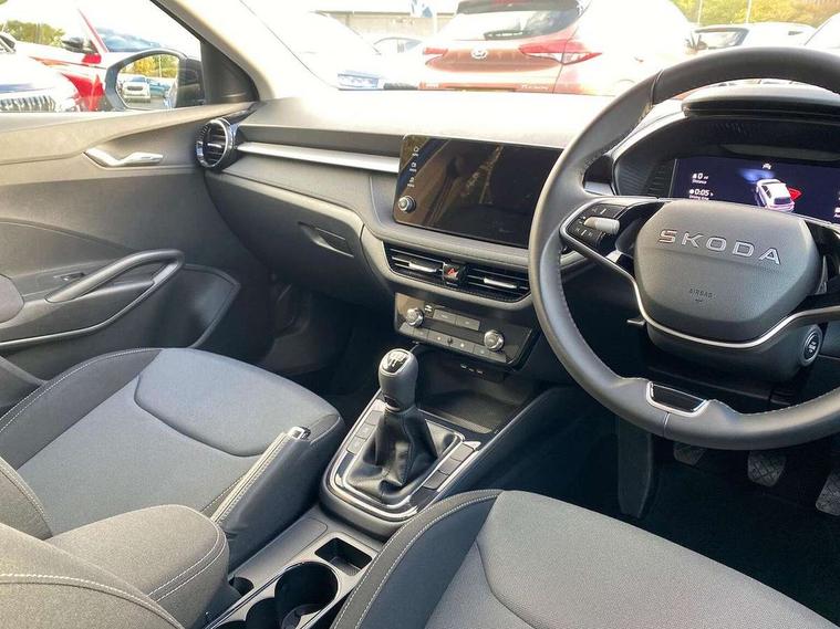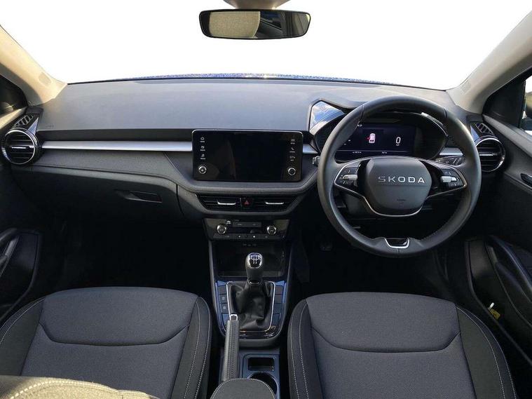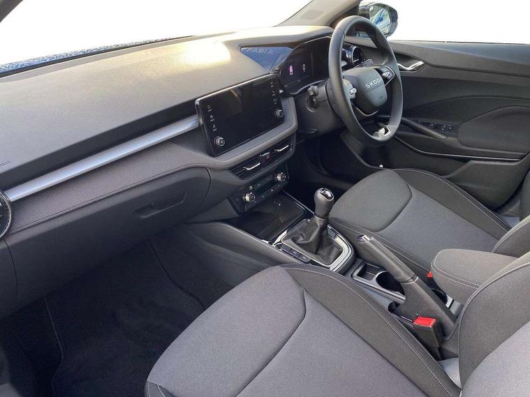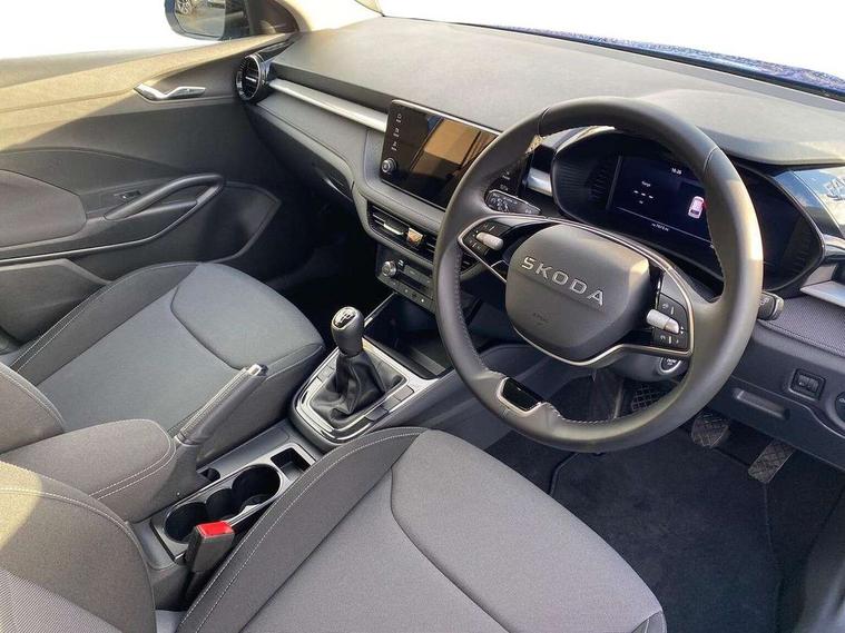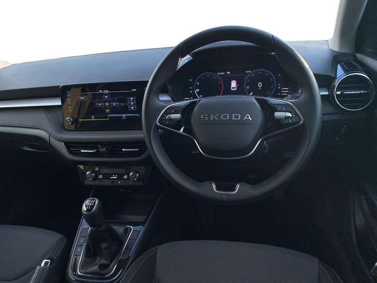 Advanced driver attention and drowsiness monitor, Bluetooth connection, Electromechanical power steering, Exterior temperature gauge, Service interval indicator, Traffic sign recognition, Virtual cockpit with 10.25" colour display, Wireless SmartLink for Apple CarPlay and Android Auto, 6 Speakers (4 in front and 2 in rear), Auxiliary socket for external MP3 player, DAB digital radio reception, Auto dimming rear view mirror, Body coloured bumpers, Door mirror integrated indicators, Front and rear electric windows, Front window wiper intermittent control, Headlight range control - Automatic, Ice scraper in fuel cap, LED 3rd brake light, LED daytime running lights with coming and leaving home feature, LED rear lights, Privacy glass, Rear LED fog light, Rear side wing doors, Rear window wiper with washing nozzles, Roof mounted spoiler, SKODA tailgate lettering in chrome, Unique dark chrome design logo on alloy wheels, 2 reading lights in front and 2 reading lights in rear, 3 rear headrests, Backrest split and folding, Central console with removable cup holder and storage box, Chrome handbrake release button, Dual zone air conditioning with climatronic electronic control, Fabric upholstery, Front centre armrest, Gearshift knob/handle in leather, Grain satin black interior door handles, Hand brake lever handle in leather, Height adjustable front headrests, Height adjustable front seats, Height adjustable steering wheel, ISOFIX and TopTether anchorage points to the outer rear seats, ISOFIX and TopTether on the front passenger seat, Luggage compartment lighting, Manually adjustable lumbar support in front seats, Pollen filter, Rear seat bench unsplit, Single front passenger seat, Skoda lettering on steering wheel, Storm grey headlining, Sun visors with mirror and airbag label on passenger side, Textile floor mats, Ticket holder, Umbrella in drivers door, 3-point height adjustable front seats belts with pretensioner and force limiter, Automatic warning lights in case of crash, Driver and passengers airbag with switch off function, e-Call+, ESC including ABS, MSR, ASR, EDS, HBA and XDS, Front and rear seat belt warning, FRONT ASSIST (AEB City and AEB Inter Urban), Front side airbags, Head airbags, One tone horn, Pedestrian protection, Three rear 3-points safety seat belts with pretensioner and force limiter including stop function for outer rear seat belts, Tyre pressure monitoring system, Anti-theft alarm system including immobiliser, interior monitoring, backup horn, and towing protection, Central locking with radio remote control, interior controls, SAFE function and 2 foldable keys, Black painted air vents, Grain satin black central console cover, Metallic grey upper decorative trim, Satin black door and side trim panel in front, Textile Kota grey lower decorative inserts, Anti-theft wheel bolts protection, Super-low rolling resistance tyres,