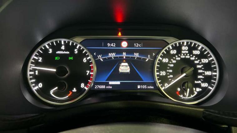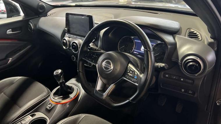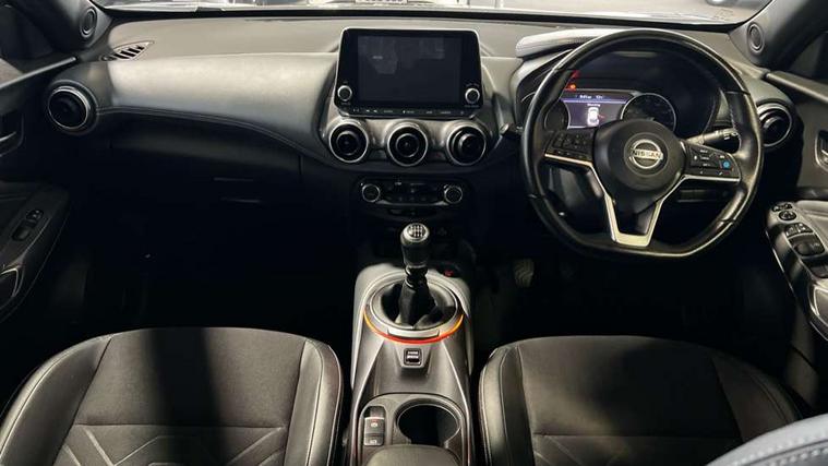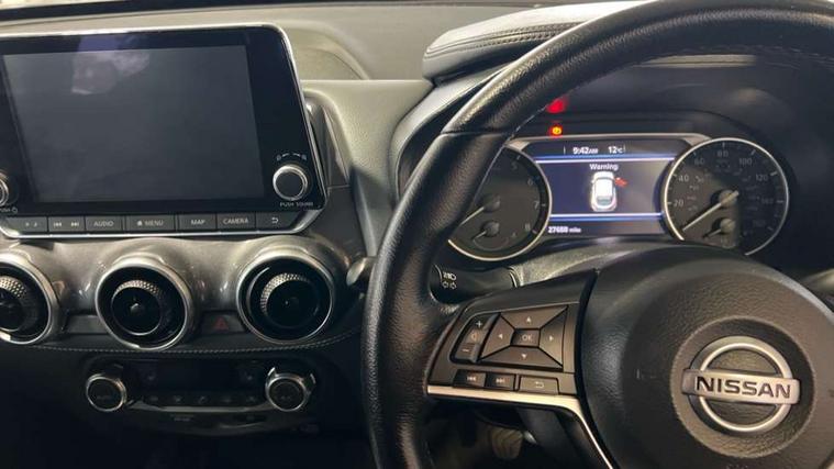 7" full colour TFT screen combimeter, 8" infotainment colour display with touch screen, Apple CarPlay and Google Android auto, Drive modes select (Eco, normal and sport), Emergency and breakdown call, Front parking sensor, Idle start/stop system, Intelligent lane intervention, Lane departure warning system, Nissan connect nav with TomTom traffic, Nissan connect services and Wifi connection, Outside temperature sensor, Power Steering, Rear parking sensor, Traffic sign recognition, Trip computer, Gasoline particulate filter, Bluetooth system, USB, Aux-in and 12V socket, Bose personal plus audio system with 8 speakers(4 speakers and 2 headrest speaker for driver and passenger seats), Bose personal sound stage control, DAB Digital radio, Rear console USB port, Auto dimming interior rear view mirror, Automatic hazard signal with emergency stop signal, Body colour bumpers, Body colour door handles, Electrically adjustable door mirrors with integrated indicators, Follow me home headlights, Front and rear electric window with one touch driver window, Heated and auto folding door mirrors, High beam assist, LED daytime running lights, LED front fog lights, LED headlamps, LED rear fog lamp, LED rear lamps, Rain sensor windscreen wipers, Rear privacy glass, Rear wiper, Thermaclear heated windscreen, Three blink turn signal, 3 height adjustable rear headrests, 60/40 split folding rear seat, Automatic climate control, Card holder on driver sunvisor, Cloth/Synthetic leather upholstery, Door ambient lighting, Driver and passenger sliding and reclining seats, Driver seat back pocket, Driver side rear coat hanger, Driver/passenger sunvisors and vanity mirrors, Front and rear cabin lighting, Front armrest, Front door pockets with bottle holders, Front head restraints, Front passenger isofix child seat anchorage point, Front/rear passenger grab handles, Gear console ambient circle lighting, Grey synthetic leather kneepad, Heated front seats, Height adjustable driver's seat, Height adjustable passenger seat, Internal chrome door handles, Leather gearshift knob, Leather steering wheel, Luggage board, Luggage space lighting, Monoform sporty seats, Multifunction steering wheel, Passenger seat back pocket, Rear door bottle holders, Telescopic steering wheel adjustment, Two cupholders in front centre console, Two rear isofix child seat anchorage points with top tether, Voice recognition switch on steering wheel, Welcome light and console tray ambient lighting, Advanced safety shield pack - Juke, ABS with EBD and brake assist, Active ride control, Active Trace Control, Driver and passenger airbags, Driver and passenger side airbags, Electric handbrake with auto hold function, Electronic Stability Programme (ESP), Front and rear curtain airbags, Height adjustable seatbelts, Hill start assist, Intelligent emergency braking with pedestrian and cyclist recognition, Seatbelt reminder for driver/front passenger and rear seats, Single tone horn, Three 3 point rear seatbelts, Traction control, Tyre pressure monitoring system, VDC Dynamic Vehicle Control, Ventilated rear brake discs, Alarm, Immobiliser, Intelligent Key with push button starter, Remote central locking,