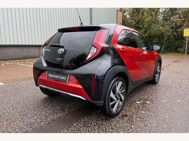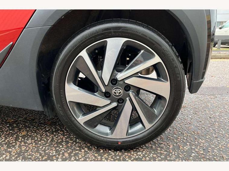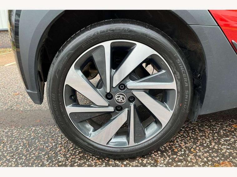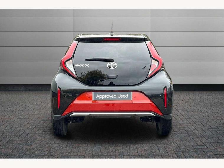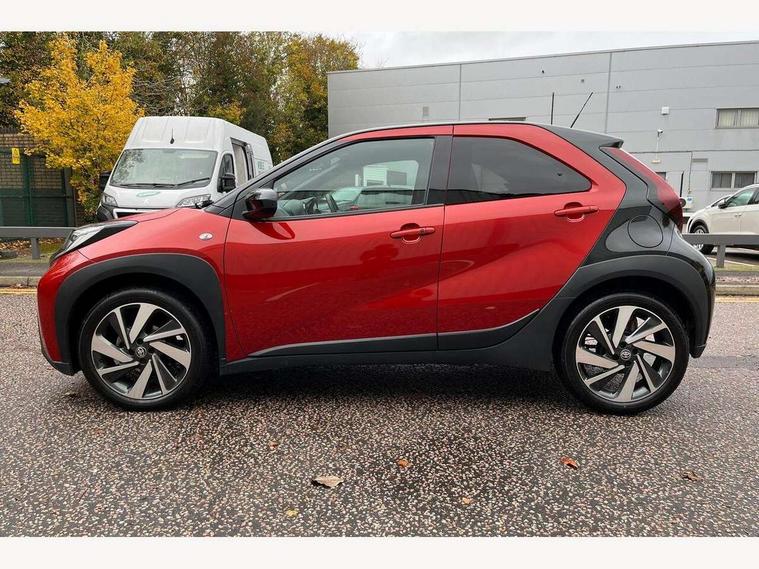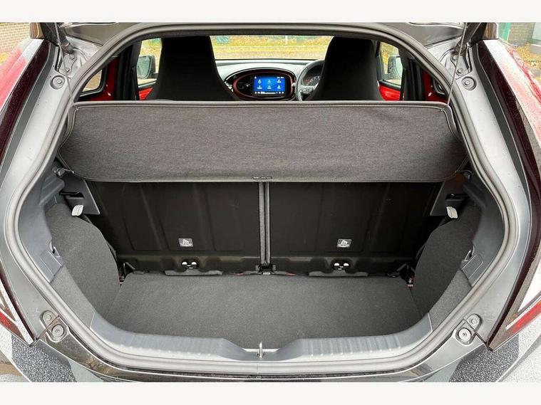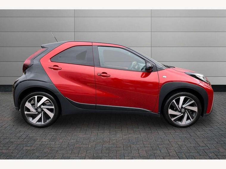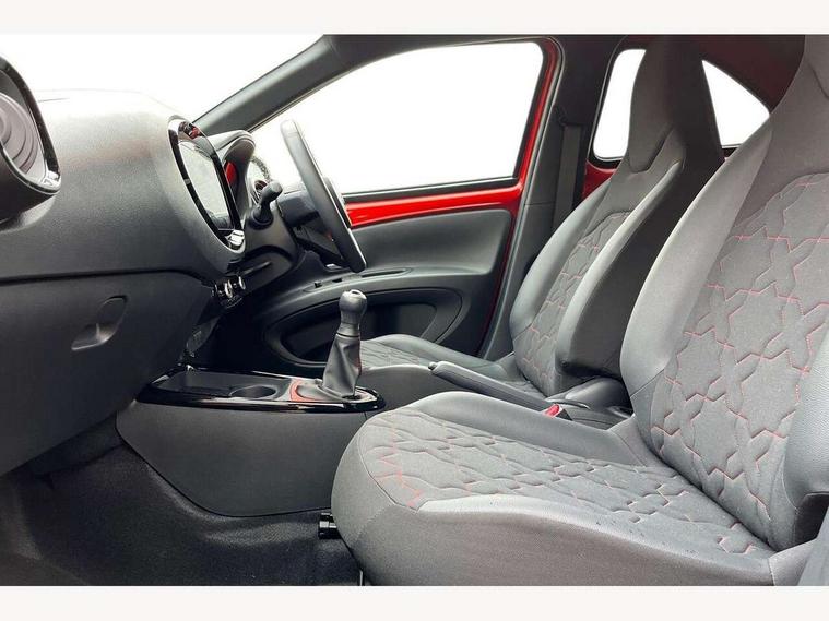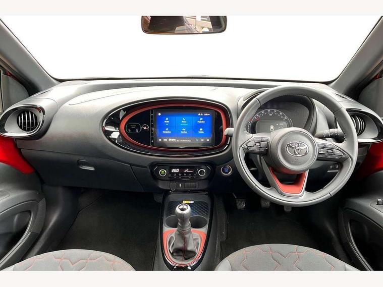 4.2" TFT colour screen, Adjustable speed limiter, Analogue speedometer, Bluetooth connectivity, Digital tachograph, Driver attention alert system, eCall emergency call system, Electric power steering, Front and rear parking sensors with auto brake, Intersection turn assist, Key reminder warning, Noise reduction kit, Pre collision system with emergency steering assist, Remote boot door release on key, Reversing camera with static guide lines, Smart entry and push button start, Speed limit display, Start and stop, Wireless charger, Wireless Smartphone Integration includes Apple CarPlay and Android auto, Vehicle Stability Control (VSC), 4 speakers, 9" HD multimedia display touch screen with Toyota smart connect, DAB digital audio broadcast, USB connector, Auto headlights, Auto wipers, Automatic headlights cut-off, Automatic high beam On/Off switch, Bicycle towing hook, Black fog light surrounds, Black side protection mouldings, Black wheel arch mouldings, Body colour door handles, Body coloured front bumper, Boot door scuff plate, Eclipse black rear bumper, Electric heated door mirrors, Follow me home headlights, Front and rear underruns in silver, Front fog lights, Front power windows, Gloss black door mirrors, Gloss black upper front grille, Headlight cut-off reminder, LED daytime running lights guide, LED front light guide, LED High mounted stop lamp, LED projector headlights, Manual day/night rear view mirror, Manual headlight levelling, Pagoda roof, Power adjustable door mirrors, Power back door, Privacy glass, Rain sensor, Rear combination lights LED bulb type, Rear side wing doors, Rear windscreen defogger, Rear windscreen wiper, Remote hazard lights system, Short antenna, Variable intermittent windscreen wipers, 12v power outlet - front, 2 seat bench in 2nd row, 3 spoke leather steering wheel, 50/50 split folding rear seat, Adhesive roof headlining, Adjustable speed limiter switch on steering wheel, Audio and telephone switches on steering wheel, Auto air conditioning, Black roof lining, Body colour satin anodised insert on steering wheel, Boot light, Centre room light, Chrome interior door handles, Chrome surround on air conditioning buttons, Clean air filter, Console box storage, Floor mats, Front and rear cup holders, Front head rest deco art, Front head restraints, Height adjustable driver seat, Intelligent adaptive cruise control switch on steering wheel, ISOFIX child restraint system on rear seats, Lane departure alert switch on steering wheel, Leather gearshift knob, Light blue ambient lighting in centre console, Manual tilt steering wheel, Manually reclining and sliding driver seat, Manually reclining and sliding front passenger seat, Multimedia switches on steering wheel, Partial synthetic leather upholstery, Pollen filter, Rear door pockets, Rear head restraints, Satin silver insert on gear shift knob, Single compartment glovebox with lights, Single front passenger seat, Soft tonneau cover, Sun visors with mirror on driver and passenger side, Voice recognition switch on steering wheel, Toyota safety sense pack - Aygo X, Anti lock braking system + Electronic brake force distribution, Child safety door lock, Emergency brake light signal (EBS), Hill start assist control (HAC), Passenger airbag on/off switch, Seat belt reminder for front and rear seats, Supplement restraints system (SRS) - 6 airbags, Traction control, Tyre pressure warning system, Immobiliser, Remote power door locks, Black wheel centre caps, Tyre repair kit,