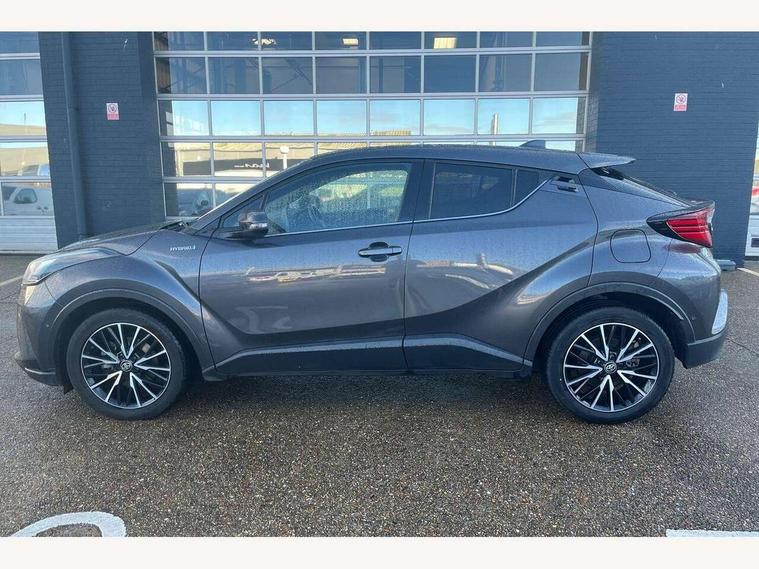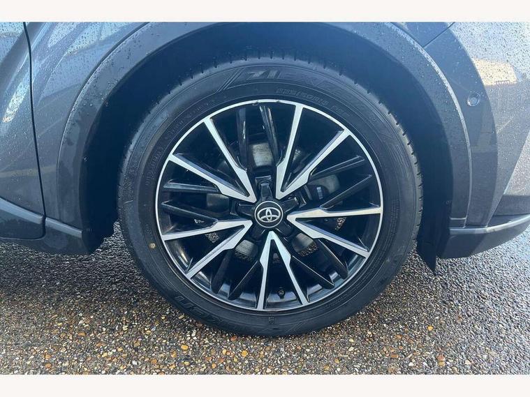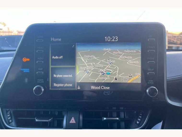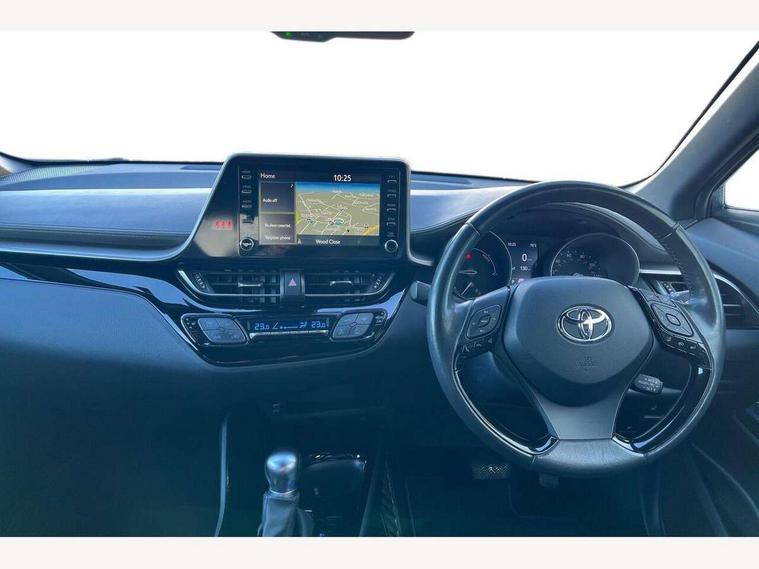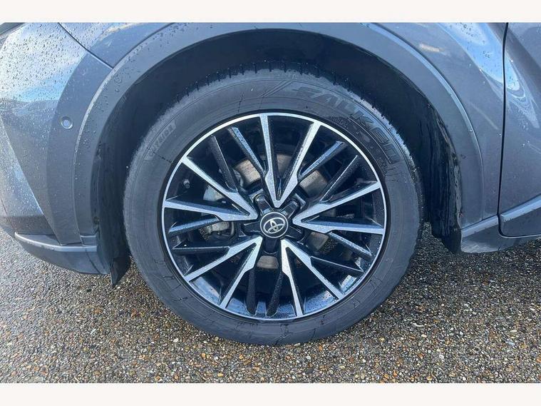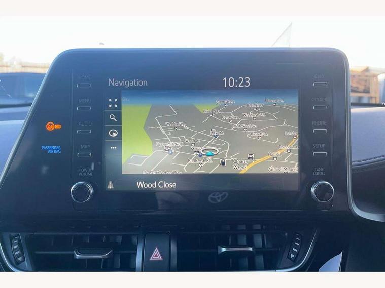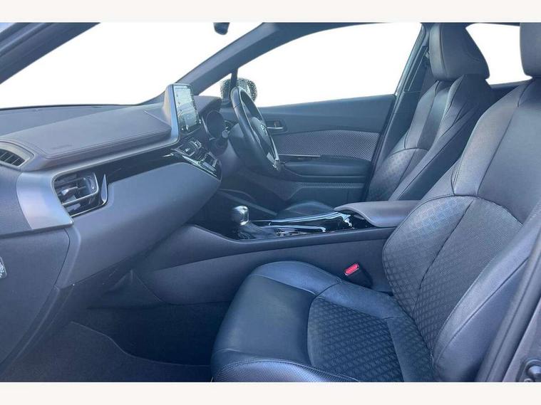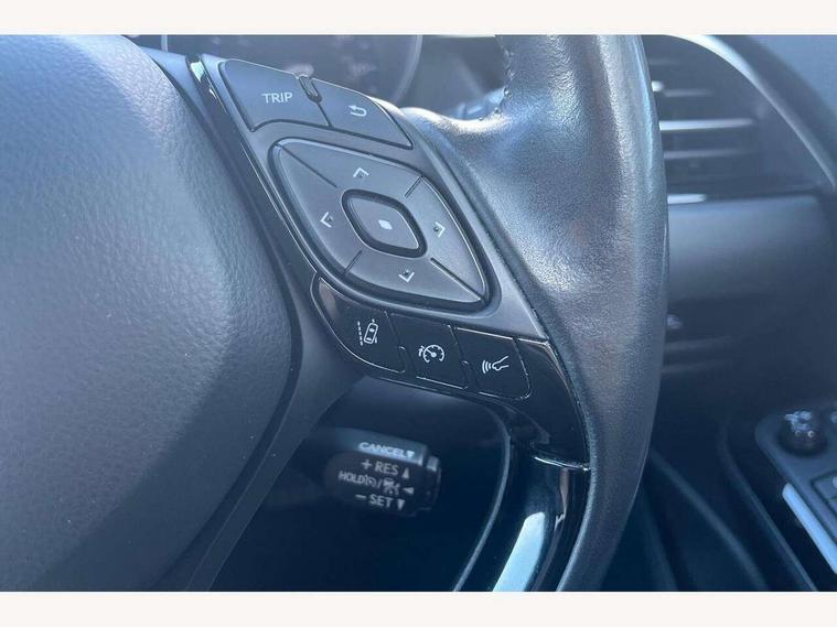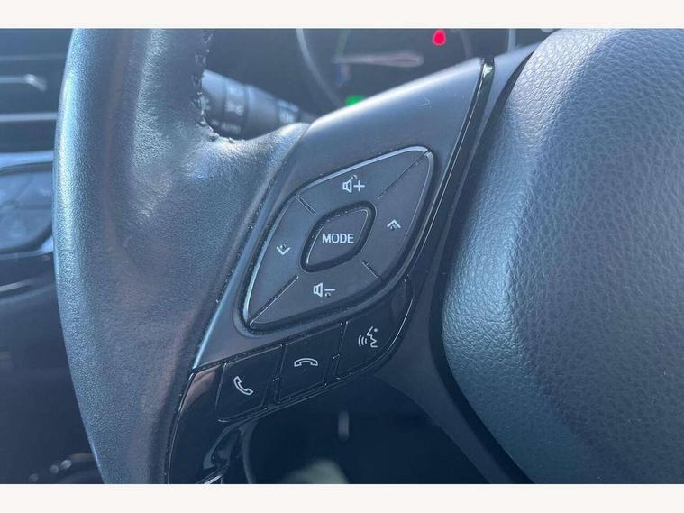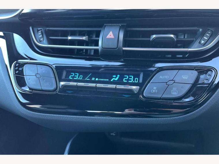 4.2" coloured TFT screen for multi-information display, Adaptive cruise control, Bluetooth connectivity, Electric power steering, Hybrid system indicator, Lane departure alert with steering control, Remote boot door release in cabin, Remote boot door release in key, Reversing camera, Road sign assist - RSA, Simple Intelligent parking assist, Touch 2 Go navigation system, Trip computer, Voice recognition, Vehicle Stability Control (VSC), 6 speakers, Aux connectors + 12V front outlet, DAB Radio (Digital Audio Broadcasting), Toyota touch 2 multimedia system with 8" display, USB connector integrated with radio and CD player, Wi-fi connectivity, Adaptive front light system, Adaptive LED Headlights, Anti-jam protection on power windows, Auto high beam, Auto up and down function on all power windows, Automatic headlight levelling, Automatic headlights, Automatic headlights cut-off, Black and body coloured rear bumper, Black front bumper, Black upper front grille, Body colour door handles, Body colour door mirrors, Boot door release with push button, Electric heated door mirrors, Follow me home headlights, Front and rear power windows, Front spoiler, Hard tonneau cover, Honeycomb lower front grille, LED daytime running lights, LED fog lights, LED front light guide, LED High mounted stop light, LED rear brake lights, LED rear combination lights, Noise reduction layer on front windows and windscreen, Power adjustable door mirrors, Privacy glass, Rear spoiler, Rear tailgate, Rear window defogger, Rear window wiper, Shark fin antenna, UV-filter on driver and passenger windows, UV-filter on rear windows, 12v power outlet - front, 3 rear headrests, 3 spoke leather steering wheel, 60/40 split folding rear seat, Adjustable rear headrests, Adjustable speed limiter switch on steering wheel, Assist grips front and centre pillar, Audio and telephone switches on steering wheel, Black front door assist grips, Blue ambient lighting on front cup holders, Blue ambient lighting on front doors, Boot light, Chrome interior door handles, Driver and front passenger personal light, Driver and front passenger Whiplash Injury Lessening seats, Driver and passenger seatback pockets, Dual zone automatic air conditioning, Front cupholders, Front head restraints, Front sports seats, Glovebox with internal light, Heated driver and front passenger seats, Heated steering wheel, Hooks for luggage holding net, Humidifying Nanoe air purifier, Illuminated entry system, Isofix attachments on rear seats, Leather gearshift, Light on driver sun visor, Light on passenger sun visor, Manual telescopic steering wheel, Manual tilt steering wheel, Microphone on front personal light, Mirror on driver sun visor, Mirror on passenger sun visor, Multimedia switches on steering wheel, Pollen filter, Power adjustable lumbar support on driver seat, Power tilting cushion on driver seat, Shopping bag hooks, Slow opening on lower glovebox, Voice recognition switch on steering wheel, Leather pack - C-HR, Tech with parking sensor pack - C-HR, 16 Disk front wheel brake, 3x3 point rear seatbelts, ABS+EBD+Brake assist, Electronic parking brake, ESP + traction control, Front and rear seatbelt reminder, Front passenger airbag on/off switch, Hill start assist control (HAC), Pre collision system with pedestrian detection, Pre-tensioners and force limiters, Rear door child safety locks, SRS Airbags - Driver + Front passenger, front side, front and rear curtain and driver's knee airbags, Toyota safety sense, Tyre pressure monitoring system, Glass-breaking alarm sensors, Immobiliser, Intrusion alarm, Intrusion sensor, Motion sensor alarm, Power door locks, Power passenger window lock, Remote central locking, Remote door lock, Black lower dashboard, Black lower driver dashboard, Dark brown upper dashboard, Piano black console, Silver deco line on upper dashboard, Tyre repair kit,