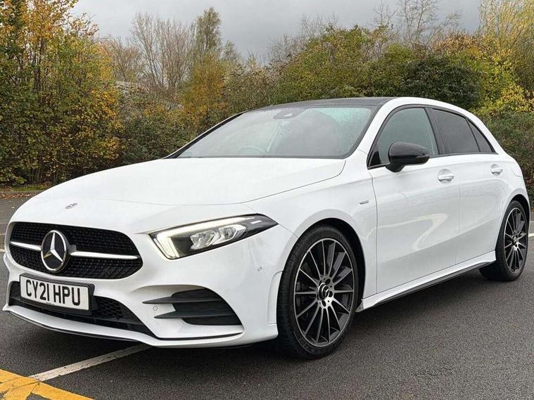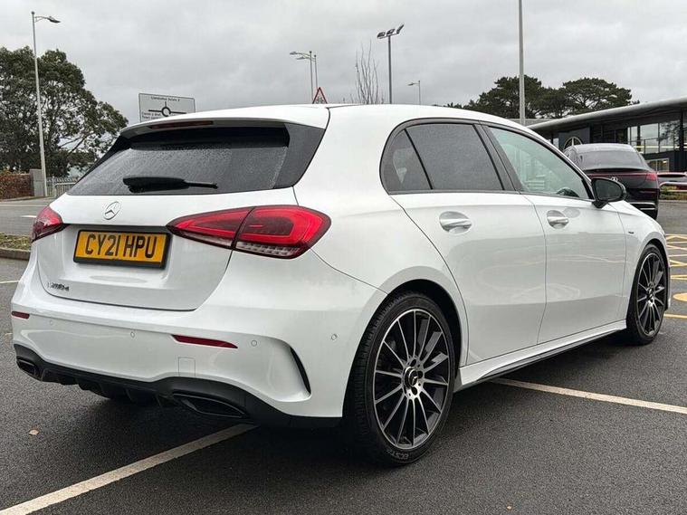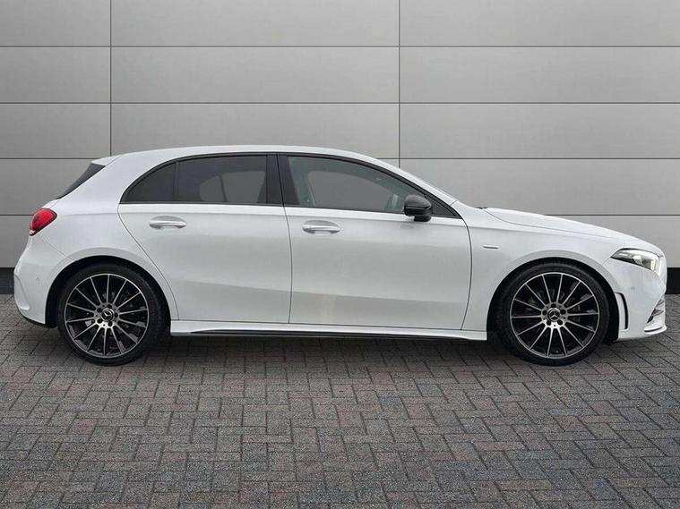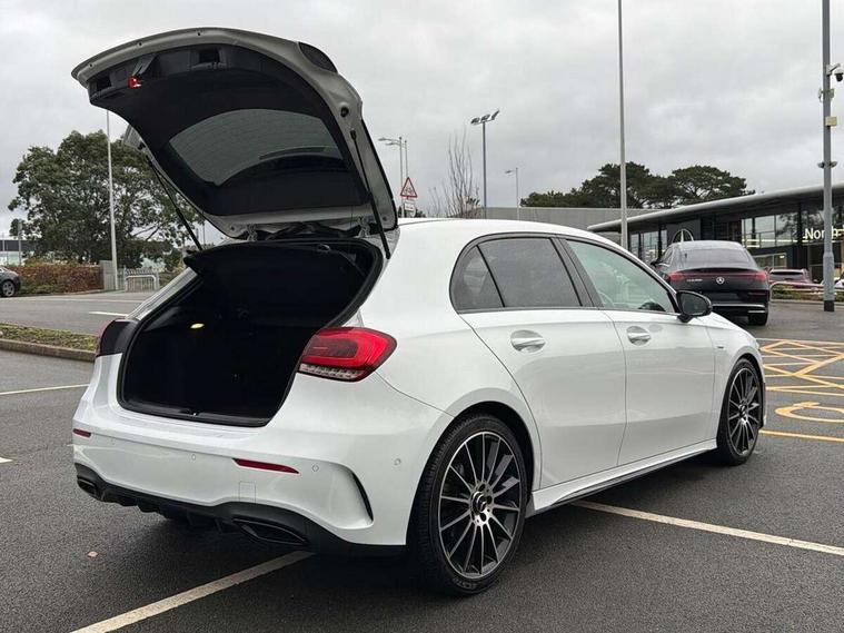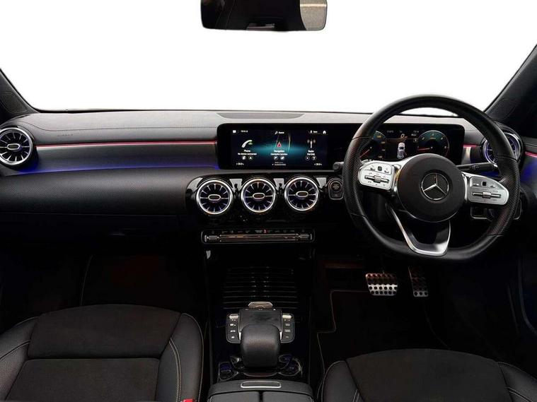 10.25" Digital instrument cluster display screen, 10.25" media display, 180 degree rear view camera with parking guidelines, Active parking assist with visual and audible warning of detected obstacles, Attention assist, Brake pad wear indicator warning light, Car wash mode, Cruise control + speed limiter, Direct steering, Dual bluetooth interfaces, DYNAMIC SELECT with a choice of driving modes (ECO, Comfort, Sport and Individual), ECO start/stop function, Fluid level warning indicator for fuel, oil, coolant and washer fluid, Hard-disk navigation, Hey Mercedes Voice activation, Lamp failure indicator, Mercedes me connect including emergency call system, accident recovery, breakdown and maintenance management, Mercedes me remote services, Outside temperature gauge, Owners manual in English, Pre-installation for private car sharing, Preinstallation for Mercedes Benz link, Service indicator (ASSYST), Smartphone integration with Apple CarPlay and Android auto, Speed limit assist, Speed sensitive power steering, Trip computer, Ultrasonic sensors positioned in the front and rear bumpers, Wireless charging, Lowered comfort suspension, Rear axle torsion beam, 2 USB ports (type C) in rear stowage compartment and one in front of center console, 6 speakers, MBUX multimedia system with DAB digital radio and touchpad including satellite navigation, Mercedes-Benz sound system - 100W, 4 Electric Front and Rear windows, Adaptive brake lights, Black chrome plated tailpipe trim, Body colour bumpers, Body colour door handles, Body colour side skirt, Diamond radiator grille with pins in black and black louvre, Edition badging on the front wings, Electric adjustable and heated door mirrors with integrated LED side indicators, Headlamp assist automatic headlamp activation, Heated glass rear windscreen + timer control, LED high performance headlamps with integrated LED daytime running lights, LED tail lamp, LED third brake light, Panoramic sliding sunroof, Privacy glass, Radio aerial, Rain sensing windscreen wipers with two sensitivity settings, Rear fog lights, Rear wiper, 3 Spoke flat bottom leather multi function steering wheel with perforated leather in grip area, 40:20:40 split folding rear seats, Artico man-made leather/ Dinamica microfiber upholstery, Auto Mercedes-Benz child seat recognition sensor, Black air vents with surround in silver chrome, Black roof lining, Brushed stainless steel sports pedals with rubber studs, Floor mats with black top stitching and embroidered edition logo and piping in light grey, Floor mats with stitched edging and AMG lettering, Front centre armrest with storage compartment, Front door sills with Mercedes Benz lettering, Front seat backs luggage nets, Front seat cushion length adjustment, Galvanished gear shift paddles on steering wheel, Heated front seats, Height/reach adjustable steering column, Interior lighting - 64 colour Ambient lighting, Interior mirror with reading lamps in black and frameless, Rear head restraints, Seat occupancy sensor for front passenger seat, Sports seats with integrated headrests, Stowage compartment in centre console with retractable cover, Sunvisors with illuminated vanity mirrors, Touchpad on center console, Twin front cupholders, Two zone thermotronic luxury automatic climate control, Light and sight pack - A Class, Mirror package - A Class, Night pack - A Class Exclusive Edition, Seat comfort pack - A Class, 3 rear 3 point seatbelts, ABS with Brake Assist, Active bonnet, Active brake assist includes forward collision warning system with autonomous braking, Adaptive brake assist with hold function and hill start assist, Black seatbelts, Bonnet with power domes, Childproof locks manually operated for rear doors and electrically operated for rear power windows, Crash responsive emergency lighting, Driver and passenger head and side airbags, Drivers knee airbag, Dual stage driver/passenger airbags, Electronic parking brake, ESP curve dynamic assist, ESP with ASR, Front and rear seatbelt reminder, ISOFIX and top tether child seat fixing points in two outer rear seats, Tyre pressure monitoring system, Warning triangle and first aid kit, Window airbags, Alarm system/interior protection/immobiliser, Keyless Go, Remote central locking and crash sensor with emergency opening function, Urban guard vehicle protection system with immobiliser and interior protection, Light longitudinal grain aluminium trim painted, 19" AMG multi spoke light alloy wheels painted in titanium grey with high sheen finish, Summer tyres, Tirefit sealant kit,