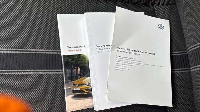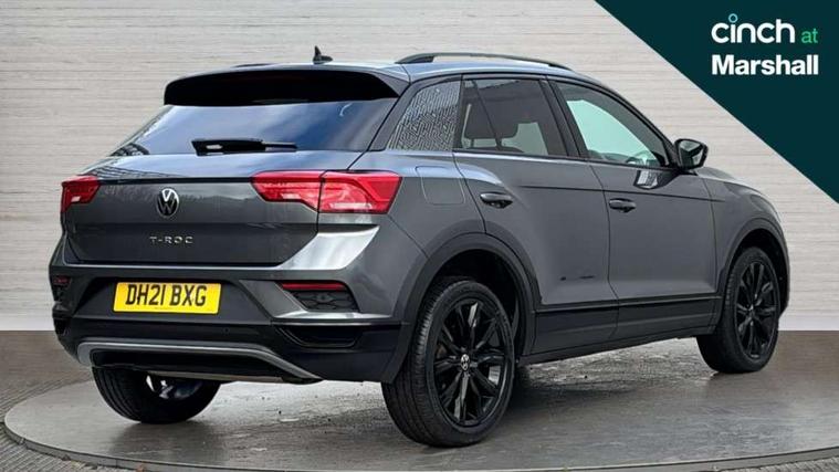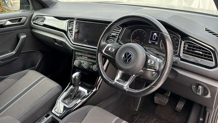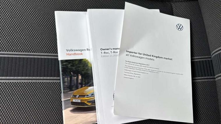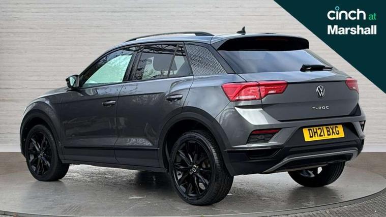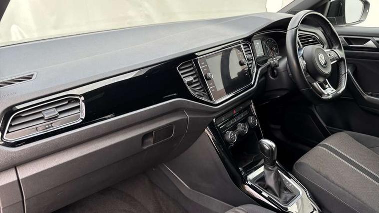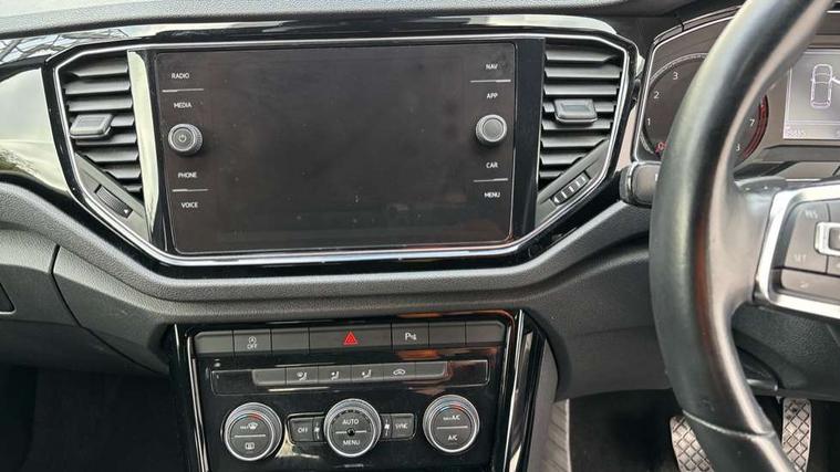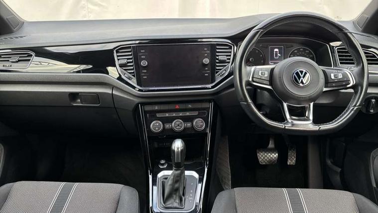 'Lights On' Reminder warning buzzer, Adaptive cruise control, Bluetooth telephone and audio connection for compatible devices, Car information display, Driver tips and journey analysis, Emergency call service, Lane assist with warning text instrument cluster, Modified key software - reduce switch off time for key status change to Long no motion, Multifunction camera, Multifunction computer with visual gear change recommendation for fuel consumption, Service interval indicator, Think blue trainer driver tips and journey analysis, Warning sound and light for doors and tailgate open, Warning sound and light for front seatbelts unfastened, Wireless app connect for apple carPlay, Battery regeneration during braking, Start/stop function with battery regeneration, DAB Digital radio, Diversity antenna for FM reception, Multi device interface (MDI) with USB connection, Music playback - MP3, WMA and AAC files, Premium USB cable in choice of either Apple or Android smartphone compatibility, SD card slot, Simultaneous pairing of 2 compatible mobile devices, Single CD player, glovebox mounted, SMS functionality - read, compose and send SMS messages using touch-screen display, Storage compartment with longitudinal and height adjustable in armrest and two rear air vents, Title and cover art display, USB-C Interface and USB charging socket, Auto dimming interior rear view mirror, Automatic coming/leaving home lighting function and daytime running lights, Automatic hazard lights activation under emergency braking, Black grained lower door protectors, Black grained wheel arches, Black roof rails, Body colour door handles, Body colour sports bumpers with silver metallic underbody fascia, Body coloured bumpers and radiator grille with chrome trim and front fog lamps with chrome bezel, Chrome trim on upper and lower radiator grille, Dusk sensor, Electrically foldable, adjustable and heated door mirrors with puddle lights and reverse activated kerb-view adjustment on passenger's door mirror, Exhaust tailpipes in black, External USB type C socket and charging sockets, Front and rear electric windows, Front windscreen wiper with intermittent wipe and 4 position delay, Fully galvanised body, Heated rear window, High level 3rd brake light, LED headlamps with automatic range adjustment and unique signature LED separate daytime running lights, LED rear number plate lights, LED tail lamp rear comination lamps, Privacy glass, Rain sensor, Rear tinted glass from B-pillar backwards approx 65% tinted, Rear wash/wipe with intermittent wipe setting, Trim strips on grille and vehicle side, Volkswagen roundel, 12V socket in centre console storage area, 3 rear head restraints, 4 load lashing points in luggage compartment, Black roof lining, Climate control - 2 zone electronic air conditioning with automatic air recirculation and allergy filter, Door and side trim panel, Drawer under drivers seat, Front centre armrest, Front cupholders x 2, Front seat back storage pockets, Glovebox, Height adjustable front seats, Height/reach adjust steering wheel, Instrument lighting, white adjustable panel illumination, Interior light in footwell, Isofix easy fit child seat preparation for 2 outer rear seats, Leather gearshift knob, Leather multi function sport steering wheel with gear change selection via paddle shift on steering wheel, LED interior light with switch off delay/dimmer and 2 front/rear LED reading lights, Load through provision with single cup holder when folded down, Luggage compartment cover, removable, Luggage compartment lighting, Split folding rear seat backrests with centre armrest, Storage compartment in left and right luggage area, Storage compartment in rear doors, Storage compartments in driver and front passenger doors, Sunvisors with illuminated vanity mirrors, White ambient lighting, Black decal on C-pillar pack - T-Roc, 3 rear three point seatbelts, ABS, Curtain airbags, Driver and front passenger safety-optimised head restraints, Drivers and front passengers airbags with passengers deactivation switch, Drivers seatbelt reminder, Electronic parking brake with auto hold, Electronic stability control (ESC) includes ASR, EDL, EDTC and trailer stabilisation function, Front assist with city emergency braking and pedestrian monitoring, Front seat side impact airbags, Predictive pedestrian protection, Rigid safety cell with front and rear crumple zones, Single tone horn, Three point height adjust front seatbelts + pretensioners, Tyre pressure loss indicator, Ventilated front and rear disc brakes, Volkswagen roadside assistance, Alarm with remote central locking and interior protection, Electronic engine immobiliser, Remote central locking with SAFELOCK, radio remote control with 2 remote control folding keys, Black decorative trims, Piano black decorative inserts in dash, centre console and door panel, 18" Arlo black diamond turned surface alloy wheels with low rolling resistance tyres and anti theft wheel bolts,