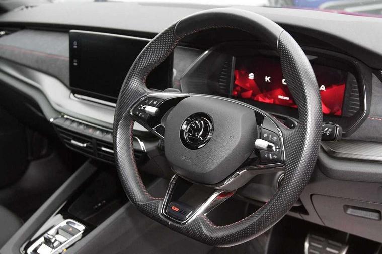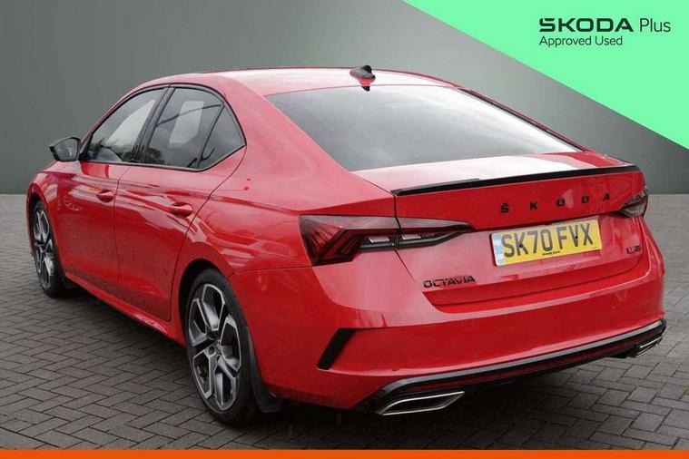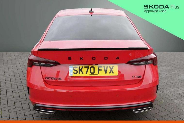 1x USB Type C port in rear view mirror (charging only), 2x USB Type C ports in rear of front centre armrest (charging only), Bluetooth system, Colour multifunction trip computer, Columbus satellite navigation with 10" touchscreen display, Drive mode selector, Front assist system, Progressive dynamic steering, Smartlink (includes android auto and mirrorlink), Speed limiter, Turn Assist, Virtual Cockpit - 10.25" digital display, Voice control system, Wireless SmartLink for Apple Car Play, Front and rear stabilizers, Sports suspension with 15mm lower, 2x USB Type C ports (for charging and data transfer), DAB Digital radio, Swing radio with 8.25" touchscreen, Aero front windscreen wipers with intermittent function, Auto dimming rear view mirror, Body colour door handles, Chrome exhaust tailpipes, Door sills with vRS logo, Electric front and rear windows, Electrically adjustable, heated and folding door mirrors with memory function, Exterior gloss black sports styling including front grille, side strip, window surrounds, door mirror and badging, Full LED Matrix headlights with AFS, rear LED lights and dynamic indicators and cornering front fog lights, Heated rear windscreen, High level third brake light, Ice scraper in fuel cap, Rain and light sensors, Rear fog light on one side, Rear privacy glass, vRS bumpers and lip spoiler, 3 rear headrests, 4 foldable roof handles, Alcantara padded dash panel with contrast stitching, Aluminium pedals, Black headlining, Chrome inner door handles, Cloth upholstery, Front centre armrest, Front head restraints, Heated front seats, Height adjustable driver and passenger seat with lumbar support, Illuminated air conditioned glovebox, Leather trimmed gearshift lever, Luggage compartment lighting x1 light, Mechanical rear seat release, Parcel shelf - folding, Satin black textured with artificial stiching in dash board pads, Sun visors with mirrors, Sunglasses storage, Textile floor mat set, Three spoke leather sports multifunction steering wheel with paddles, Ticket holder, Umbrella in door panel, Unsplit rear bench seat and split folding backrest, LED interior light pack - Octavia, 3 point front/outer rear seatbelts+pre-tensioners, Alarm with interior monitoring, tilt sensor and back up horn, Automatic door unlocking in case of crash, Automatic fuel cut off in case of crash, Automatic warning lights in case of emergency braking, Drivers knee airbag, Electronic parking brake, Emergency call and proactive services, ESC including ABS, EBV, MSR, ASR, EDS, HBA, DSR, Front and rear disc brakes, Head and curtain airbags, Hill hold control, Hill start assist, ISOFIX on front passenger seat and outer rear seats, Passenger airbag deactivate switch, Red brake calipers, Two tone horn, Tyre pressure monitor, Visual and acoustic seat belt reminder, Warning reflectors in front door, Door locks with immobiliser, Keyless entry and start/stop including rear doors, Remote central locking, Carbon optic decorative inserts, Gloss black air vent surrounds, 19" Altair anthracite alloy wheels,