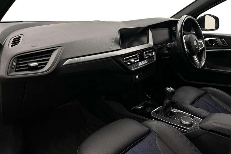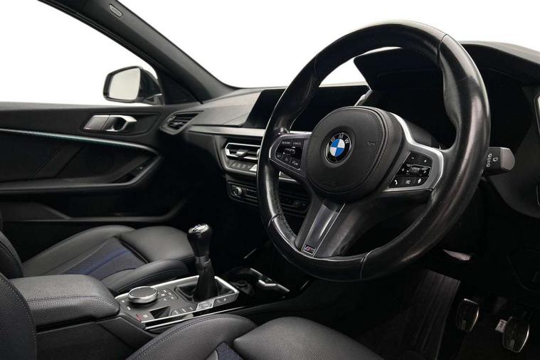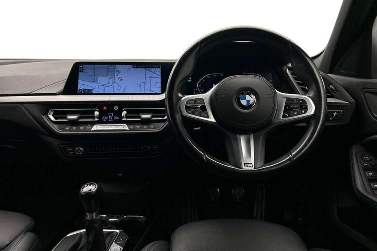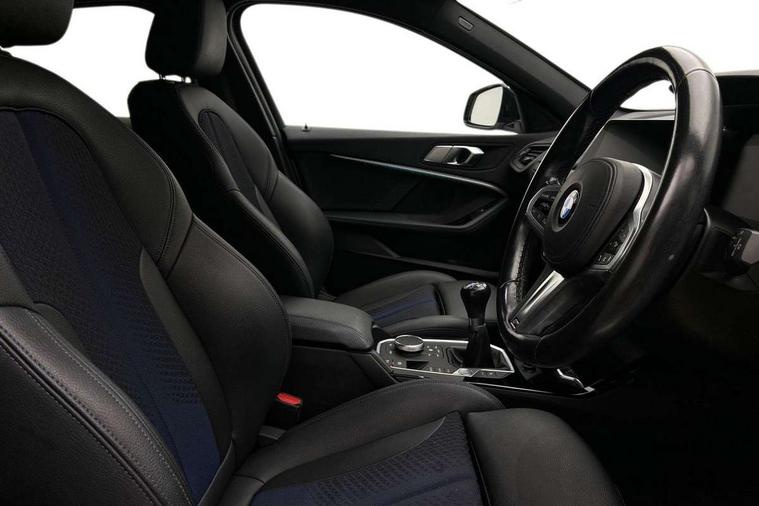 Active guard plus, Attentiveness assist, Bluetooth / WiFi interface for wireless connection of mobile terminal devices and audio streaming, BMW ConnectedDrive online services, BMW Teleservices, Check Control warning system for monitoring of lights and door/luggage compartment open warning, Cruise control with brake assist, Eco pro mode, Front axle single joint with specific axle kinematics to minimise drive influences on steering + provide increased rigidity agile driving behaviour, Integrated owners handbook, Lane departure warning system, Oil sensor for level and grade, On board computer, Optimum shift indicator, Personal Profile, Pull away assistant, Rigidly mounted rear subframe - Multi link construction with separate spring / damper configuration and excellent driving characteristics, Speed limit Info including no-overtaking indicator, Speed limiter, Aluminium lightweight construction, Anti roll bar front and rear, Balancer shaft, Double VANOS twin scroll turbocharging system, Drive Performance Control, Electronic differential lock, High precision injection, M sport suspension, Petrol Particulate Filter, Twin tube gas filled shock absorbers with degressive characteristic curve, VALVETRONIC engine management, DAB Digital radio, Auto dimming rear view mirror, Automatic headlight beam throw control, Automatic windscreen wipers and automatic headlight, Body colour door handles, Body colour mirror caps, Body colour roof trims, Chrome 'M' logo side designation, Chrome exhaust twin tailpipes round 90mm in left, Chrome kidney grille frame with Satin Aluminium struts, Direction indicator side lights in exterior mirrors, Fading support, Folding side mirrors with auto dimming/folding wing mirrors with auto dimming, Follow me home headlights, Front and rear bumper system with replaceable deformation elements, Front and rear electric windows with open and close fingertip control, anti trap facility and comfort closing, Front door sill finishers in black plastic with M designation in metallic look, Green tinted heat protection glazing, Heated, electrically adjustable exterior mirror aspheric on driver side, convex on passenger side, High gloss shadowline window frame, Recess cover mirror frames and B/C pillar embelisher trim, High level third brake light, Integrated front windscreen with washer jets, LED daytime running lights, LED eyebrow turn indicators, LED front fog lights, Lightweight engineering, Matt black air guide grilles, Matt black wheel arch trim, Model designation on electric bootlid, Nearside reverse light in rear light cluster, Preparation for high beam assistant, Rear fog lights, Rear side wing doors, Rear window wiper, Shark fin antenna, Trailer stabilisation logic, Visible VIN plate, Welcome lighting, 12V power socket in front centre console with blanking plug, 3 rear seat head restraints, 3 seat bench in 2nd row, 3 spoke sports leather steering wheel in black leather with black stitching and decorative finisher in pearl chrome, specific M badge + leather knob, Ambient interior lighting, Anthracite headlining, Black boot net with lashing eyes, Cargo function on 2nd seat row, Child seat ISOFIX attachment for two outer rear seats and front passenger seat with anchorage points, Conditioned based service, Driver and front passenger seat heating, Folding rear clothes hook, Four grab handles integrated in roof lining, Front and rear door pockets with bottle holders, Front and rear side armrest integrated into door trim, Front armrest, Front sports seats, Gearshift lever with M designation, Glove compartment, Height adjustable front head restraints, Luggage compartment for bag hooks on left and right, foldable luggage compartment liner and four lashing eyelets, Manual adjust steering wheel, Multi-function controls for steering wheel, Single front passenger seat, Storage compartment in centre console, Sun visors with vanity mirrors and insert tab, Two front centre console cupholders, Two zone automatic air conditioning, Velour floor mats, Additional interior lighting pack - 1 Series, BMW live cockpit professional pack- 1 Series, Connected pack professional - 1 Series, Interior lights pack - 1 Series, M Sport exterior styling aerodynamics pack - 1 Series, 2 tone horn, 3 point seatbelts on all seats, front pyrotechnic belt tensioners, stopper and belt force limiters, rear coded belt buckles, Airbags - Front driver/passenger, front and rear curtain head protection, front side, manual deactivation of front passenger airbag, Anti lock braking system (ABS) with brake assist, BMW emergency call, Brake drying, Braking readiness, Child proof locking system in rear door, City braking function, Comfort modes, Cornering brake control, Crash sensor activating central locking release, hazard warning lights, fuel cut off, interior lighting + activation of safety battery terminal clamp, Driver and front passenger seat belt security check, Dynamic stability control + (DSC+), Dynamic Traction Control - DTC, Electrically operated hand brake, Front and rear disc brakes, Seatbelt warning, Side impact protection, Tyre pressure monitoring system, Warning triangle and first aid kit, Central locking switch for all doors, fuel filler cap and luggage compartment, Deadlocking function system to all doors, Drive away locking system on all doors and luggage compartment with de-activated in iDrive settings, Locking wheel bolts, Remote control with integrated key with High-gloss Black inlay and M designation and 1 button for open/ close lock, window, open luggage compartment, Start/stop button illuminated in centre console with keyless engine start and auto start stop deactivation button, Thatcham Cat.1 alarm and immobiliser, Wheel slip limitation close to the actuator (ARB), Contrast stitching on instrument panel, Electrically powered 12V compressor, Reduced rolling resistance tyres,