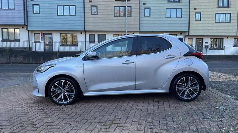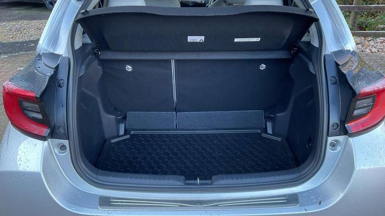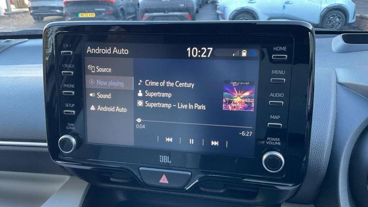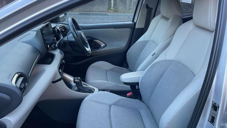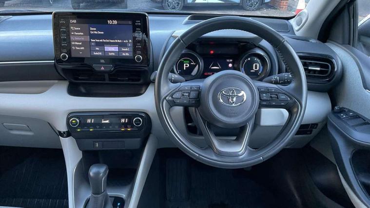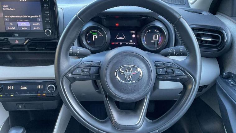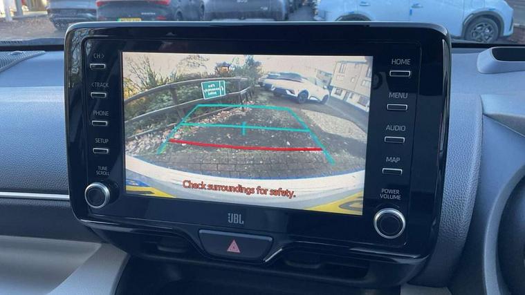 Adaptive cruise control, Adjustable speed limit with speed warning, Blind spot monitoring, Bluetooth connectivity, Colour binocular inspired displays with digital speedometer, E-call, Electric power steering, Front and rear parking sensors with intelligent clearance sonar and automatic braking, Hybrid energy display, Multi information display switches on steering wheel, Reversing camera, Smartphone integration with Apple CarPlay and Android auto, Vehicle Stability Control (VSC), 6 speakers, 8" Multimedia display touch screen, USB connection, Acoustic windscreen glass, Auto windscreen wipers, Automatic headlights, Automatically retractable door mirrors, Body coloured door mirrors, Electric adjustable heated door mirrors, Follow me home headlights, Front auto power windows with anti jam protection, Full LED rear lights, LED daytime running lights, LED front fog lights, LED Headlights, LED High mounted stop lamp, Painted front grille, Rear auto power windows with anti jam protection, Rear privacy glass, Rear spoiler, Satin lower front grille, Shark fin antenna, Turning signal integrated indicators in door mirrors, 3 adjustable rear headrests, 3 spoke leather steering wheel, 60/40 split folding rear seat, Active headrests, Adjustable boot height, Coat hooks in rear grab handles, Cup holders (2 front & door), Data Communication Module (DCM) connected services, Dual zone automatic air conditioning, Fabric seat with partial synthetic leather upholstery, Front armrest, Front sport seats, Glovebox, Height adjustable driver's seat, Height adjustable passenger seat, Isofix seat fixing, Leather gearshift, Map pockets on the backs of the front seats, Pollen filter, Shopping bag hooks, Tilt/telescopic steering column, 3 point seatbelts on all rear seats, ABS+EBD+Brake assist, Electronic parking brake, Emergency brake light system (EBS), Front passenger airbag on/off switch, Front seatbelt reminder, Hill start assist control (HAC), Rear child proof door locks, Rear seat belt reminder, Supplemental Restraint System (SRS) 8 airbags: Driver & passenger's airbags, dual side curtain airbags, side impact airbags, front centre airbag, Toyota Safety Sense 2, Precollison + Night time Pedestrian & Cyclist Detection, Lane Trace Assist, Auto High Beam, Intelligent ACC & Road Sign Assist, Tyre pressure warning system, Alarm/immobiliser, Keyless smart entry with push button start, Remote powered central double locking doors, Satin chrome interior styling, Soft touch instrument panel, Space saver spare wheel,