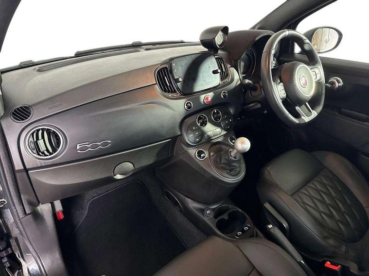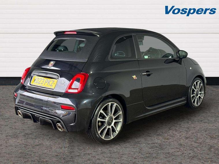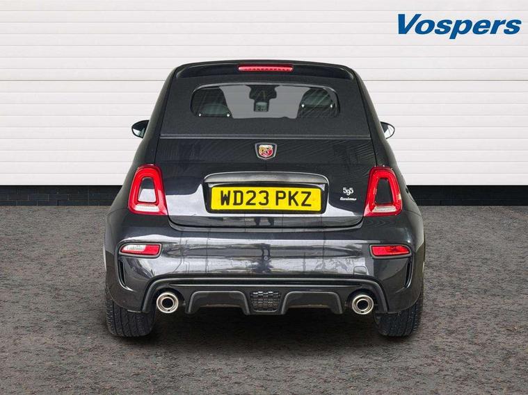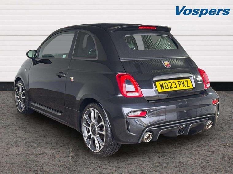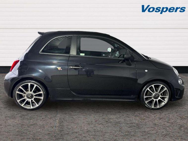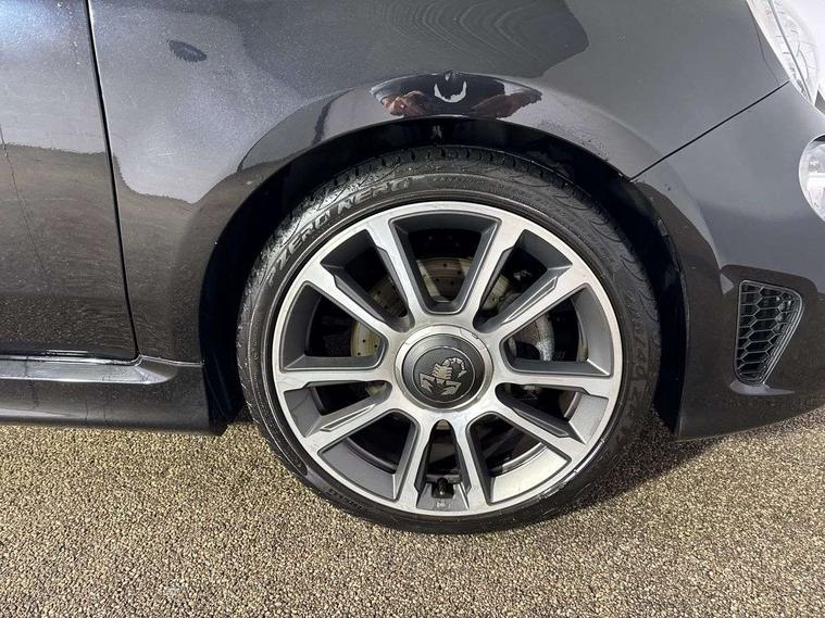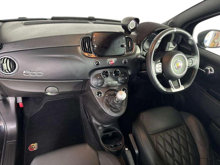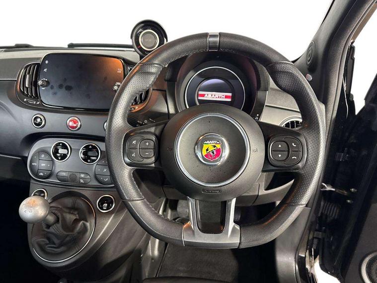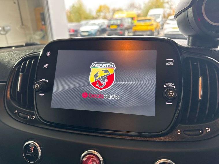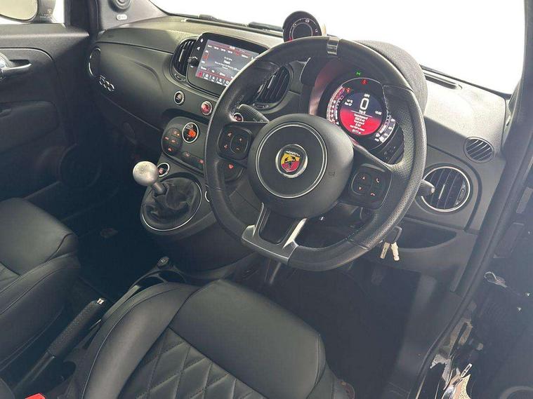 7" TFT instrument display with sports mode, Apple car play/Android Auto, Dualdrive PAS, E-call, Garrett turbo, Odometer, Rear parking sensors, Sports button, Trip computer, Wakeup screen for 7" radio, Koni front and rear suspension with Frequency Selective Damping technology, Torque transfer control (TTC), 6 speakers, Uconnect radio, Black front and rear bumper inserts, Dark tinted rear quarter windows, Dusk and rain sensors, Electric front windows, Electrically adjustable and heated door mirrors, Electrically operated soft top, Front fog lights, LED daytime running lights, Oil cap with key, Partial cellophane wrap, Rear boot, Rear window defroster, Satin chrome details (Front/rear mouldings, door handles), Third brake light, Twin exhausts with satin steel tailpipes, 12V socket, Abarth sport seats, Aluminium gear knob, Double rear seat, Driver/front passenger seat height adjustment, English handbook, Floor mats, Front head restraints, Glovebox, Height adjustable steering wheel, High performance BMC air filter, Interior stowage net, Leather cockpit, Matt black dashboard, Rear headrests, Single front passenger seat, Sports steering wheel in leather and Alcantara with carbon fibre detailing, Stainless steel pedal covers, Tar cold grey mirror caps + door handles, Style pack - 595/595C, Tech pack - 595/595C, Turismo Kit pack - 595/595C, 2 x 3-point rear seat belts, 240x11 mm Drilled rear brake discs, 284x22 mm Drilled and ventilated front brake discs, ABS, Driver and passenger airbags, Drivers knee airbag, ESP + ASR/MSR + HBA + Hill holder, Front and rear brake calipers, Front side airbags, Head protecion side airbags, Tyre pressure monitoring system, Window airbags, Alarm, Central locking, Immobiliser, Remote central locking, Satin grey dash trim, Fix and go kit,