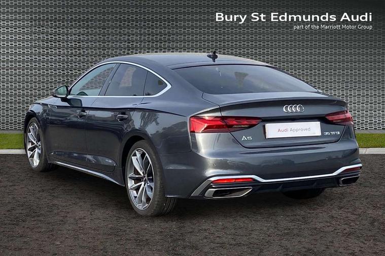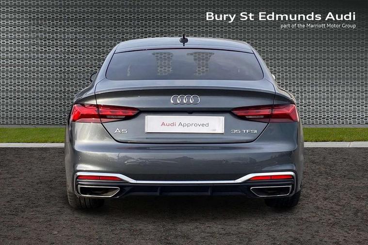 Audi connect safety and service (e-call), Audi connect with Amazon Alexa Integration, Audi drive select (Auto, Comfort, Dynamic and Individual), Audi parking system plus with front and rear sensors, Audi smartphone interface, Audi virtual cockpit - 12.3" full colour digital instrument cluster, vehicle/engine speed, Radio/media information+Driver assistance systems, Automatic start-stop system with coasting functionality and efficiency programme, Bluetooth interface, Electro-mechanical power steering, Email, calendar and text messages displayed via MMI, MMI nav+ with MMI touch - 10.1" high resolution MMI display, touch sensitive, 3D map, route/country info, dynamic route guide, personal route assist, Power operated tailgate, Rear view camera, Service interval indicator, Voice control system, Sports suspension lowered by 23mm, 8 passive loudspeakers, CD player, DAB digital radio reception, Two additional USB ports for rear passenger in rear centre console, Two SDXC card slots, Audi matrix LED headlights with LED rear lights + dynamic front and rear indicators, Auto dimming door mirrors, Auto dimming rear view mirror, Body colour bumpers, Body colour door handles, Body colour front spoiler lip, Body colour side sill trim, Body coloured door mirrors, Electric adjustable heated door mirrors, Electric folding door mirrors, Electric front windows, Front fog lights, Honeycomb structure radiator grille in grained matt black, Kerb-view function for passenger side, LED daytime running lights, LED side indicator lights integrated into door mirrors, LED third brake light, Matt aluminium silver tailpipe trim, Privacy glass, Rain and light sensors, Rear side wing doors, S line badges on front wings, S line front and rear bumpers with side skirts, S Line rear diffuser in matt titanium black with trim strip in matt aluminium silver, Side air inlets in grained matt black with matt aluminium silver inlay, Variable front intermittent wipers, Windscreen with acoustic glazing, 3 seat bench in 2nd row, 4 way electric lumbar support for driver and front passenger, 40/20/40 split folding 3 seater rear bench seat, Adjustable steering column, Black cloth headlining, Black perforated leather gearknob, Contrast stitching on seats, steering wheel and gear lever gaiter, Deluxe 3 zone electronic climate control, Front centre armrest, Front head restraints, Front/rear floor mats, Heated front seats, Illuminated door sill trim with S logo, ISOFIX child seat mounting and top tether, Luggage compartment mat, Manual seat adjustment, Rear centre armrest, Rear headrests, Single front passenger seat, Stainless steel pedals, Sunvisors with vanity mirrors, LED interior light pack - A5/RS5, 3x3 point rear seatbelts, 6 airbags - Driver, front passenger, curtain and side airbags, Electromechanical parking brake, Electronic Stabilisation Control (ESC) including ABS, ASR and EDL, Front passenger airbag deactivation, Height adjustable front seatbelts, Hill hold assist, Manual child lock in rear doors, Multi collision brake assist, Pop-up bonnet for pedestrian protection, Pre sense city, Seatbelt monitoring, Tyre pressure warning, Variable restraint system, Warning triangle and first aid kit, Anti theft alarm system, Anti theft wheel bolts, Immobiliser, Keyless Go, Remote central locking, Matt brushed aluminium inlays, Tool kit, Tyre repair kit,