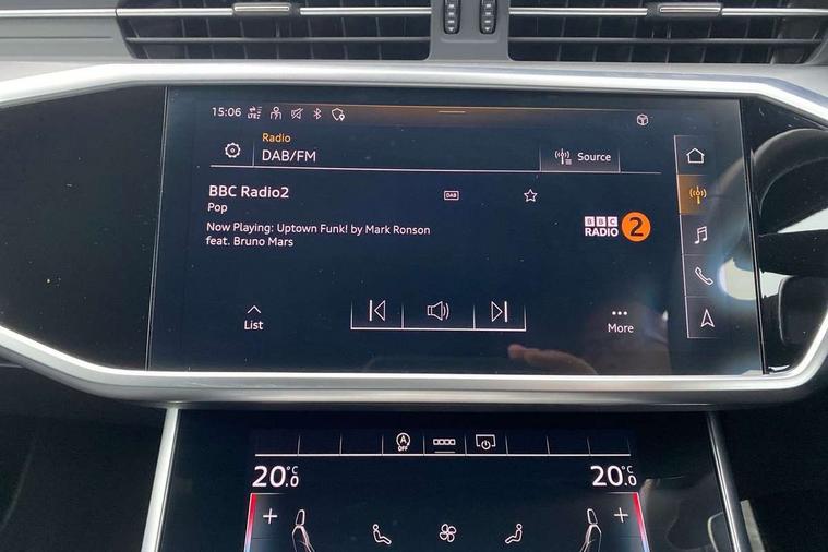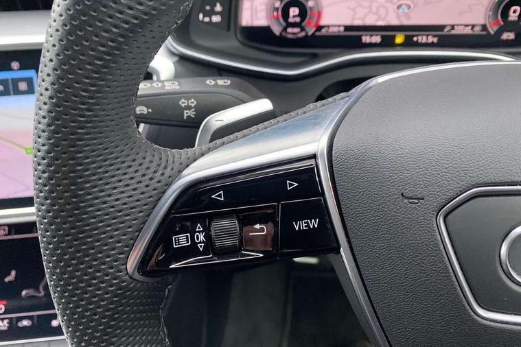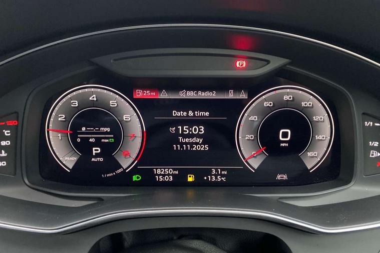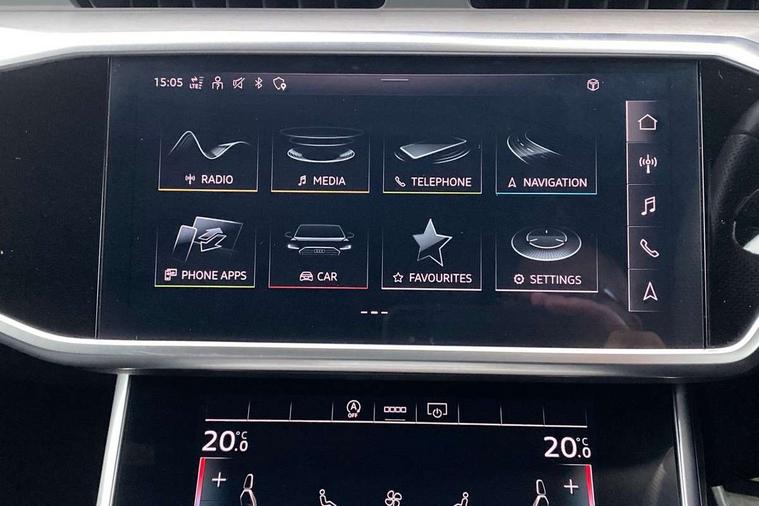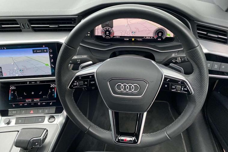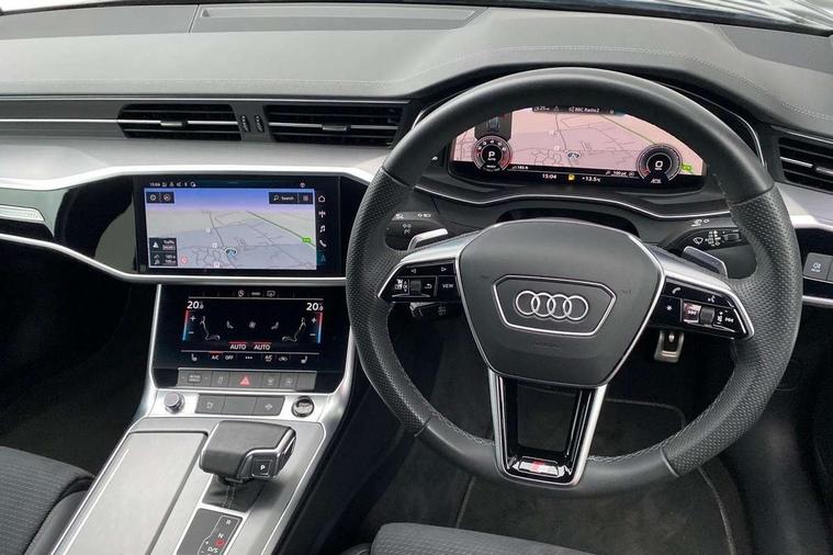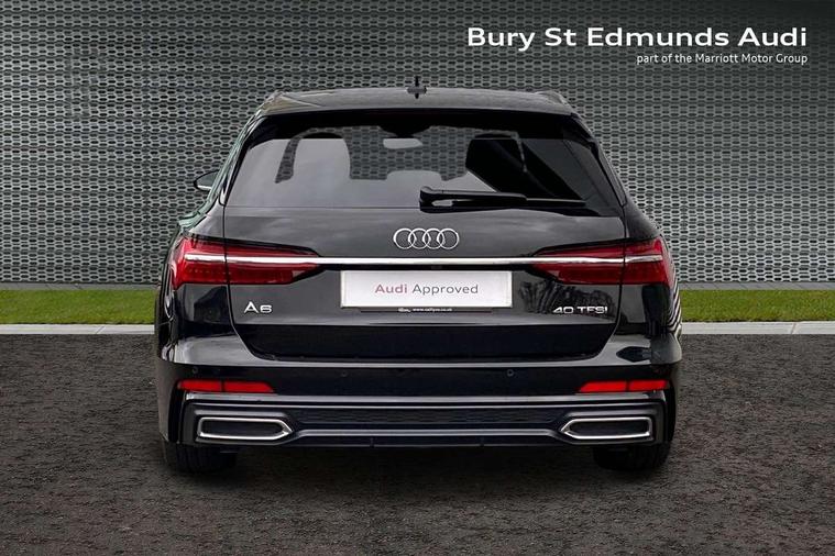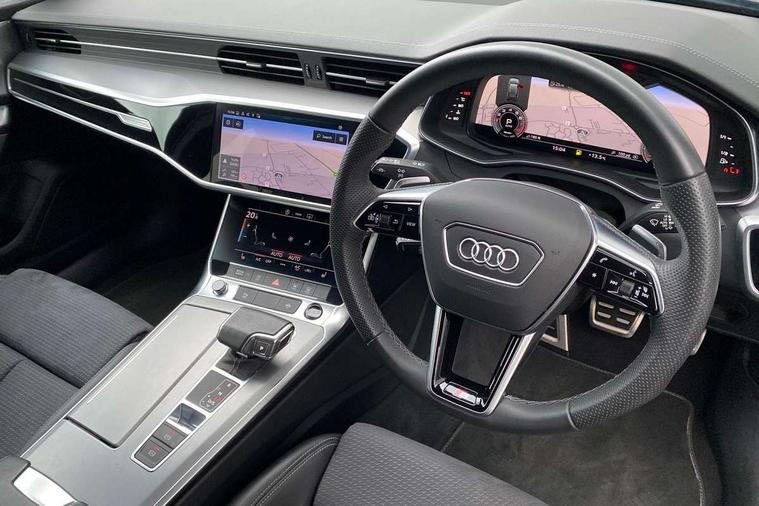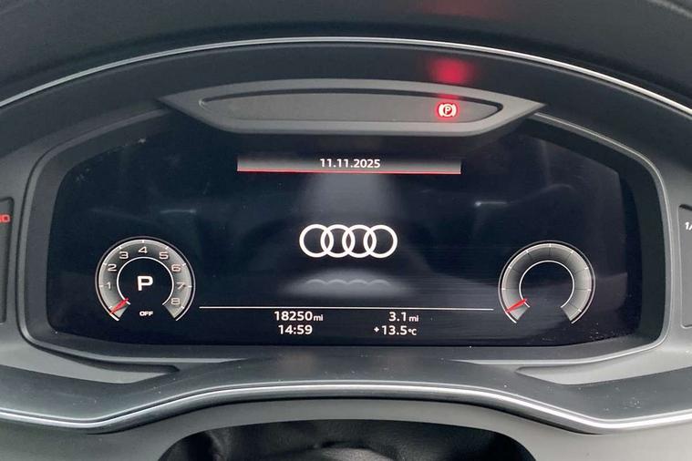 7" high resolution colour driver information display system, Audi connect safety and service (e-call), Audi connect with Amazon Alexa Integration, Audi drive select, Audi parking system plus - acoustic and visual park assist system for front and rear, Automatic start/stop system with coasting functionality, Bluetooth interface, Lane departure warning system, Power operated tailgate, Progressive steering, Rear view camera, Service interval indicator, Smartphone interface includes wireless Apple carplay/Android Auto, Voice control system, Sports suspension, Audi front music interface, Audi sound system, Auxiliary input socket, DAB Digital radio, USB connection, Aluminium roof rails, Body coloured door mirrors, Electric front/rear windows, Frameless auto dimming interior rear view mirror, Front intermittent wipers, Headlight washers, Heat insulating darkened glass in side and rear windows, Heat insulating glass in windshield, LED signature front daytime running light, LED third brake light, Matrix LED headlights, Matt black side air intake grille with inlay in matt aluminium, Privacy glass, Radiator grille in anthracite black matt, single frame in chrome and horizontal struts in matt aluminium silver, Rain and light sensors, Rear side wing doors, Rear wiper, S line air inlet design with inlay in matt aluminium, S Line badge on front fender, S Line front and rear bumpers, S line rear diffuser and grille in matt black with matt aluminium tailpipes, S Line roof edge spoiler, S Line side skirts, Signature rear LED light design, 2 zone deluxe electronic climate control, 4 way electric lumbar support for driver and front passenger, 40/20/40 split folding 3 rear seat bench in 3 parts with rear centre armrest, Black cloth headlining, Black steering wheel insert, Electrically adjustable front seats with driver memory, Front centre armrest, Front head restraints, Heated front seats, Height/reach adjust steering wheel, Illuminated door sill trims with S logo, Illuminated sun visors with vanity mirrors, ISOFIX child seat mounting and Top Tether with front passenger airbag deactivation, Leather gear knob, Luggage compartment system, Perforated leather steering wheel with contrast stitching, Rear headrests, S line front and rear black carpet floor mats with contrast stitching, Single front passenger seat, Stainless steel pedals and foot rest, LED Interior Ambient Lighting Pack - A6, Non smoking pack - A6, Technology pack - A6, 3 point seatbelts on all seats, Airbags - Front side, front and rear including head, Audi pre-sense front, Black seatbelts, EBD - Electronic brakeforce distribution, Electromechanical parking brake, Electronic Stability Control (ESC) including ABS, ASR and EDL, Extended pedestrian protection measures, Manual child proof rear door locks, Seatbelt monitoring, Tyre pressure warning light, Warning triangle and first aid kit, Anti theft alarm with tow away protection, Anti-theft wheel bolts and wheel loosening detection, Immobiliser, Keyless Go, Remote central locking, Matt brushed aluminium dark inlays,